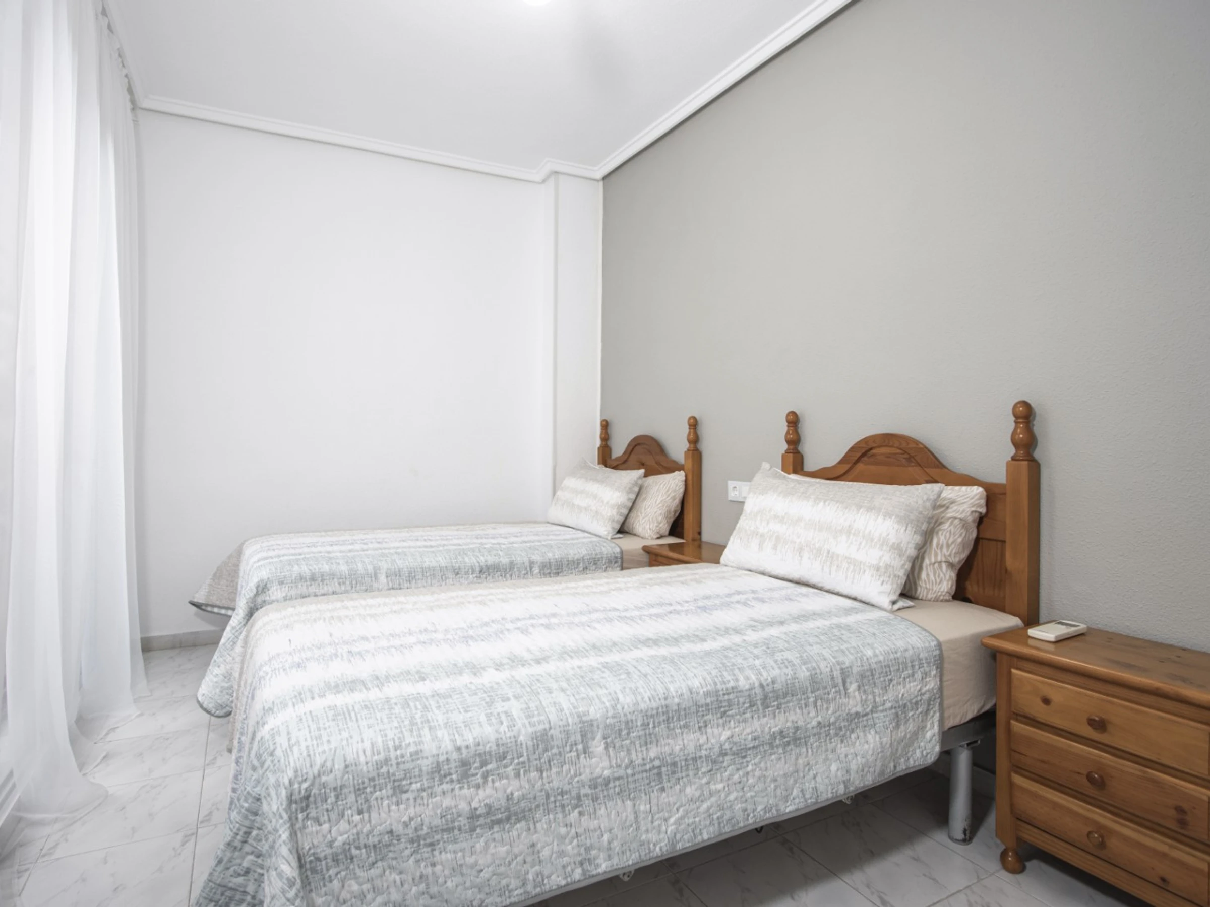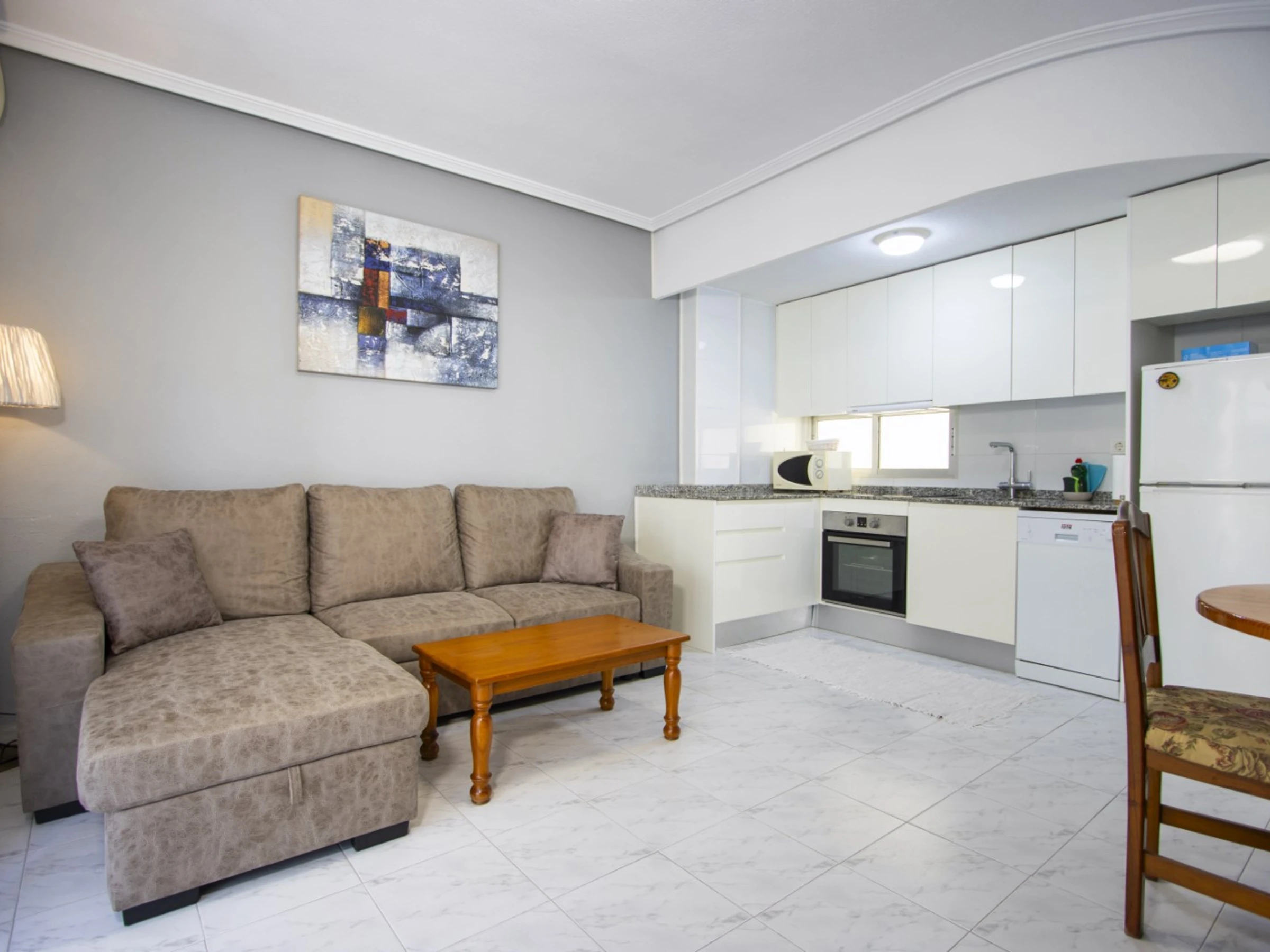 Wir bieten Touristen eine Wohnung mit zwei Schlafzimmern zur Miete an, nur wenige Gehminuten vom Meer und dem beliebten Stadtstrand entfernt. Die 80 m2 große Wohnung besteht aus einem Wohnzimmer mit Küche, zwei Schlafzimmern, einem Badezimmer und einem verglasten Balkon. Die Wohnung verfügt über alles, was Sie zum Wohnen und Entspannen benötigen: Möbel, Haushaltsgeräte (einschließlich Kaffeemaschine und Geschirrspüler), Geschirr, Bettwäsche und Handtücher. Der Salon verfügt über eine Klimaanlage. TV Spanisch, WLAN. Das Gebiet verfügt über eine gut ausgebaute Infrastruktur. Zahlreiche Bars und Restaurants erreichen Sie bequem zu Fuß. Zum Supermarkt „Consum“ 150 Meter, zur nächsten Apotheke 200 Meter. Das Meer und der Strand Del Cura liegen 300 m entfernt. Unterkunftsmöglichkeit - bis zu 4 Personen (keine Tiere!). Das Rauchen in der Wohnung ist strengstens untersagt!