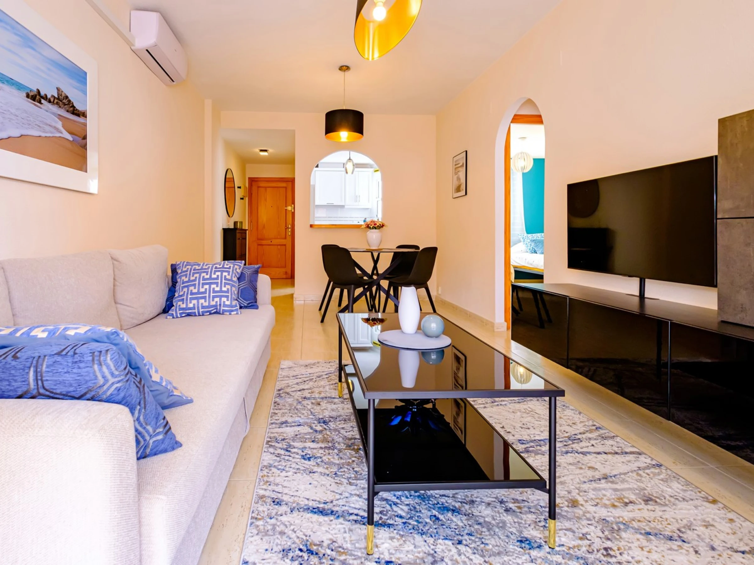 Wir bieten zur Miete eine gemütliche Zwei-Zimmer-Wohnung in einem Gebiet mit ausgebauter Infrastruktur und nur wenige Gehminuten vom Meer und dem Strand entfernt! Die 72 m2 große Wohnung besteht aus einem Wohnzimmer, zwei Schlafzimmern, einer Küche im französischen Stil, einem Badezimmer und einem Balkon mit seitlichem Meerblick. Die Wohnung verfügt über alles, was Sie für einen komfortablen Aufenthalt und Erholung benötigen: neue Möbel, Haushaltsgeräte (einschließlich Kaffeemaschine und Toaster), Geschirr, Bettwäsche und Handtücher. Der Salon ist mit einer Klimaanlage ausgestattet, auf dem Balkon stehen Gartenmöbel. TV Spanisch, WLAN. In der Tiefgarage gibt es einen Parkplatz und Pool. Das Gebiet verfügt über eine gut ausgebaute Infrastruktur. Im Umkreis von 150 Metern gibt es viele Cafés und Bars. Der Supermarkt „Masymas“ befindet sich neben dem Eingang, 350 Meter von einer 24-Stunden-Apotheke entfernt. Das Meer und der beliebte Stadtstrand von Del Cura sind nur 250 Meter entfernt! Unterkunftsmöglichkeit - bis zu 4 Personen (keine Tiere!). Rauchen ist nur auf dem Balkon gestattet!