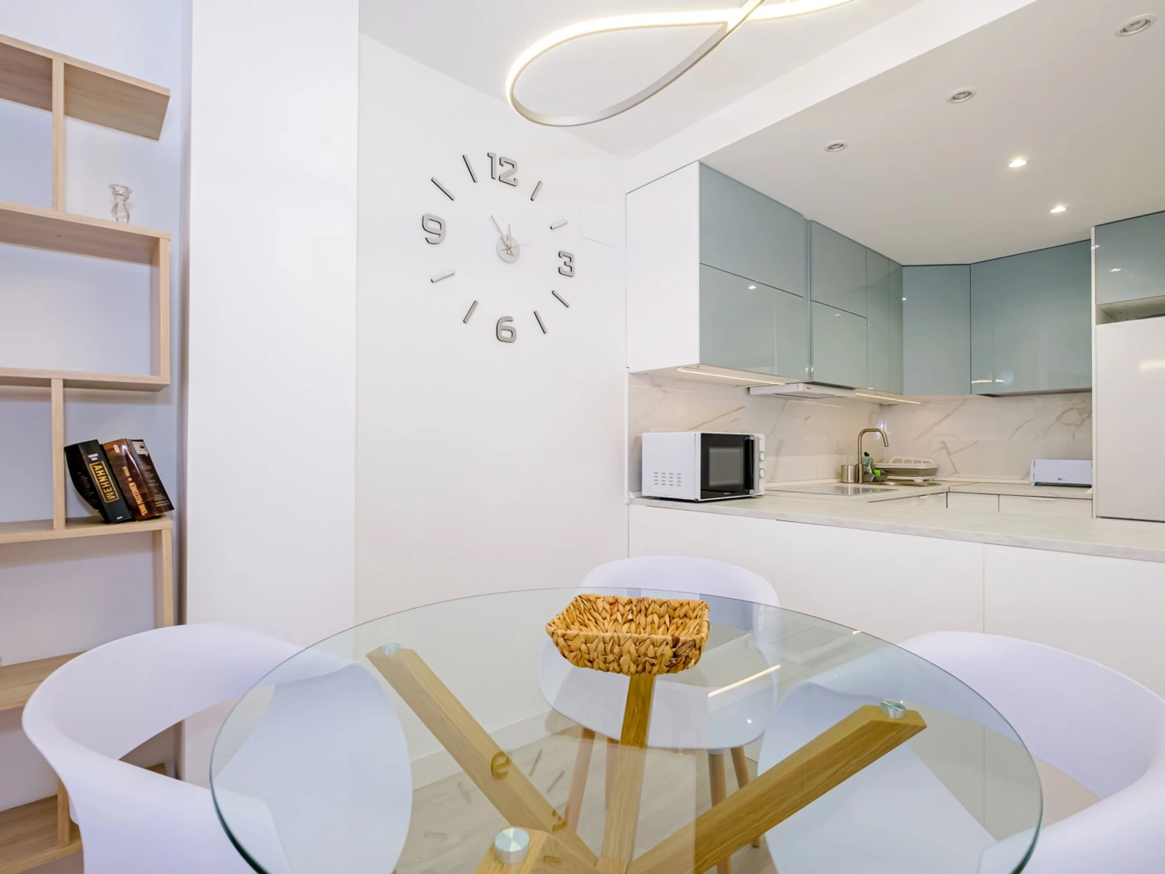 Wir bieten zur Touristenmiete eine gemütliche, helle Ein-Zimmer-Wohnung in einem Gebiet mit ausgebauter Infrastruktur und nur wenige Gehminuten vom Meer und dem Strand entfernt! Die 52 m2 große Wohnung besteht aus einem Wohnzimmer, 1 Schlafzimmer, einer Küche im amerikanischen Stil, einem Badezimmer und einem Balkon mit Gartenmöbeln. Die Wohnung verfügt über alles, was Sie zum komfortablen Wohnen und Entspannen benötigen: neue Möbel, Haushaltsgeräte (einschließlich Kaffeemaschine und Geschirrspüler), Geschirr, Bettwäsche und Handtücher. Der Salon ist mit einer Klimaanlage ausgestattet. TV Spanisch, WLAN. Das Gebiet verfügt über eine gut ausgebaute Infrastruktur. Die nächste Bar ist 50 Meter entfernt. Bushaltestelle 650 Meter. Zum Supermarkt „Masymas“ 250 Meter, zur rund um die Uhr geöffneten Apotheke 120 Meter. Das Meer und der beliebte Stadtstrand von Del Cura sind nur 120 Meter entfernt! Unterkunftsmöglichkeit – bis zu drei Personen (keine Tiere!). Rauchen ist nur auf dem Balkon gestattet!