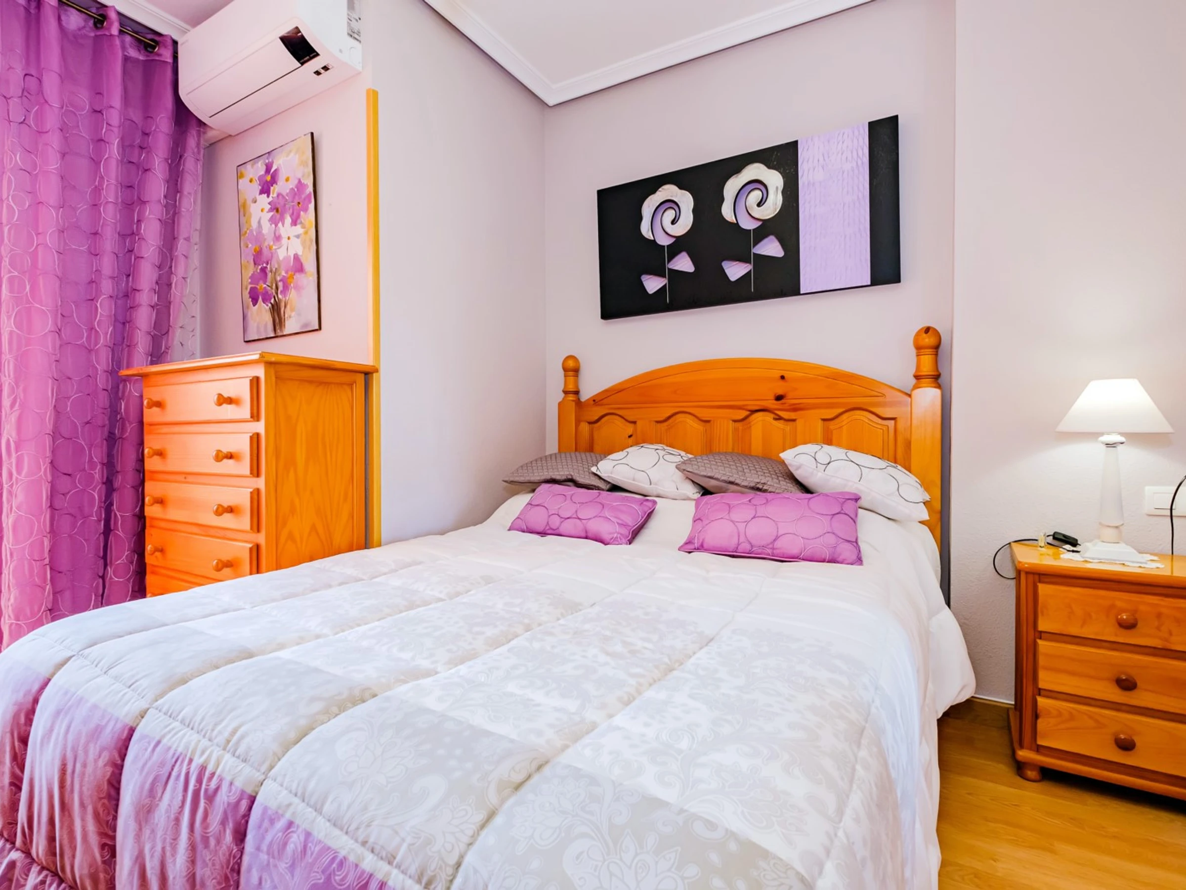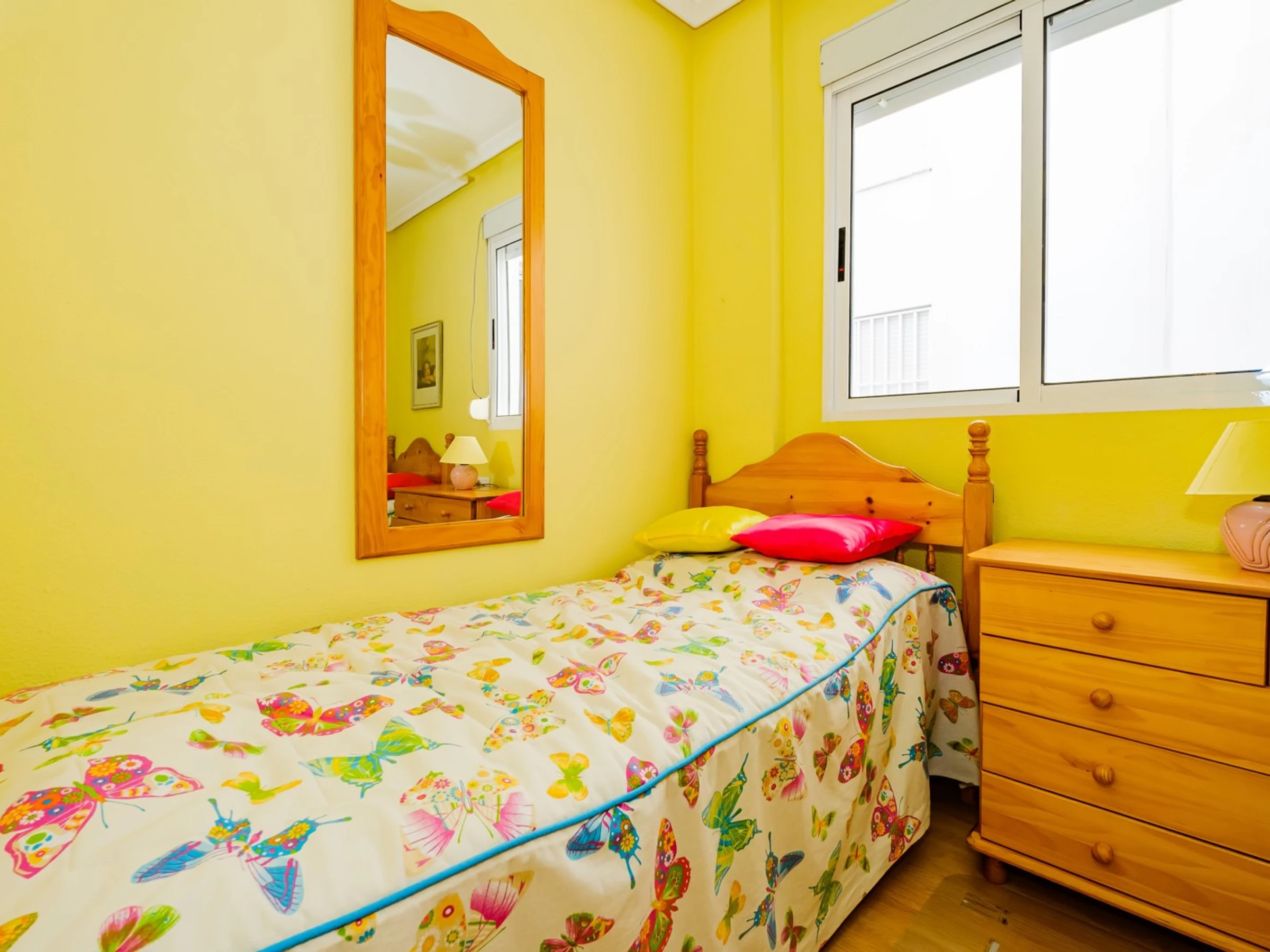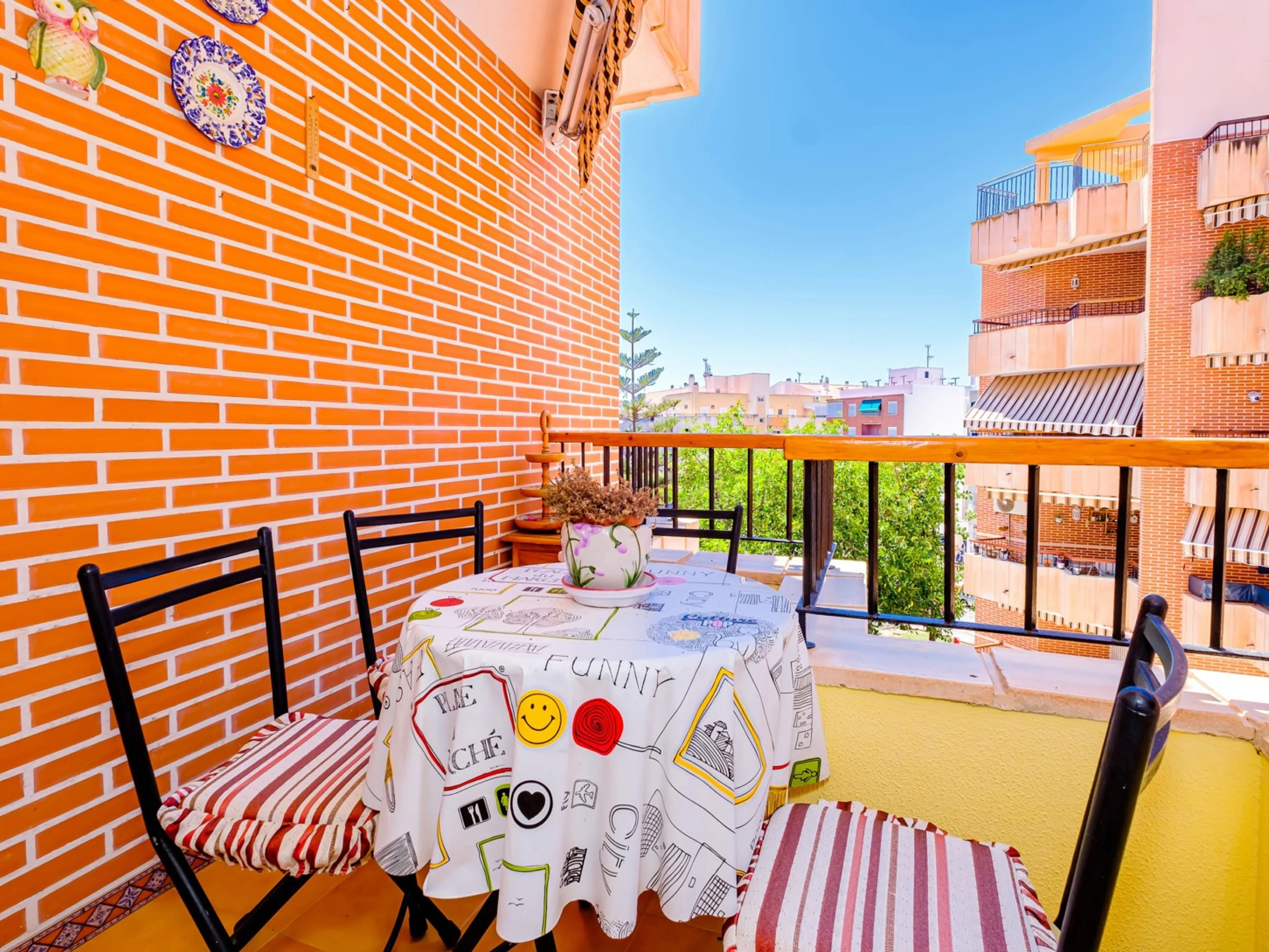 Wir bieten zur Miete eine gemütliche Wohnung in einem Gebiet mit ausgebauter Infrastruktur an, nur wenige Gehminuten vom Meer und dem beliebten Stadtstrand entfernt. Die Wohnung hat eine Fläche von 51 m2 und besteht aus einem Wohnzimmer, zwei Schlafzimmern, einer Küche im französischen Stil, einem Badezimmer und einem Balkon mit Gartenmöbeln. Die Wohnung verfügt über alles, was Sie für einen komfortablen Aufenthalt und Entspannung benötigen: Möbel, elektrische Haushaltsgeräte (einschließlich Kaffeemaschine), Geschirr, Bettwäsche und Handtücher. Im Wohnzimmer und in einem der Schlafzimmer ist eine Klimaanlage installiert. Spanisches Fernsehen, WLAN. Es gibt eine Tiefgarage mit einer Fläche von 18 m2. Das Gebiet verfügt über eine gut ausgebaute Infrastruktur: Mehrere Banken, russische (300 Meter) und spanische (120 Meter) Supermärkte, Bars und Restaurants, eine Apotheke sind fußläufig erreichbar. Das Meer und der beliebte Stadtstrand Del Cura sind 300 Meter entfernt! Unterkunftsmöglichkeit – bis zu 4 Personen (keine Tiere!). Rauchen ist nur auf dem Balkon gestattet!