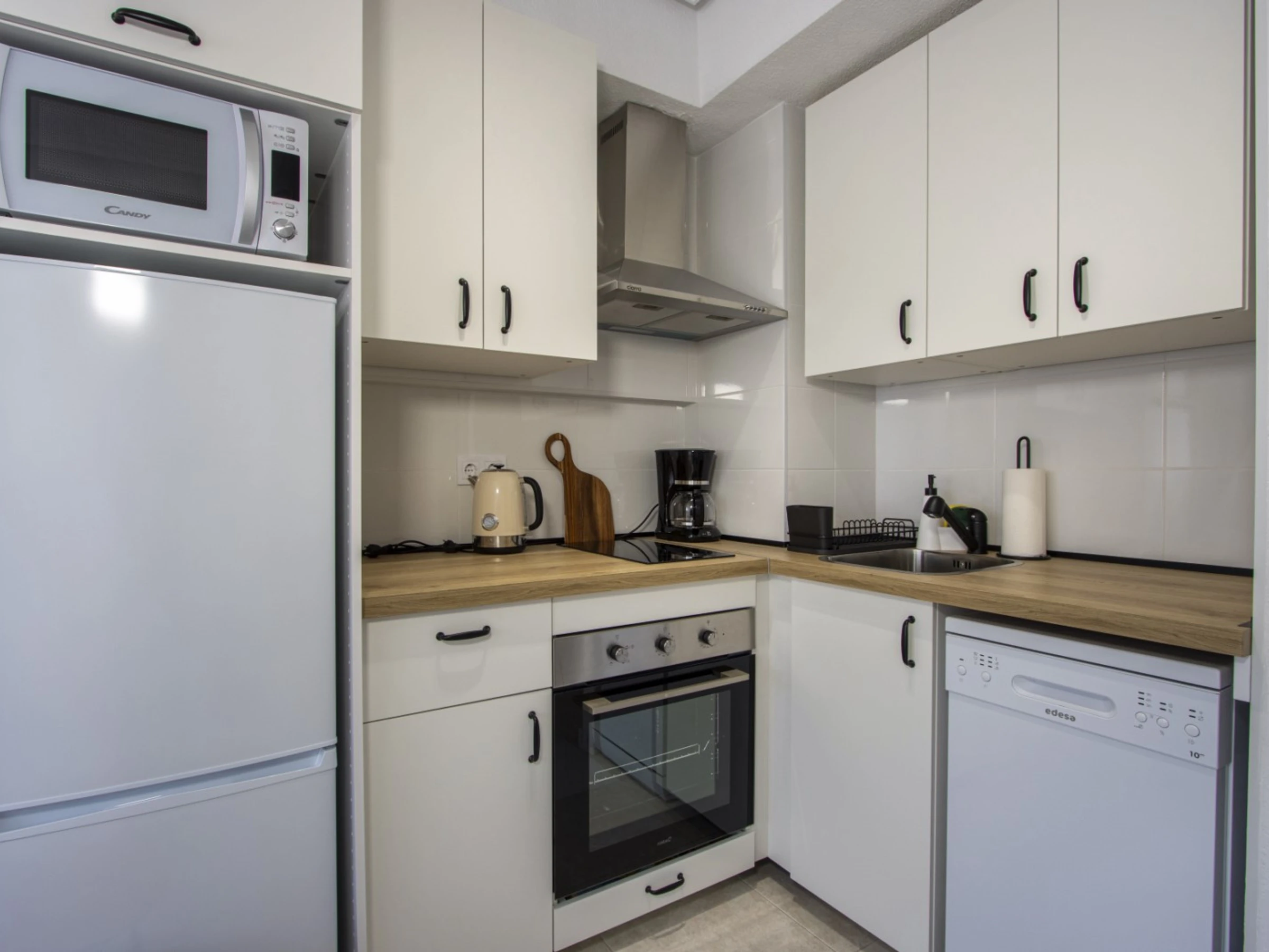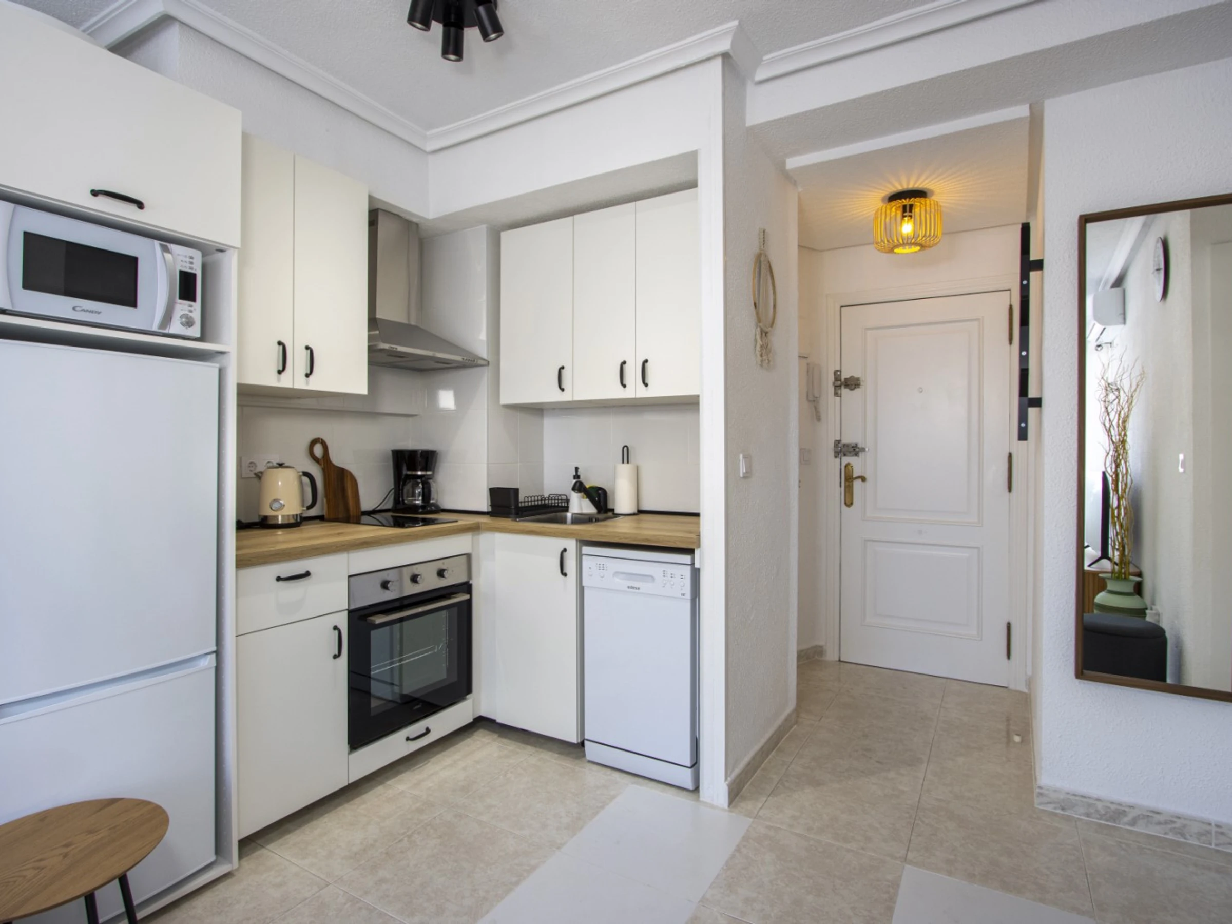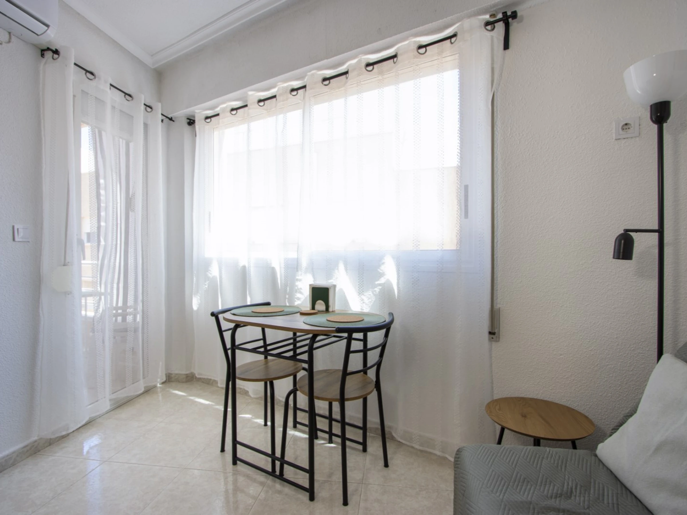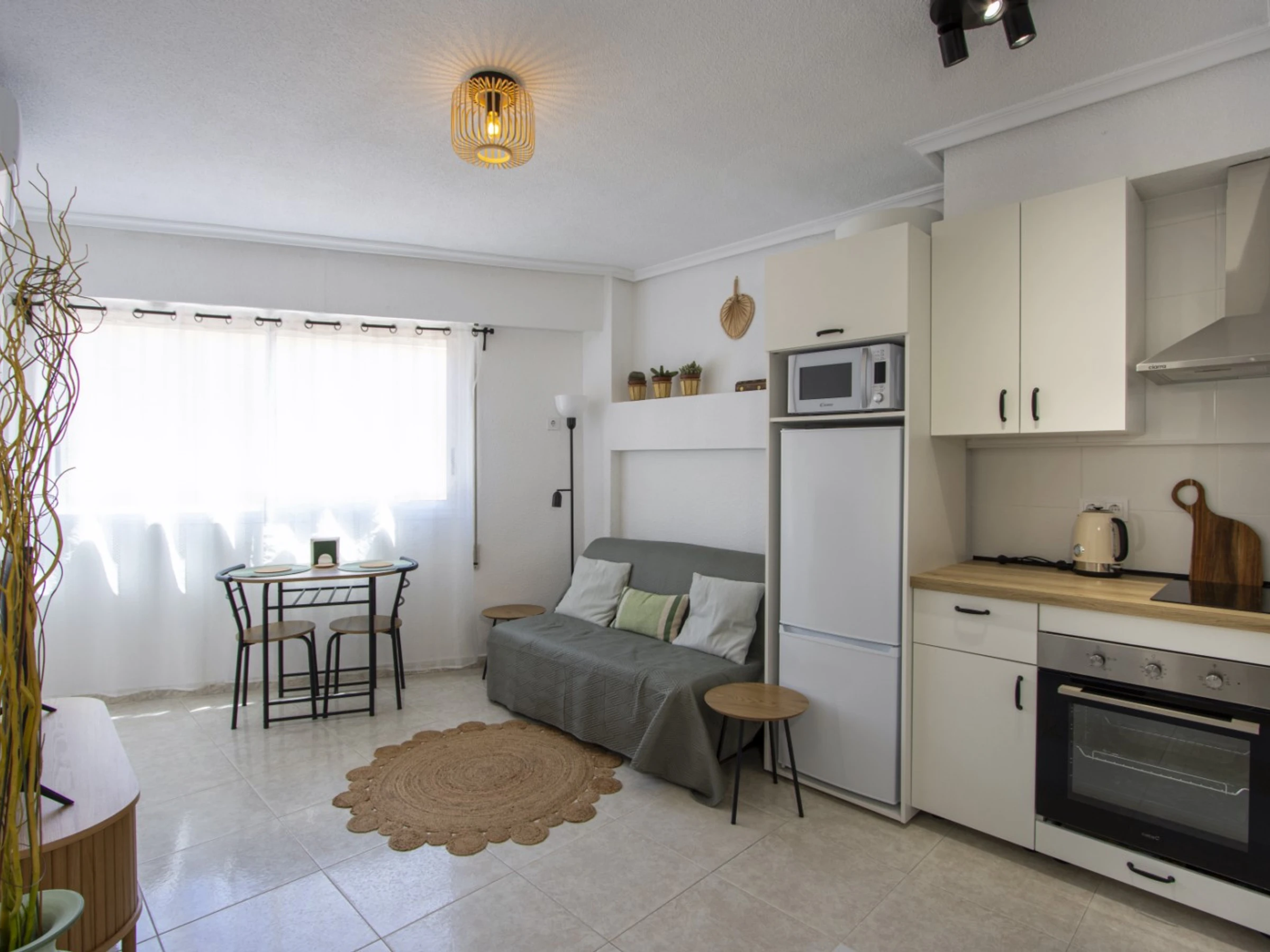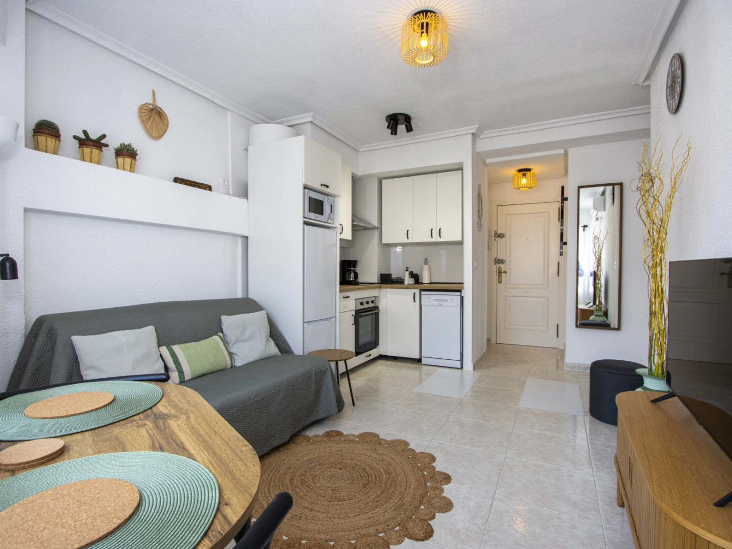 Wir bieten zur Miete eine gemütliche Wohnung in einem Gebiet mit ausgebauter Infrastruktur an, nur wenige Gehminuten vom Meer und dem beliebten Stadtstrand entfernt. Die Wohnung hat eine Fläche von 53 m2 und besteht aus einem Wohnzimmer, einem Schlafzimmer, einer Küche im amerikanischen Stil, einem Badezimmer und einem Balkon mit Gartenmöbeln. Die Wohnung verfügt über alles, was Sie für einen komfortablen Aufenthalt und Entspannung benötigen: Möbel, elektrische Haushaltsgeräte (einschließlich Kaffeemaschine und Geschirrspüler), Geschirr, Bettwäsche und Handtücher. Im Salon ist eine Klimaanlage installiert. Spanisches Fernsehen, WLAN. Das Haus verfügt über einen Swimmingpool. Das Gebiet verfügt über eine gut ausgebaute Infrastruktur: Mehrere Banken, russische (350 Meter) und spanische (150 Meter) Supermärkte, Bars und Restaurants, eine Apotheke sind fußläufig erreichbar. Das Meer und der beliebte Stadtstrand Del Cura sind 350 Meter entfernt! Unterkunftsmöglichkeit – bis zu 2 Personen (keine Tiere!). Rauchen ist nur auf dem Balkon gestattet!