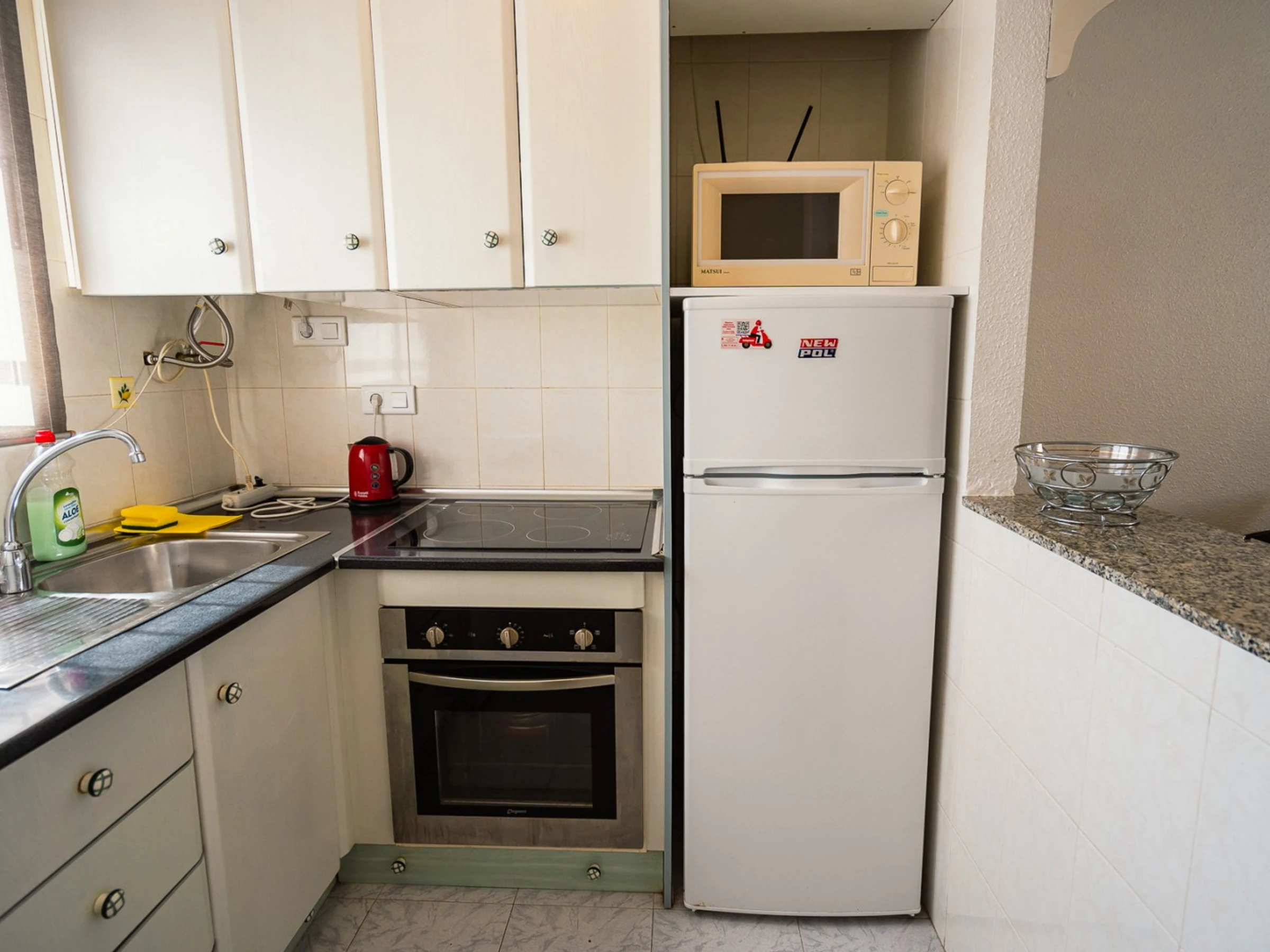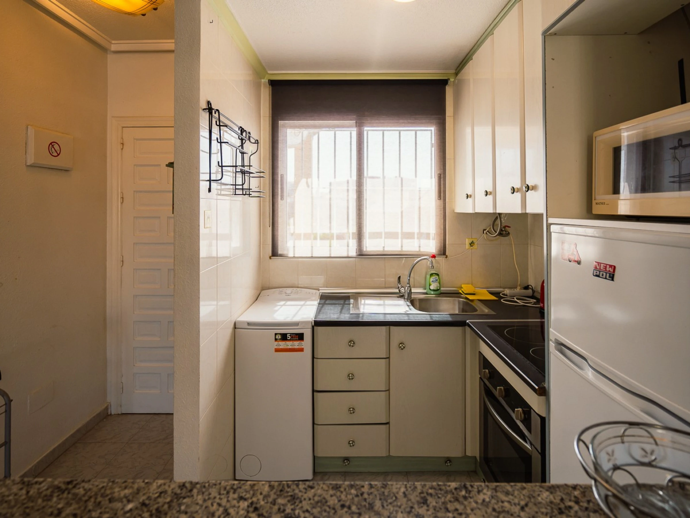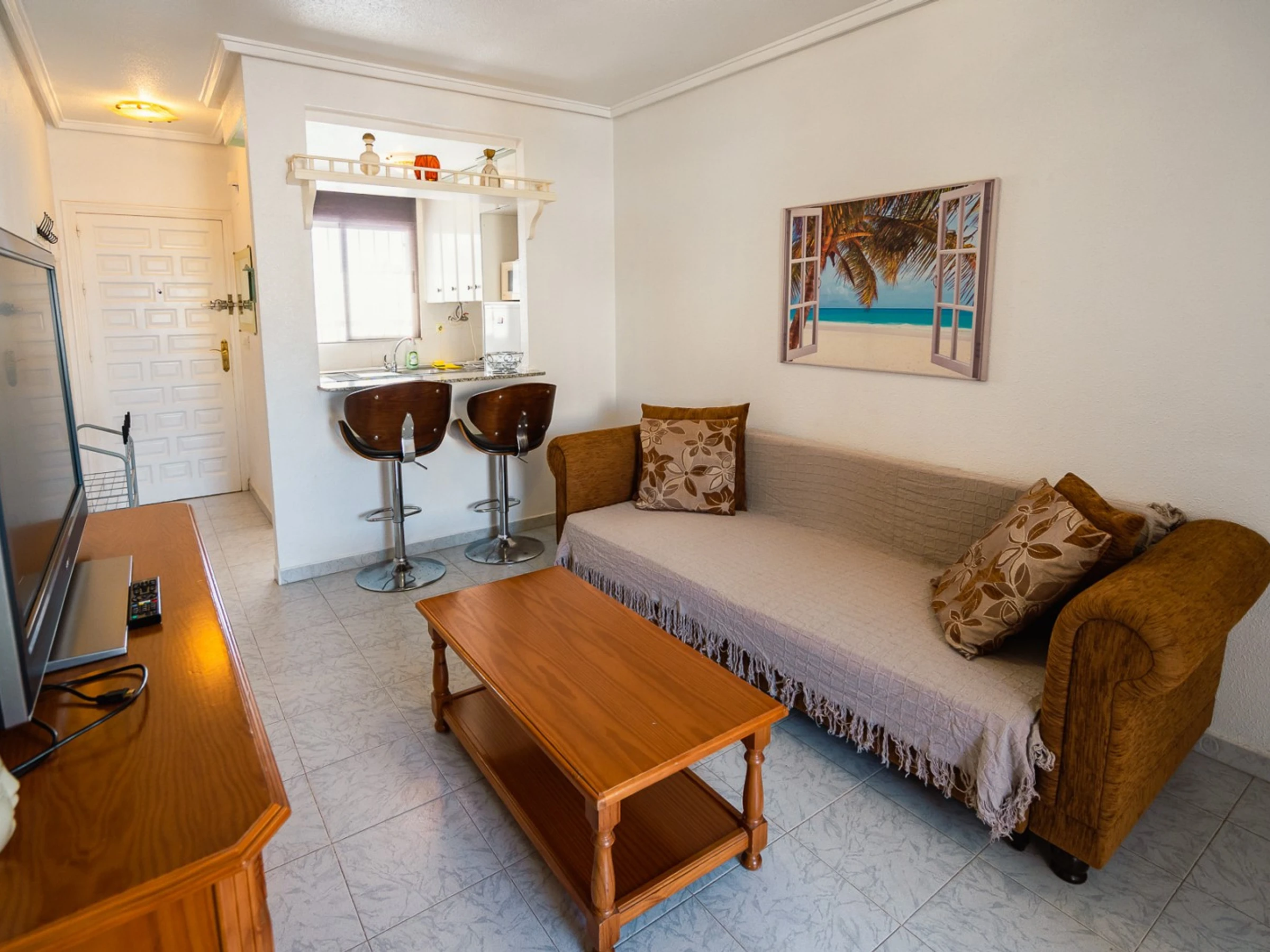 Wir bieten Wohnungen zur touristischen Vermietung in der Urbanisation Torreblanca in La Mata, dem besten Strandbereich in Torrevieja. Das 40 m2 große Apartment besteht aus einem Wohnzimmer, einem Schlafzimmer, einer Küche im französischen Stil, einem Badezimmer, einem verglasten Balkon und einer privaten Terrasse mit Gartenmöbeln. Die Wohnung bietet alles, was Sie zum Leben und Entspannen benötigen: Möbel, Haushaltsgeräte, Geschirr, Bettwäsche und Handtücher. Die Kabine ist klimatisiert. Spanisches Fernsehen, drahtloses Internet. Achtung! Du musst die Treppe zur Wohnung hochgehen! Das Meer und der Strand sind ca. 700 Meter entfernt. Das Gebiet verfügt über eine gut ausgebaute Infrastruktur. Der Supermarkt Mercadona ist 350 m entfernt. Die nächsten Bars befinden sich nur 200 m entfernt. Unterkunftsoption — bis zu 3 Personen (keine Haustiere!). Rauchen ist in den Wohnungen strengstens verboten!