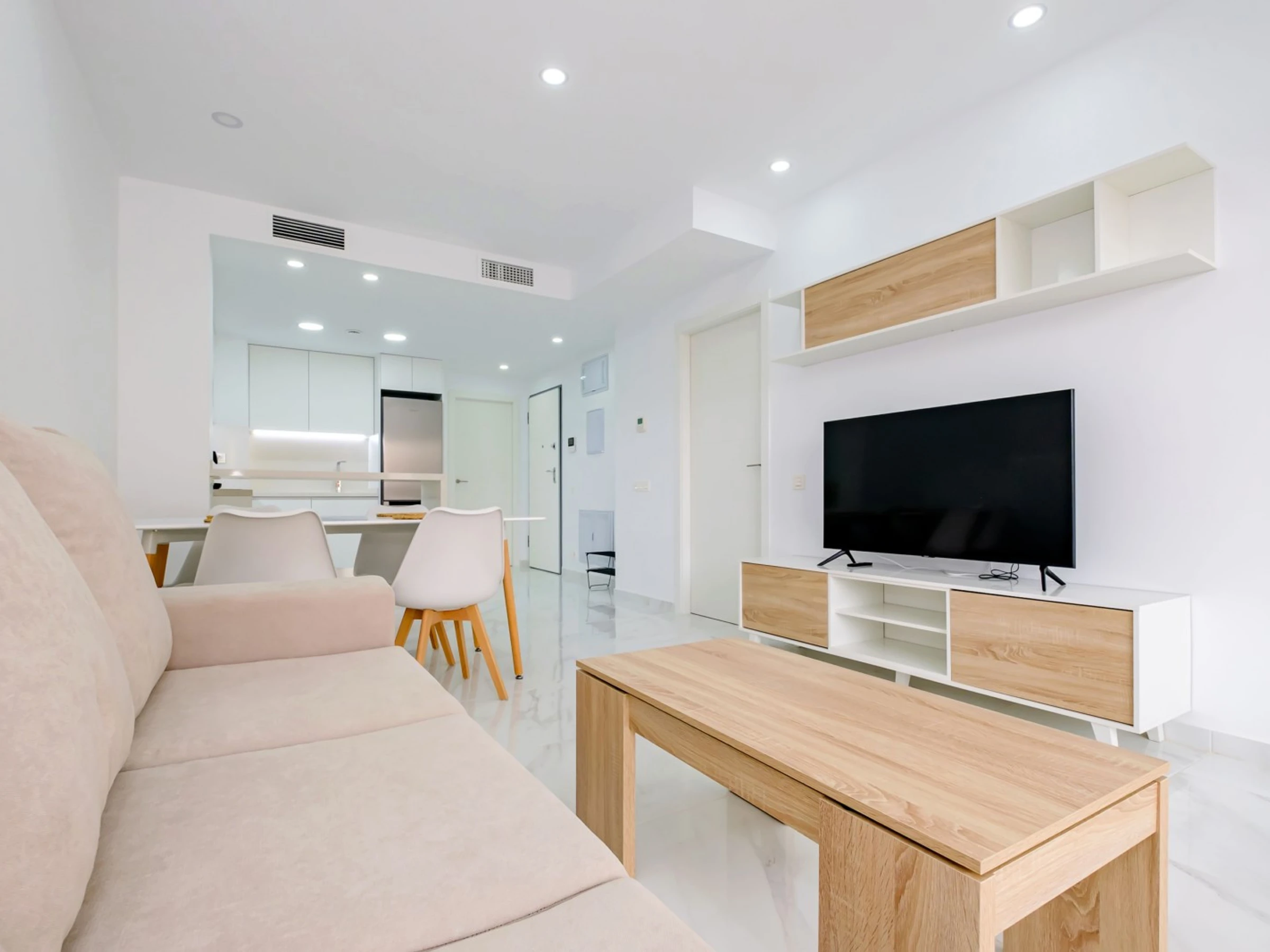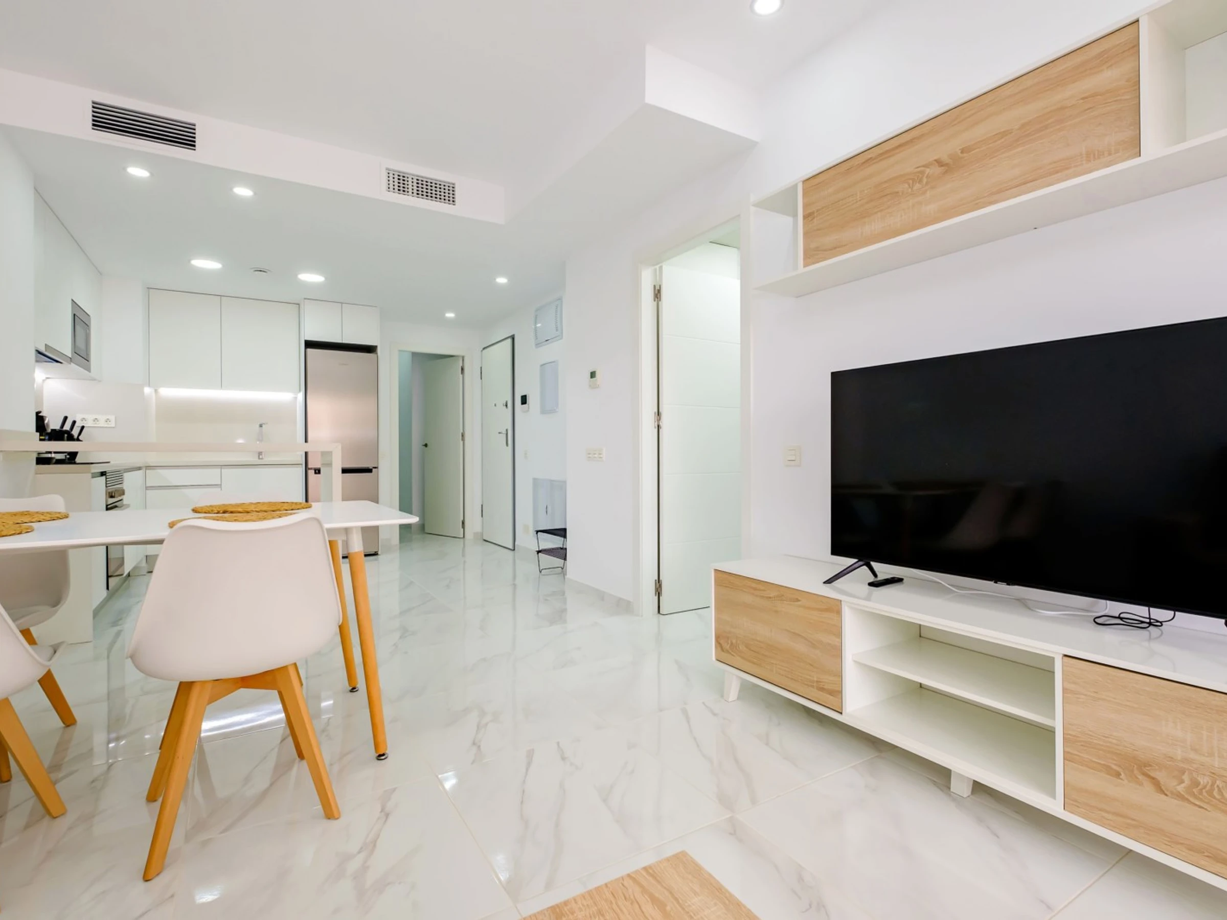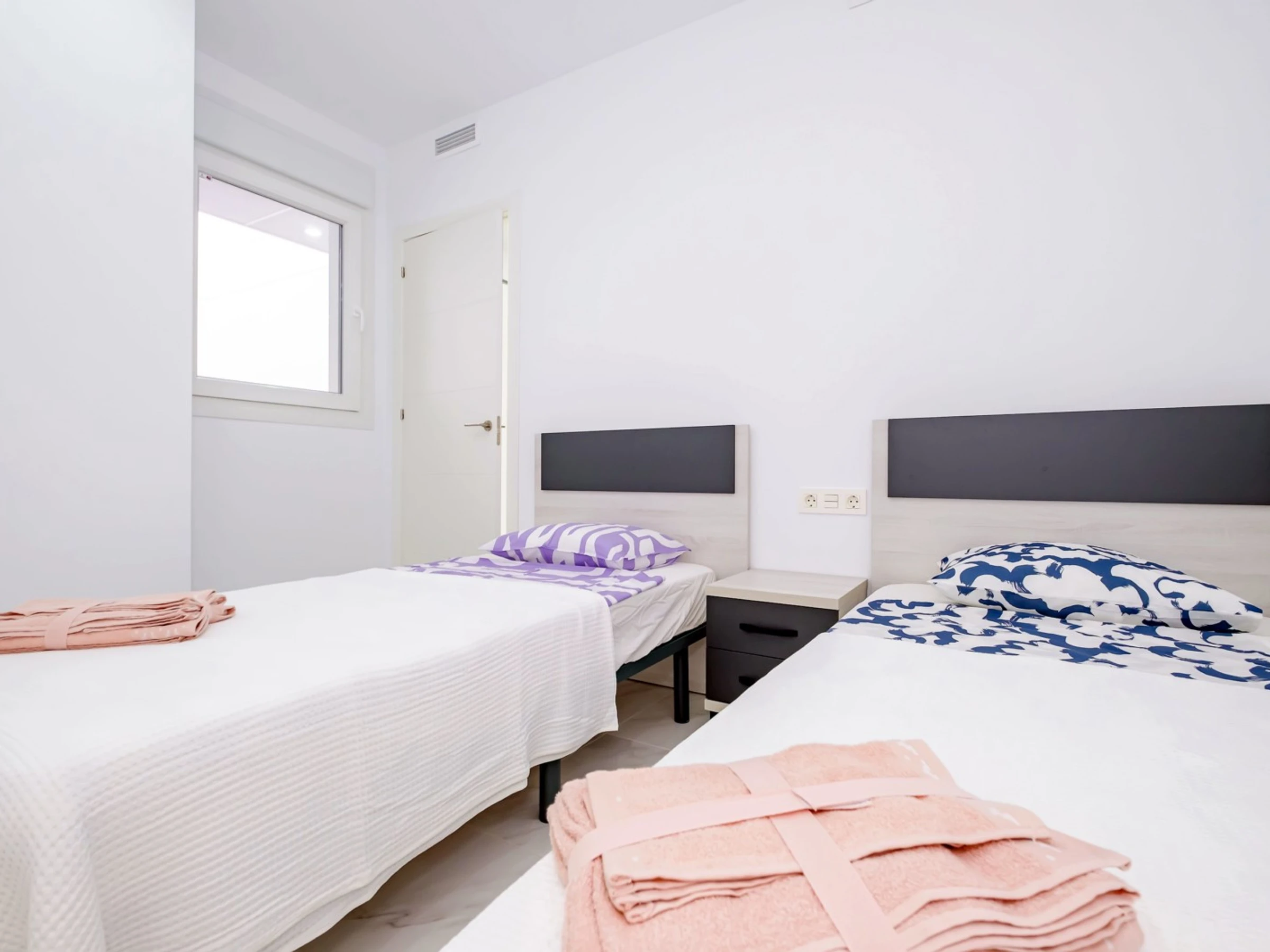 Wir bieten zur touristischen Vermietung ein Apartment mit zwei Schlafzimmern im neuen modernen Komplex „Residencial Alegría XVII“ an, nur wenige Gehminuten vom Meer und dem Strand entfernt. Die Wohnung hat eine Fläche von 78 m2 und besteht aus einem Wohnzimmer, zwei Schlafzimmern, einer Küche im amerikanischen Stil, zwei Badezimmern und einem Balkon. Es gibt alles, was Sie für einen angenehmen Aufenthalt und Entspannung benötigen: Möbel, Haushaltsgeräte (einschließlich Geschirrspüler und Kaffeemaschine), Geschirr, Bettwäsche und Handtücher. Die Klimaanlage ist zentral und arbeitet zwischen Wärme und Kälte. Spanisches Fernsehen, WLAN. Auf dem Balkon stehen Sommermöbel. Die Anlage verfügt über ein Schwimmbad und eine finnische Sauna (Saunaleistungen sind nicht im Mietpreis enthalten und müssen separat bezahlt werden!). Das Gebiet verfügt über eine gut ausgebaute Infrastruktur. Der Supermarkt Mercadona liegt 300 m entfernt und das russische Geschäft Kalinka erreichen Sie nach 100 m. Das nächste Restaurant ist 200 Meter entfernt. Das Meer und der beliebte Stadtstrand von Del Cura sind 400 Meter entfernt. Unterkunftsmöglichkeit – bis zu 4 Personen (keine Tiere!). Das Rauchen ist nur auf dem Balkon gestattet (bei Verstoß drohen 200 Euro Bußgeld!).