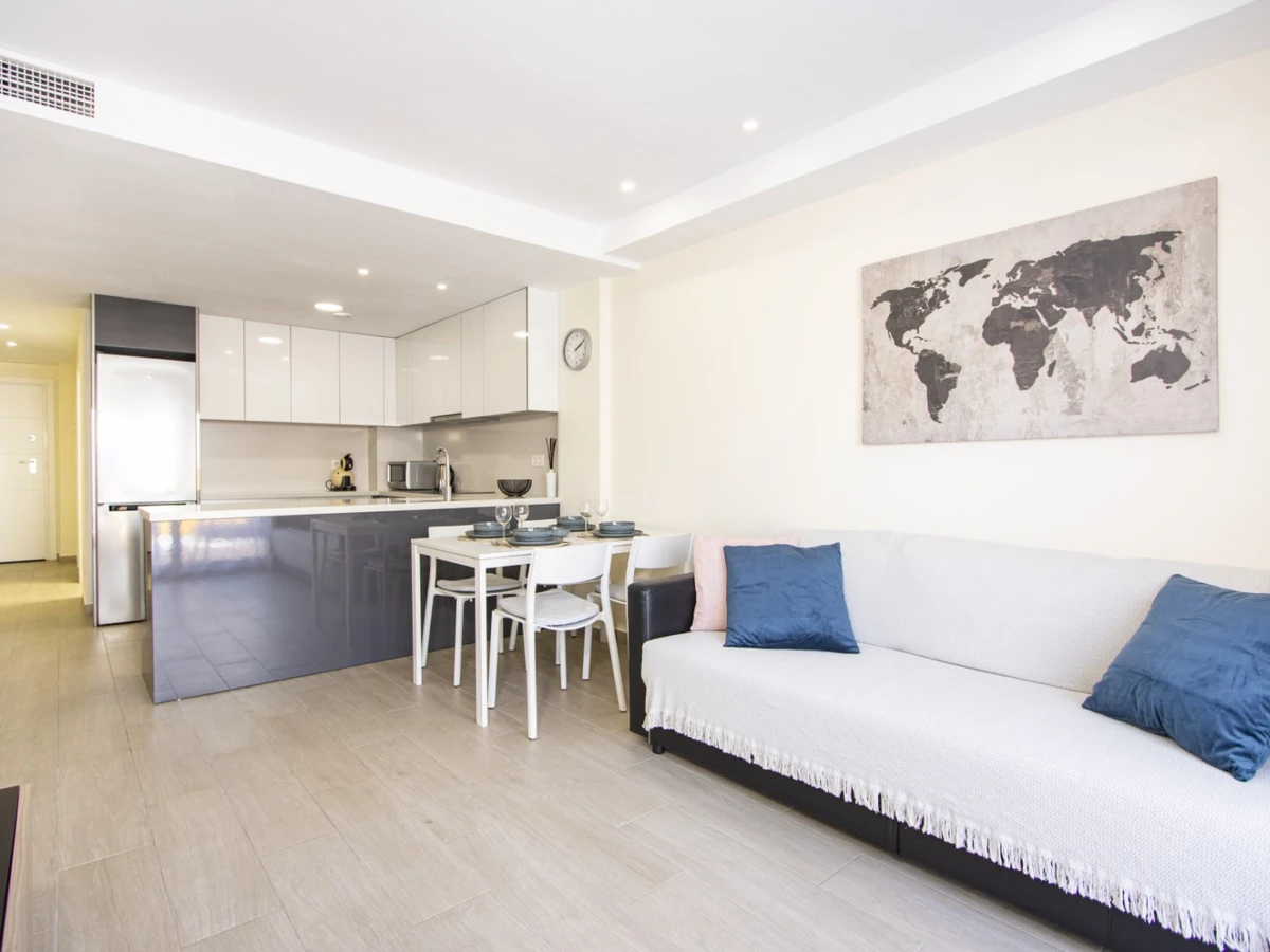 Wir vermieten eine Ein-Zimmer-Wohnung im modernen Komplex „Residencial Alegría VII“, nur wenige Gehminuten von Meer und Strand entfernt! Die 62 m² große Wohnung besteht aus Wohnzimmer, Schlafzimmer, amerikanischer Küche, Bad und Terrasse mit Sommermöbeln. Die Wohnung bietet alles, was Sie für komfortables Wohnen und Entspannen benötigen: Möbel, moderne Geräte (einschließlich Geschirrspüler und Kaffeemaschine), Geschirr, Bettwäsche und Handtücher. Zentrale Klimaanlage. Spanisches Fernsehen, WLAN. Das Haus verfügt über eine finnische Sauna (gegen Gebühr!) und einen Swimmingpool. Ein Tiefgaragenstellplatz ist vorhanden. Das Meer und der beliebte Stadtstrand „Del Cura“ sind etwa 100 Meter entfernt. Die Gegend verfügt über eine gut ausgebaute Infrastruktur: Der Supermarkt „Consum“ ist 300 Meter entfernt, „Masymas“ 400 Meter, Bars und Restaurants erreichen Sie nach 100 Metern. Die nächste Bank ist 250 Meter entfernt. Eine 24-Stunden-Apotheke befindet sich in der nächsten Straße. Unterkunftsmöglichkeit: 3 Personen (keine Haustiere!). Rauchen ist nur auf der Terrasse erlaubt! Bei Verstoß beträgt die Strafe 200 Euro! Check-in von 15:00 bis 19:00 Uhr. Check-out von 09:00 bis 11:00 Uhr. Für Check-in oder Check-out außerhalb der Geschäftszeiten sowie an Sonn- und Feiertagen wird eine zusätzliche Gebühr von 20 Euro erhoben. Öffnungszeiten: Montag bis Freitag von 9:00 bis 19:00 Uhr, Samstag von 10:00 bis 15:00 Uhr, Sonntag geschlossen. Beim Check-in ist eine Kaution von 200 Euro zu hinterlegen.