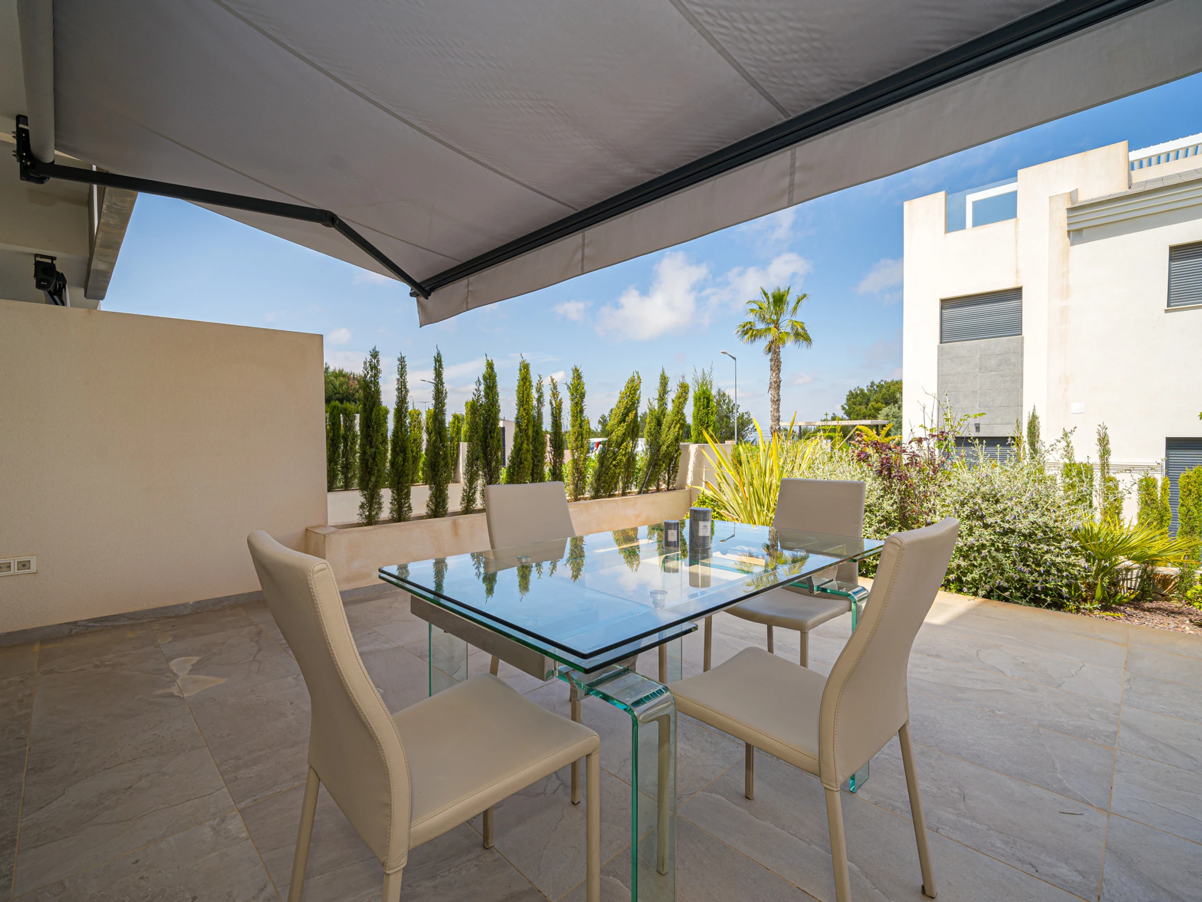 Die Unterkunft verfügt über garten, gartenmöbel, 50 m² terrasse, waschmaschine, grill, bügeleisen/-brett, internet (WLAN), alarm, heizung, klimaanlage in der ganzen unterkunft, swimming-pool gemeinschaftlicher swimming-pool, parkplatz im freien in auf dem grundstück, 1 Fernseher, sat-tv (Sprachen: Spanisch).