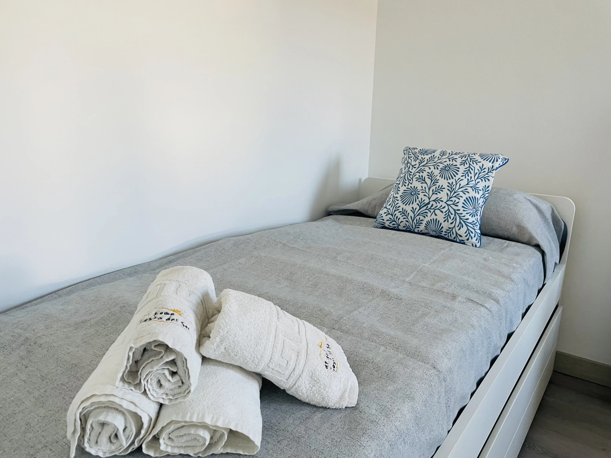 Was diese Wohnung wirklich besonders macht, ist ihre Terrasse mit direktem Meerblick. Genießen Sie einen Sitzbereich mit Sofas zum Entspannen und einen weiteren Bereich mit Liegestühlen, um die mediterrane Sonne zu genießen.