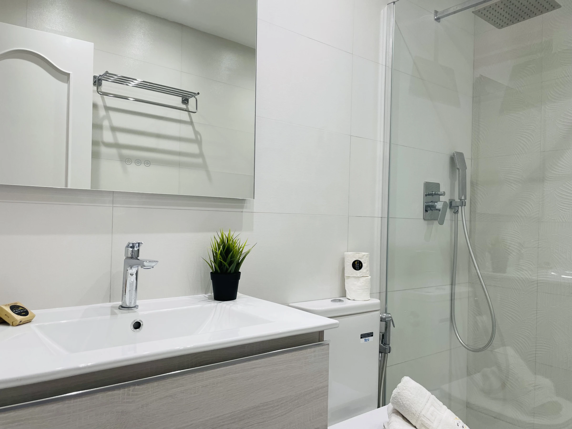 Die Wohnung verfügt über ein modernes Badezimmer mit Dusche. Das geräumige und helle Wohnzimmer ist mit einer komplett ausgestatteten amerikanischen Küche integriert, die eine Kaffeemaschine, einen Ofen, eine Mikrowelle, einen Kühlschrank und komplettes Geschirr umfasst und Ihnen alles bietet, was Sie brauchen, um sich wie zu Hause zu fühlen. Außerdem ist das Wohnzimmer mit einem bequemen Sofa, einem Kamin, einem Fernseher und WLAN für Ihre Unterhaltung und Ihren Komfort ausgestattet.