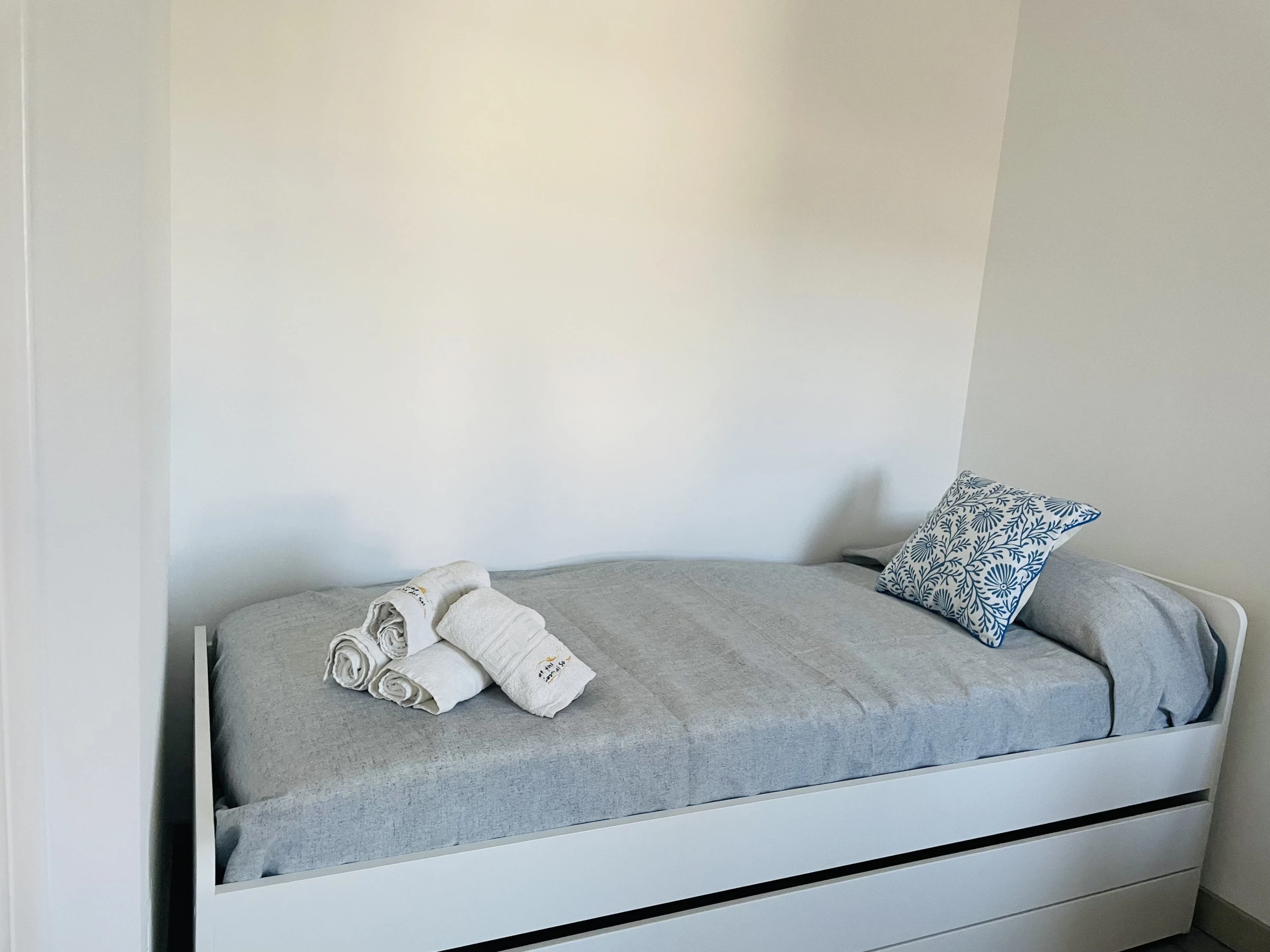 Diese gemütliche Zweizimmerwohnung ist der ideale Ort für Ihren Urlaub. Das Hauptschlafzimmer verfügt über ein Doppelbett, während das zweite Schlafzimmer mit einem Ausziehbett ausgestattet ist, perfekt für Familien oder Freunde.