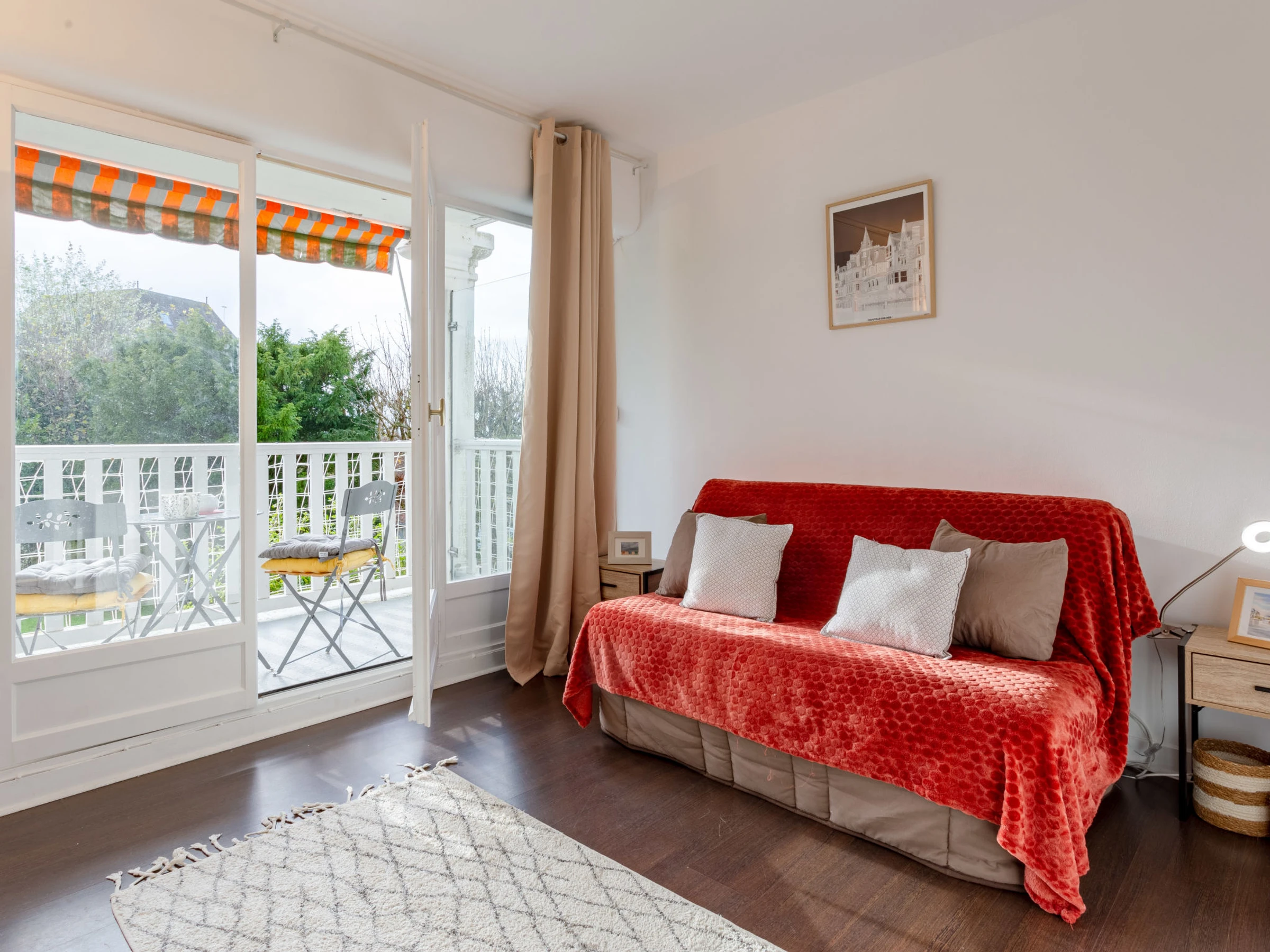 Trouville sur Mer: Residenz "Le Parc de La Jacotte". 600 m vom Zentrum, auf einem Hügel, 750 m vom Meer, 750 m vom Strand. In der Anlage: Fahrstuhl. (3 Stufen). Einkaufsgeschäft 600 m, Lebensmittelgeschäft 650 m, Supermarkt 900 m, Restaurant 650 m, Bushaltestelle "Parc Cordier" 250 m, Bahnstation "Deauville-Trouville" 1.4 km, Hallenbad 1.1 km, Thermalbad "Trouville sur Mer" 1 km. Golfplatz (18 Loch) 5.2 km, Segelschule 1.5 km, Tennis 750 m. Nahe gelegene Sehenswürdigkeiten: Hippodrome Deauville-La Touques 3 km, Honfleur 15 km, Mémorial de Caen 50 km, Plage du débarquement d'Arromanches 86 km. Die Schlüsselübergabe findet bei der Agentur in Deauville statt.
