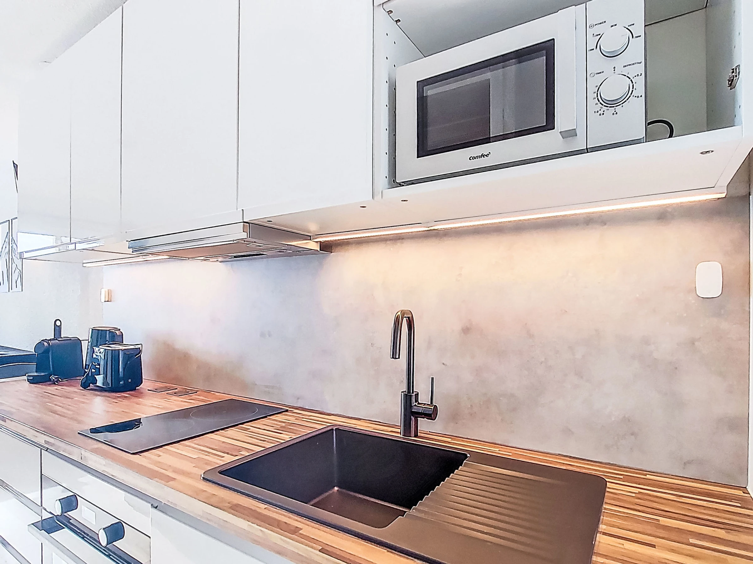 1-Zimmer-Studio 22 m2 im 4. Stock, Südlage. Vollständig renoviert im Jahre 2025, sehr modern und luxuriös eingerichtet: Wohn-/Esszimmer mit 1 Doppeldiwanbett (1 x 140 cm, Länge 190 cm), TV und Heizofen. Ausgang zum Balkon, Richtung Süden. Kabine mit 1 x 2 Etagenbetten (80 cm, Länge 190 cm). Kochnische (Backofen, Geschirrspüler, 2 Induktionskochplatten, Toaster, Wasserkocher, Mikrowelle, elektrische Kaffeemaschine, Kapseln für die Kaffeemaschine (Nespresso) extra). Bad, sep. WC. E-Heizung. Parkettboden. Kleiner Balkon 3 m2, Südlage. Sehr schöne Panoramasicht auf die Berge, die Skipiste und die Ortschaft. Zur Verfügung: Kinderhochstuhl, Babybett (extra). Internet (WLAN, extra). Bitte beachten: Nichtraucher-Unterkunft. Rauchmelder. Inserat einer Privatperson nach Artikel 155, IV, CGI. [hidden]