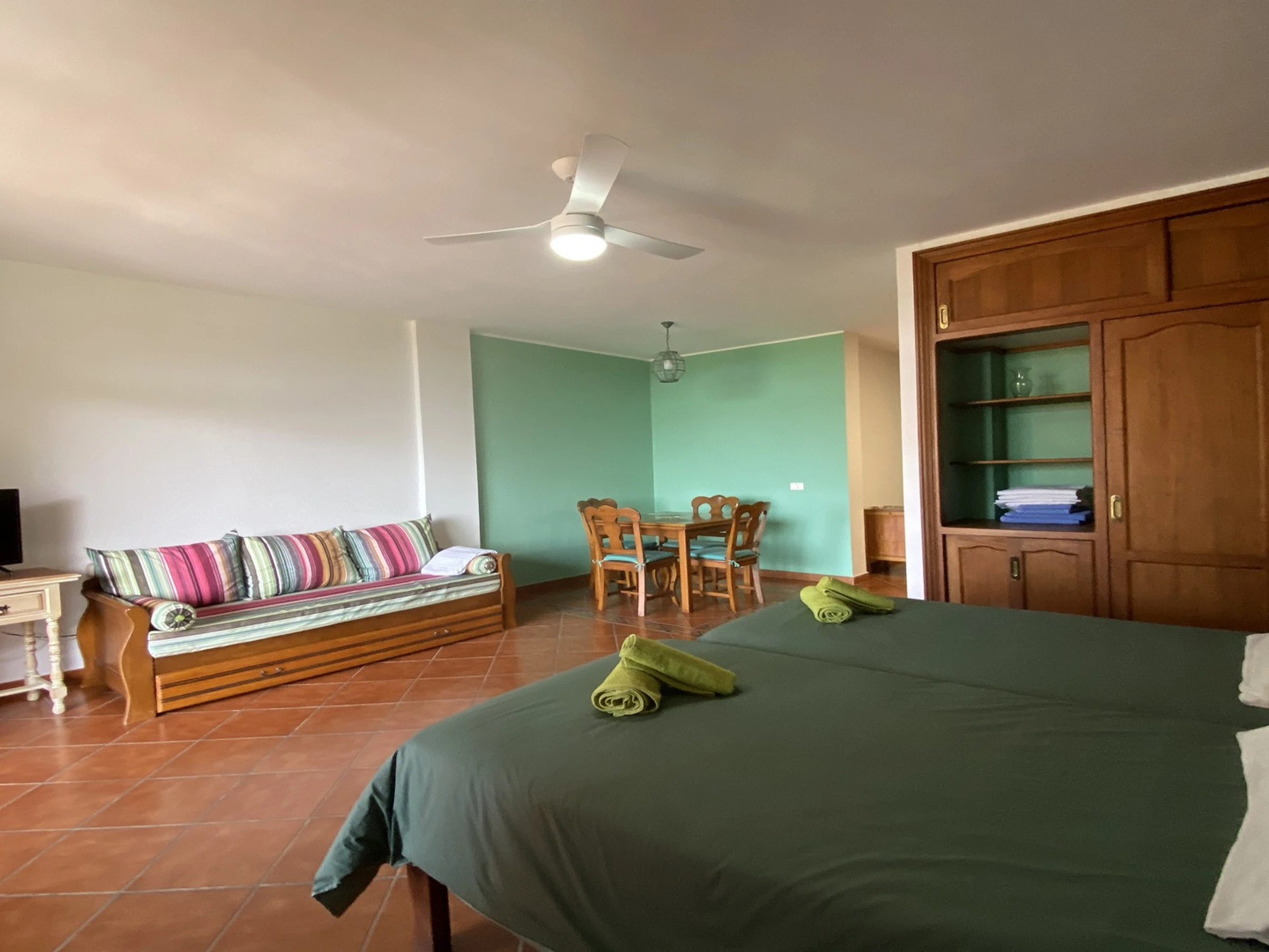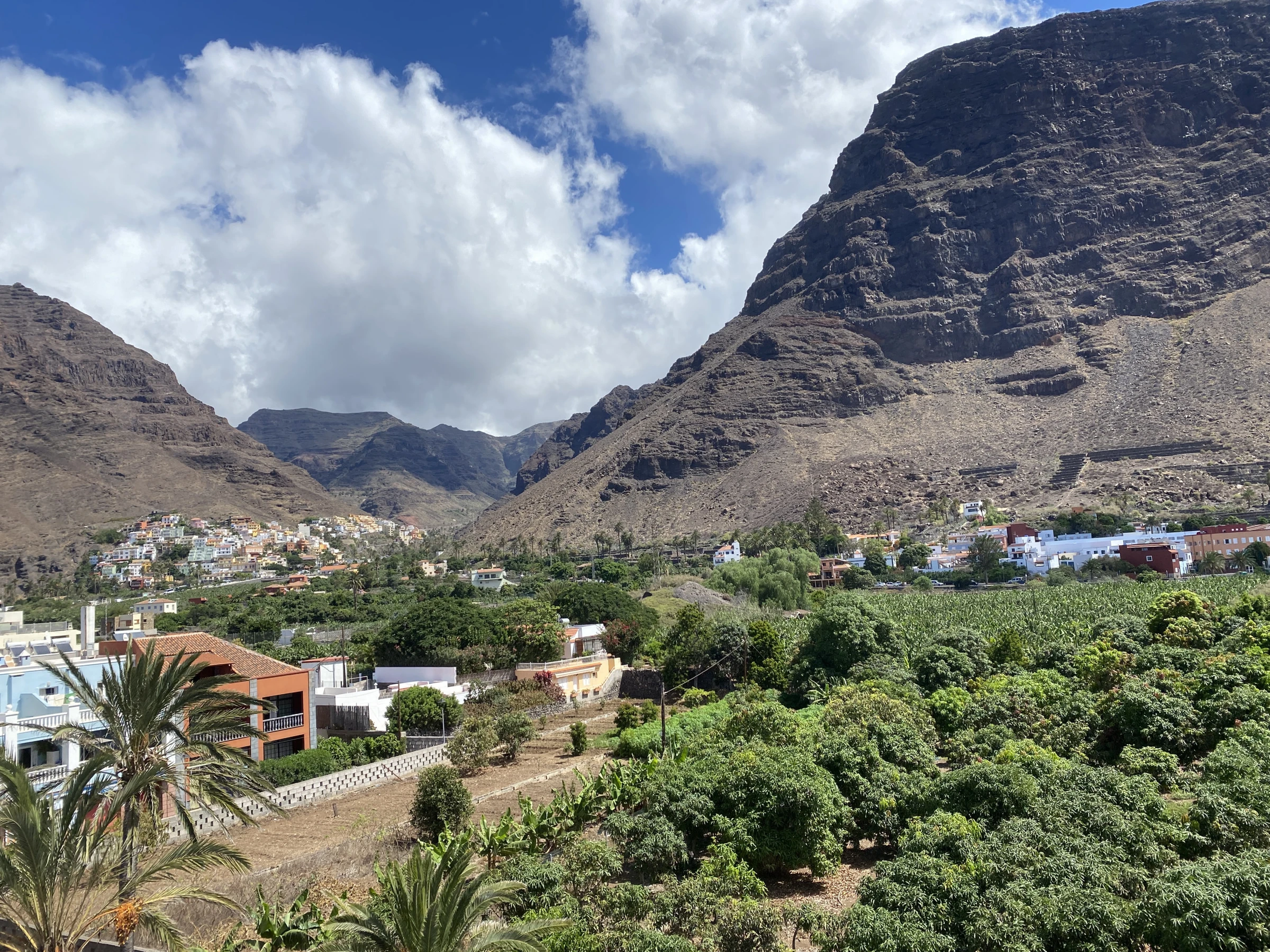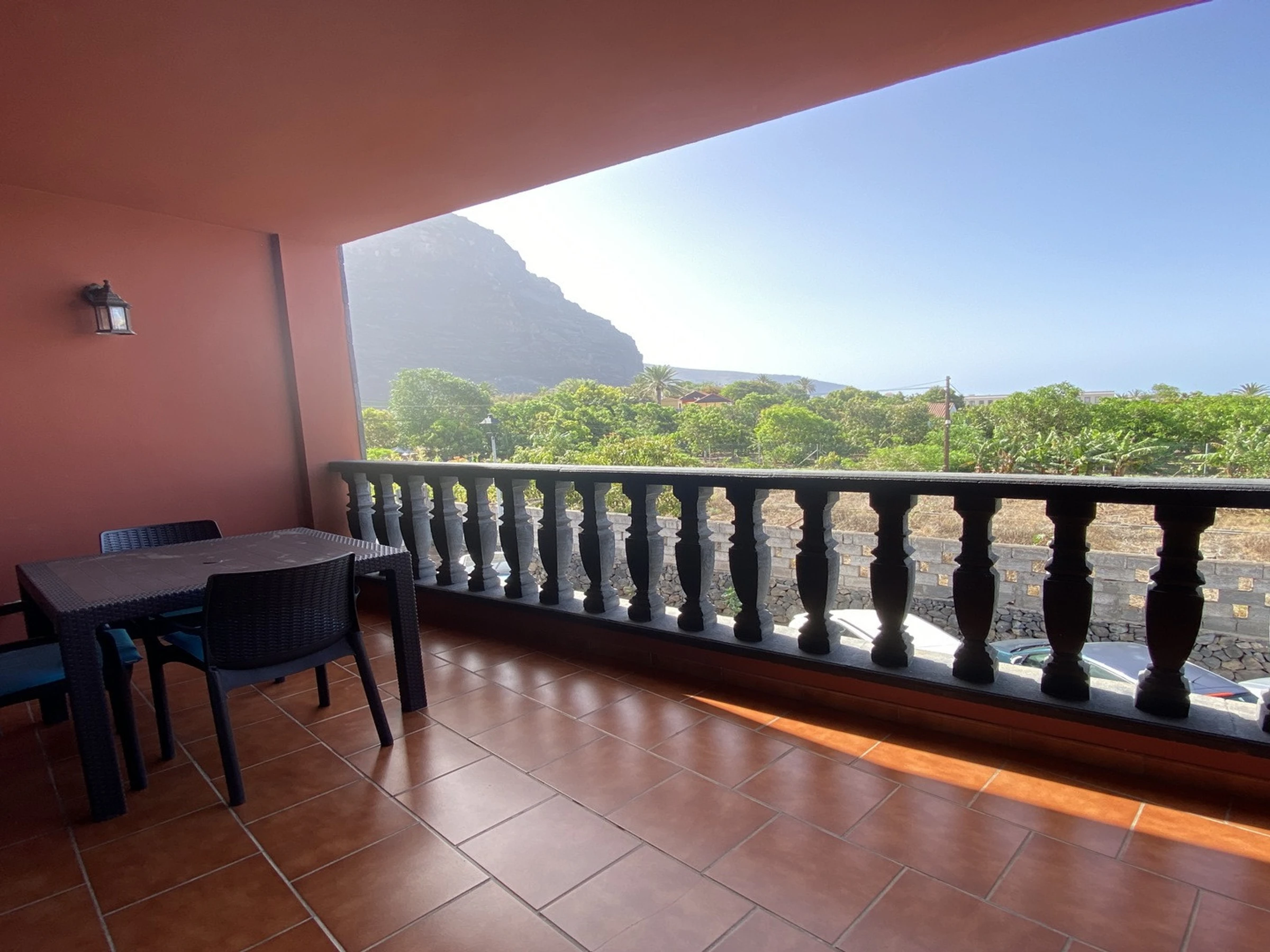 Das Haus mit zwei Apartments, einem Studio und einem Dachapartment, ruhig gelegen in La Puntilla mit Blick auf die Bananenplantagen und auf das obere Valle Gran Rey, zwei Gehminuten vom Strand entfernt. Das Studio ist, hell, grosszügig geschnitten und geschmackvoll eingerichtet. Es besteht aus einem Schlafbereich mit zwei Einzelbetten, einem Wohnküchenbereich mit Schlafsofa, Bad und einem grossen Balkon. SAT-TV und kostenloser Wlan Zugang