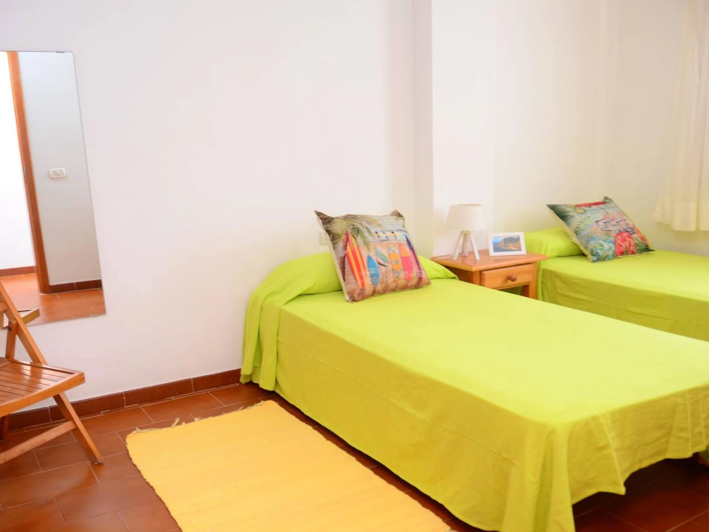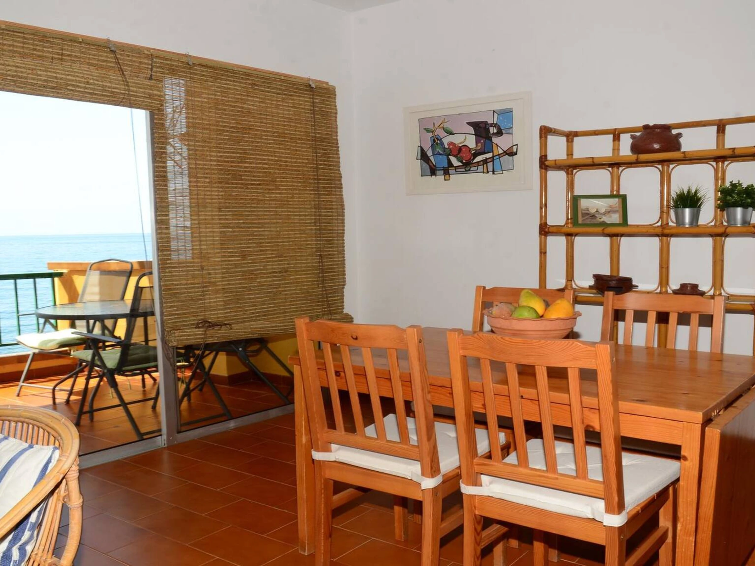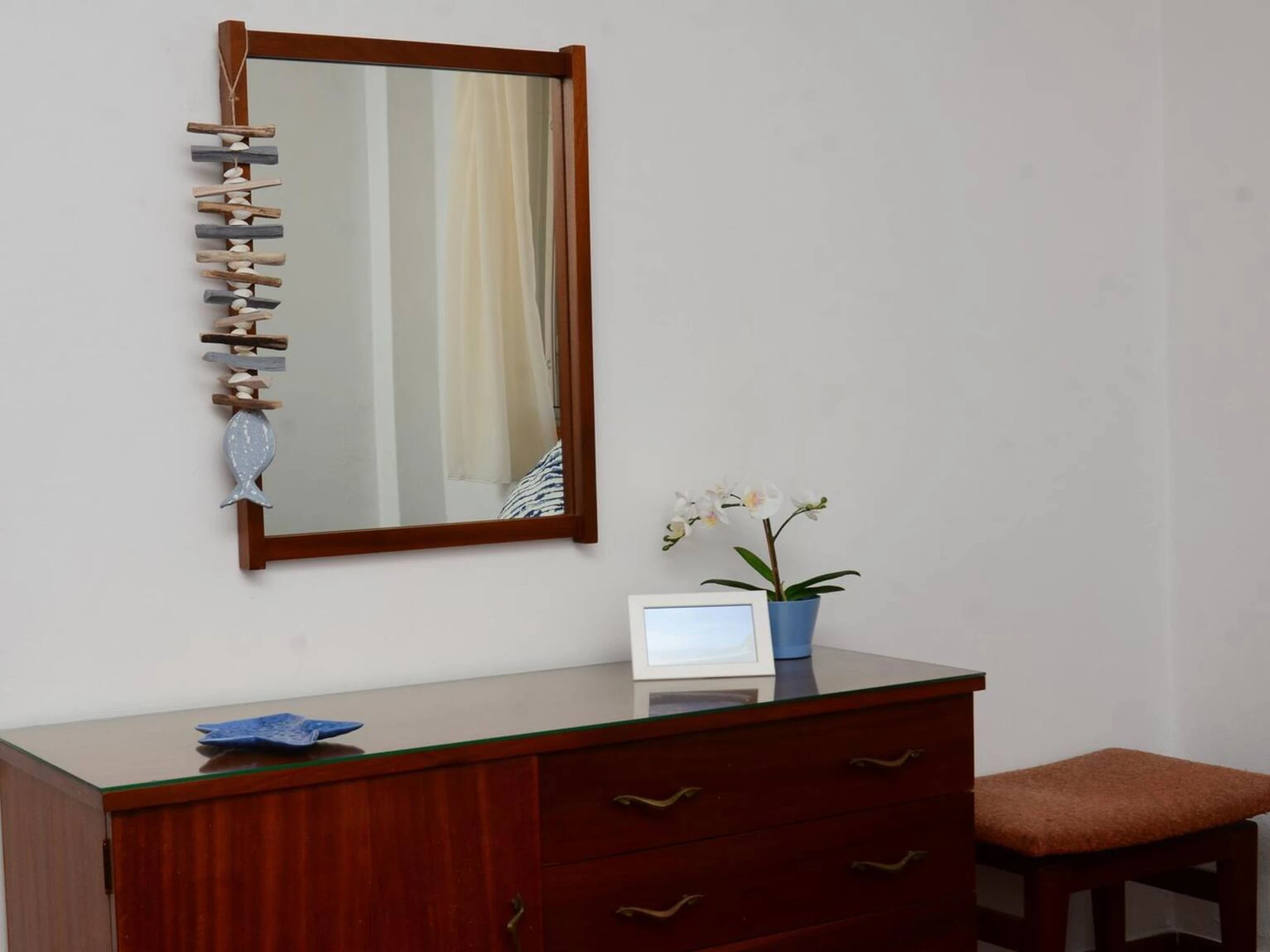 Es verfügt im ersten Stock über zwei Schlafzimmer (eines mit zwei Einzelbetten, das andere mit drei Einzelbetten), Bad, eine gut ausgestattete amerikanische Küche und Wohnbereich mit Esstisch und Zugang zur Terrasse, die einen direkten Meerblick bietet. Vom hinteren Flur aus führt eine Treppe hinunter in den geschützten Innenhof, der mit Liegen und einer Aussendusche ausgestattet ist.