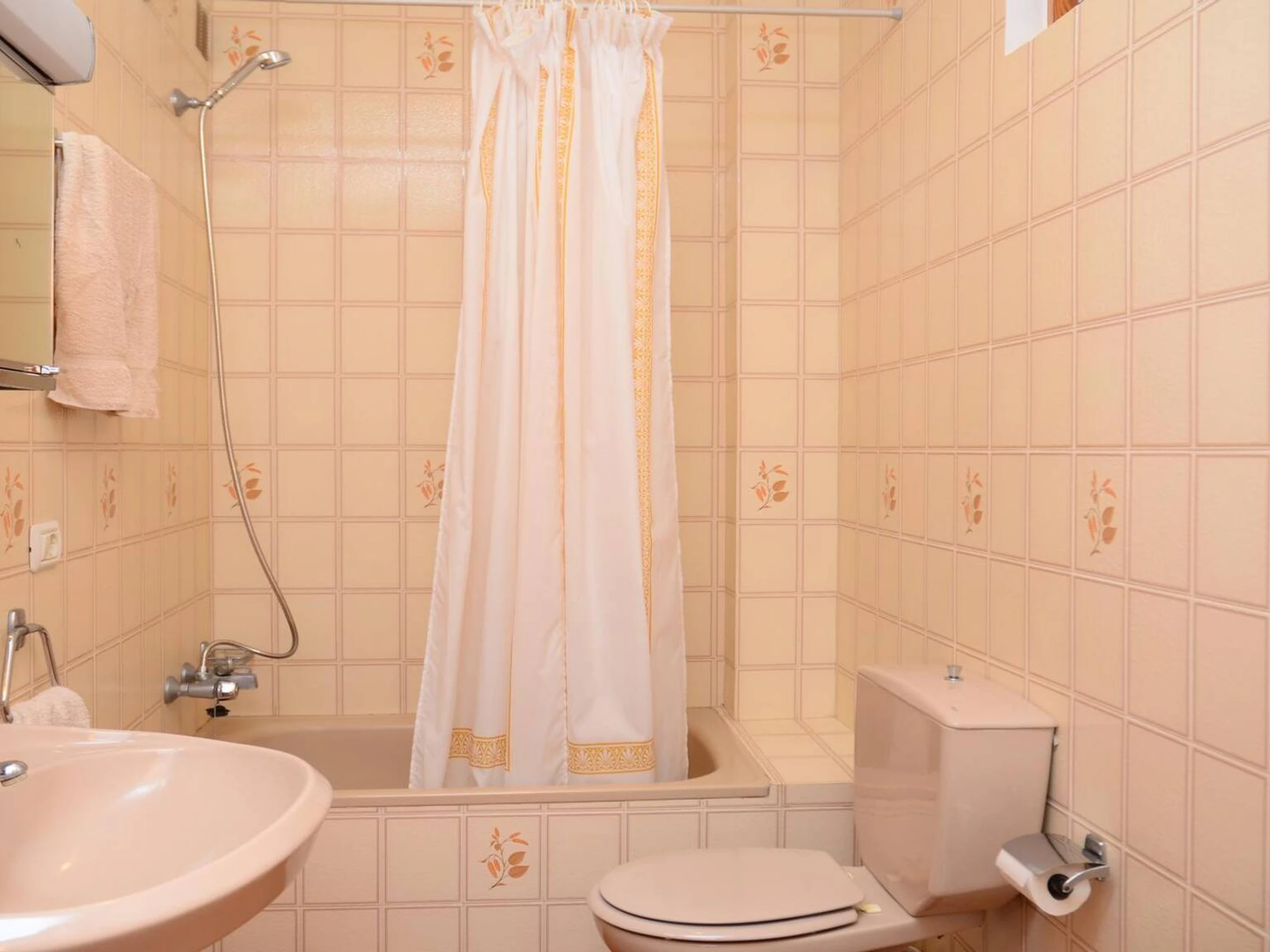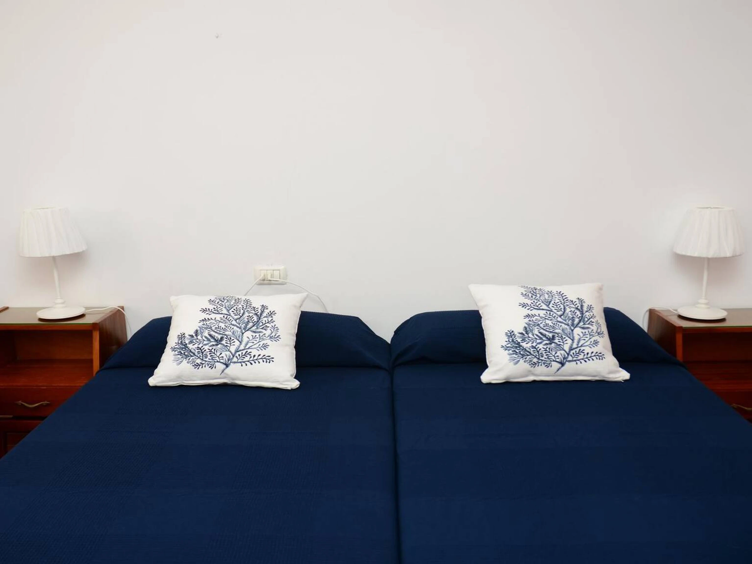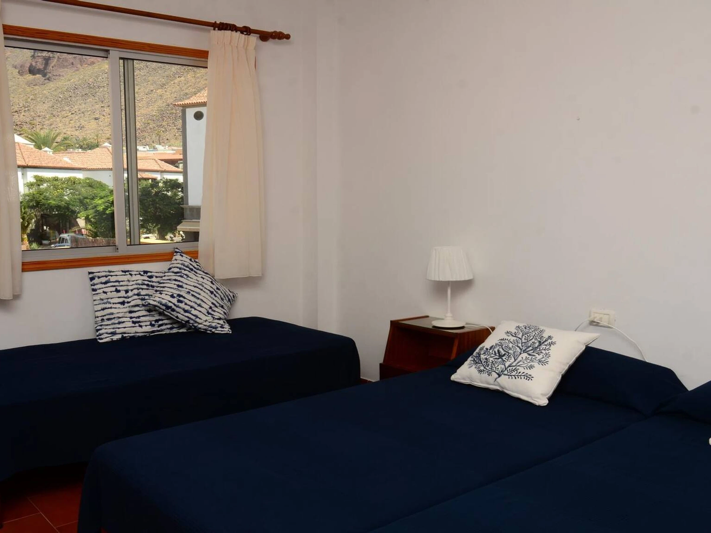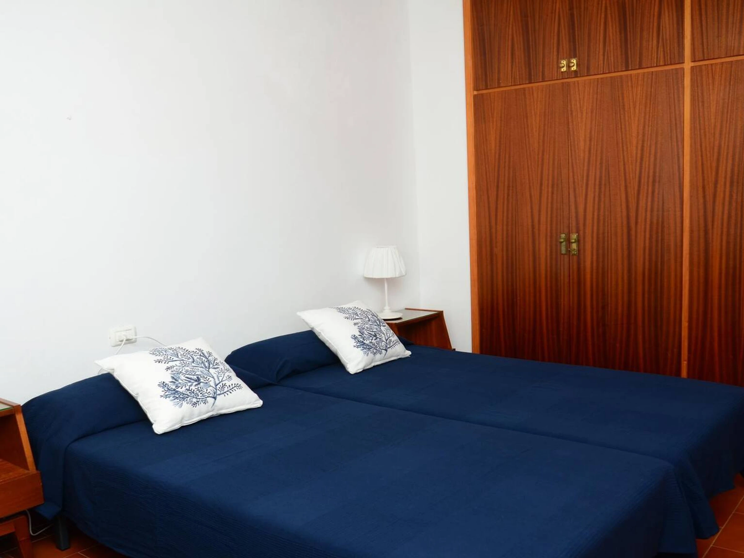 Es verfügt im ersten Stock über zwei Schlafzimmer (eines mit zwei Einzelbetten, das andere mit drei Einzelbetten), Bad, eine gut ausgestattete amerikanische Küche und Wohnbereich mit Esstisch und Zugang zur Terrasse, die einen direkten Meerblick bietet. Vom hinteren Flur aus führt eine Treppe hinunter in den geschützten Innenhof, der mit Liegen und einer Aussendusche ausgestattet ist.