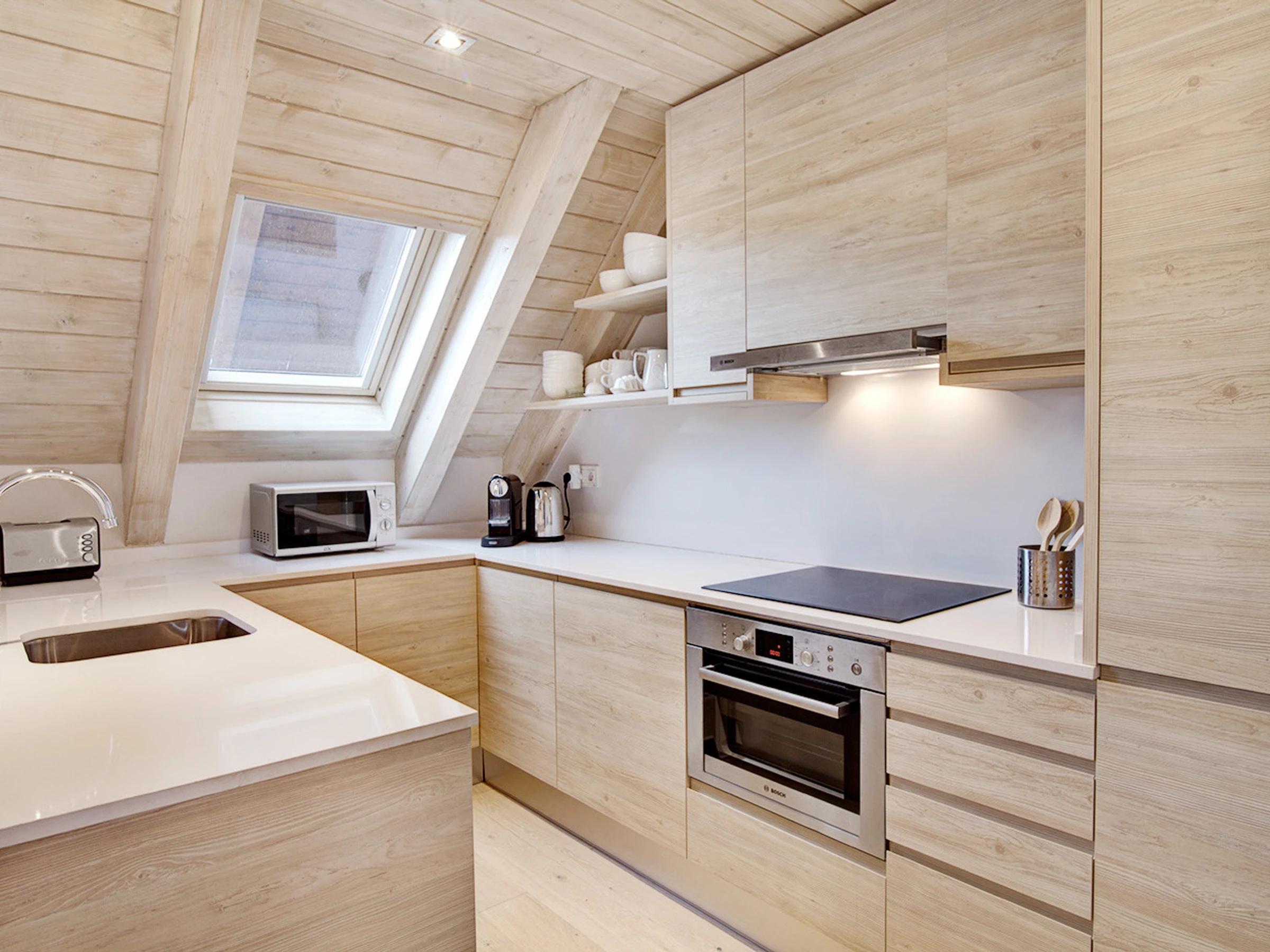 Dieses offene küche, mit ceranfeld, ist ausgestattet in kühlschrank, mikrowelle, backofen, gefrierschrank, spülmaschine, geschirr/besteck, kochutensilien, kaffeemaschine, toaster, wasserkocher und saftpresse.