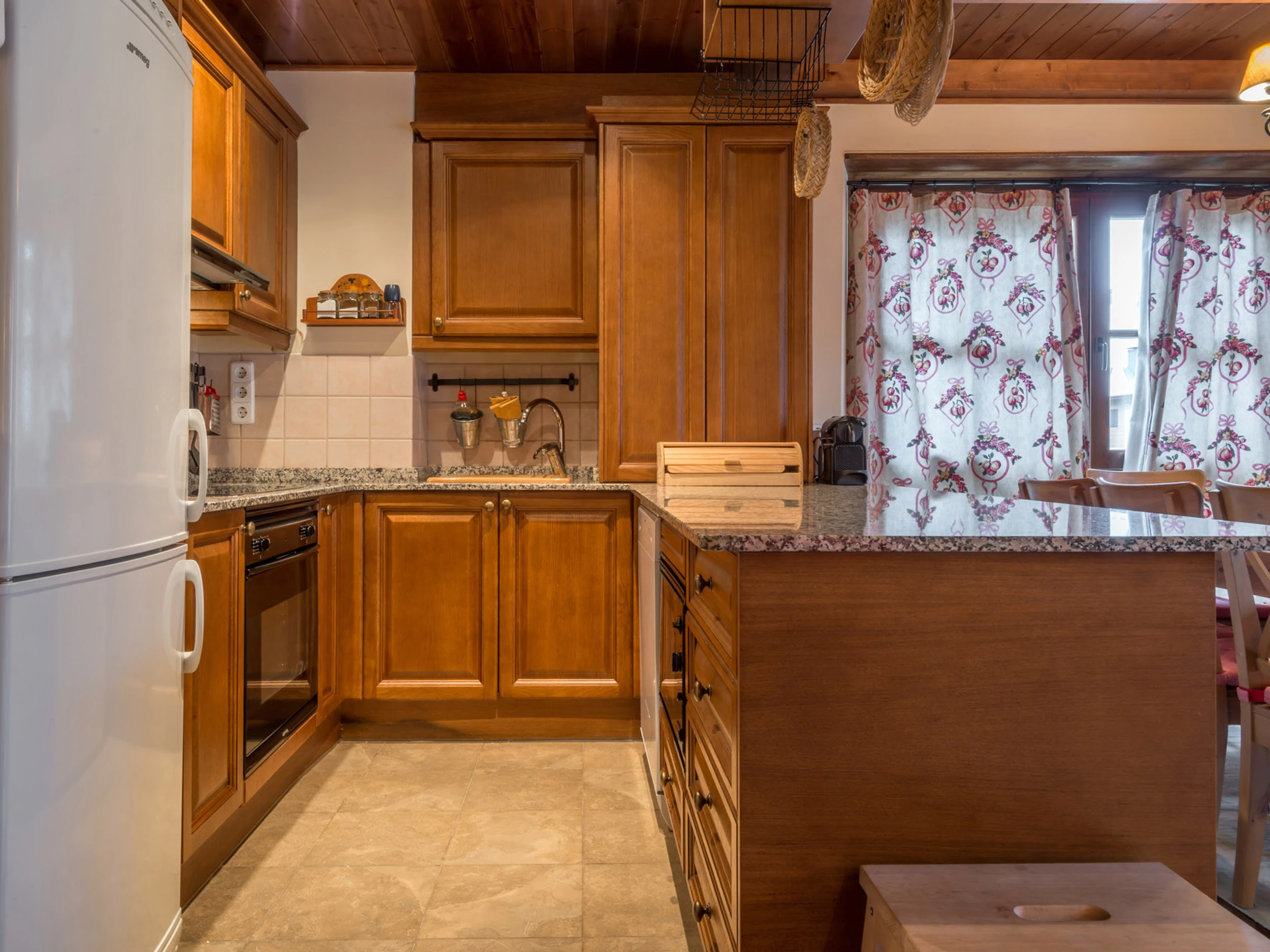 Dieses offene küche, mit ceranfeld, ist ausgestattet in kühlschrank, mikrowelle, backofen, gefrierschrank, spülmaschine, geschirr/besteck, kochutensilien, kaffeemaschine, toaster und saftpresse.