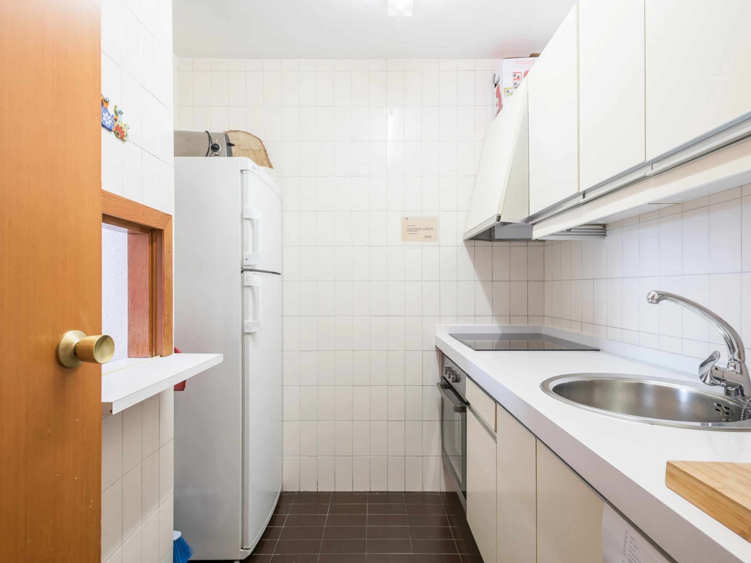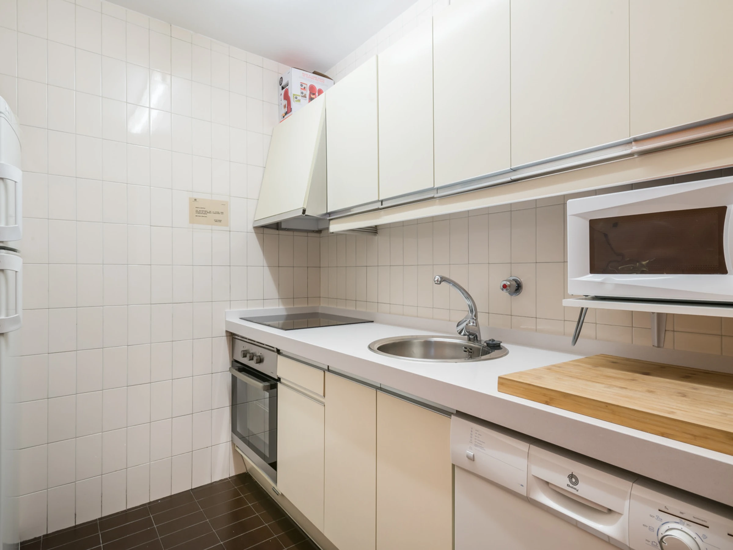 Dieses offene küche, mit ceranfeld, ist ausgestattet in kühlschrank, mikrowelle, backofen, gefrierschrank, spülmaschine, geschirr/besteck, kochutensilien, kaffeemaschine und saftpresse.