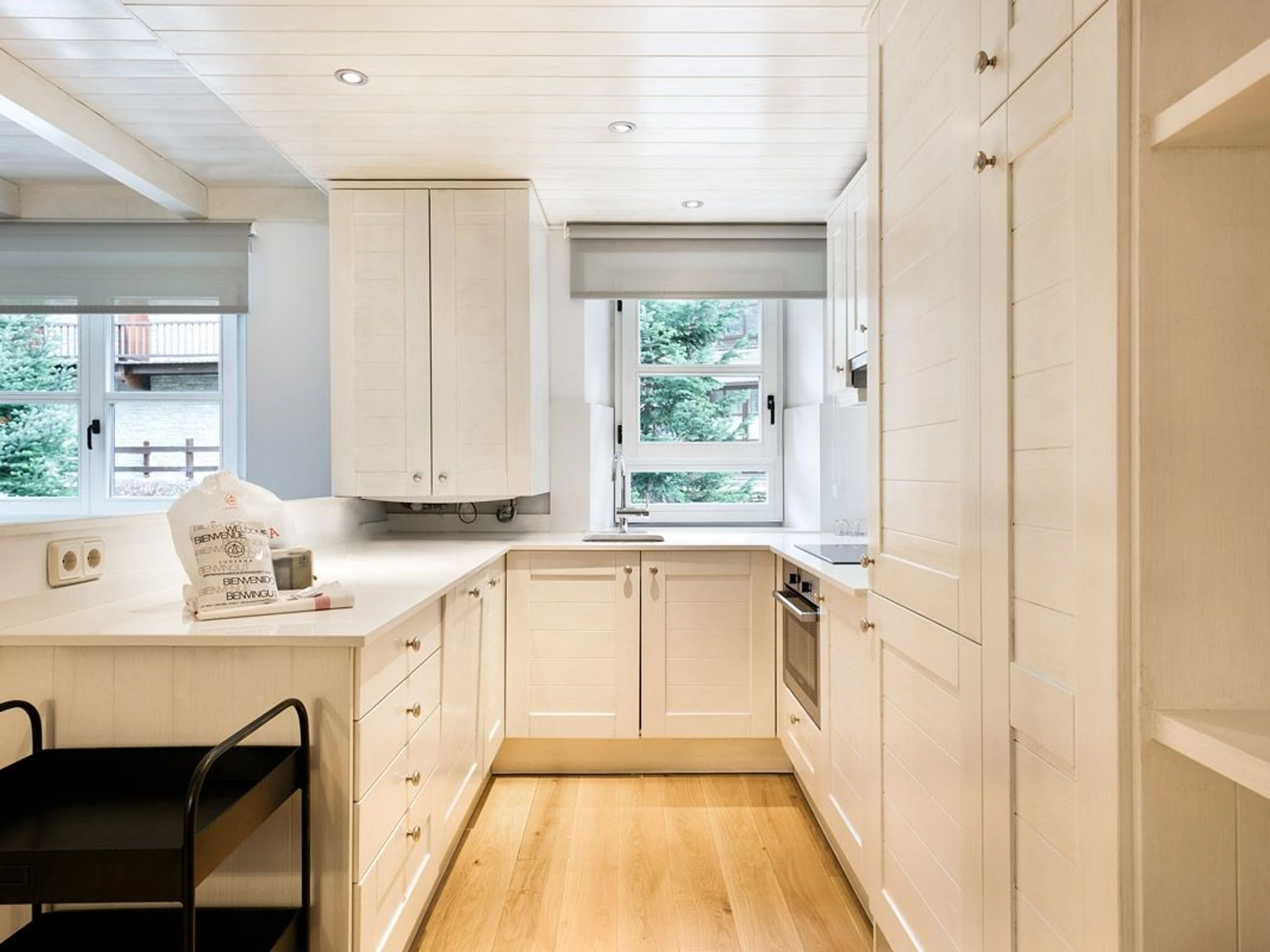 Dieses küche, ist ausgestattet in kühlschrank, backofen, gefrierschrank, spülmaschine, kochutensilien, kaffeemaschine, toaster, wasserkocher und saftpresse.