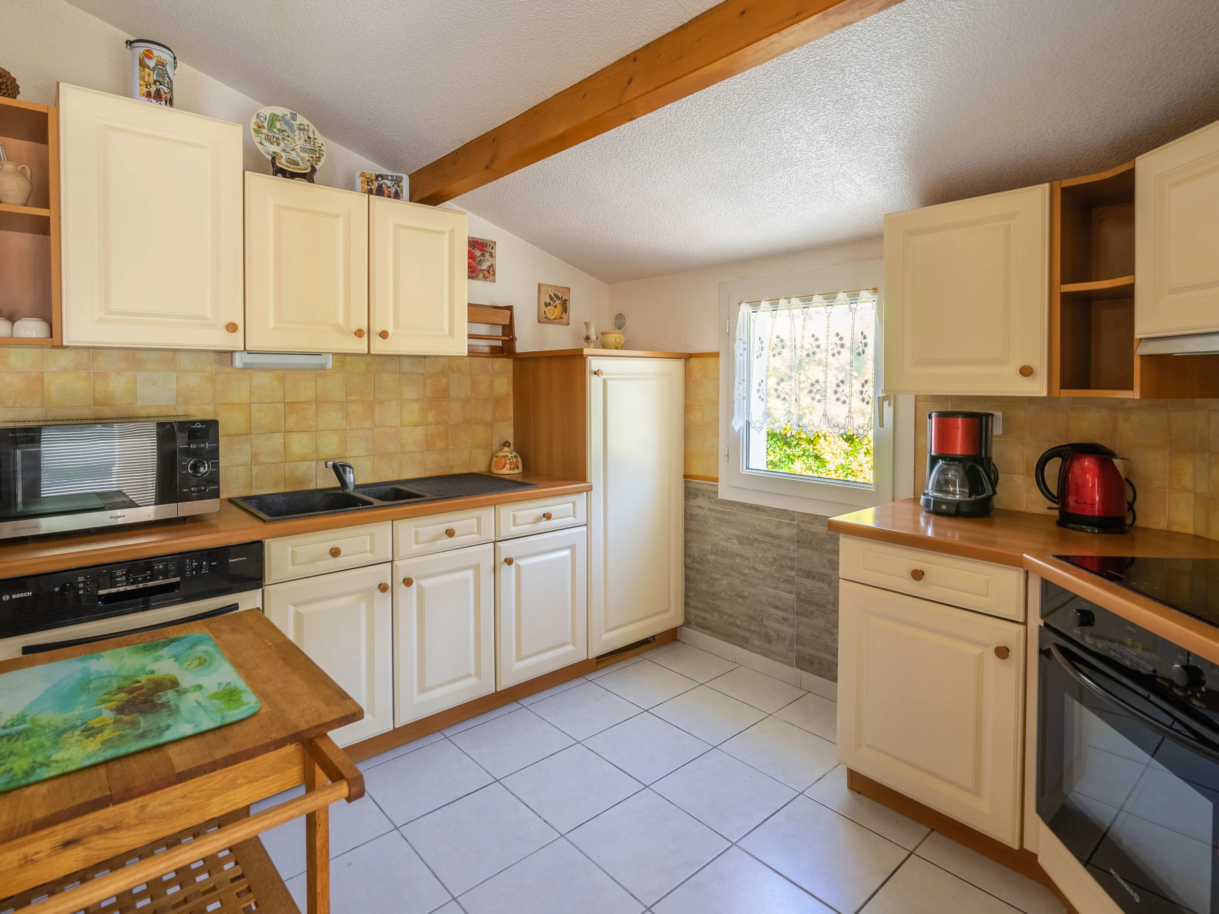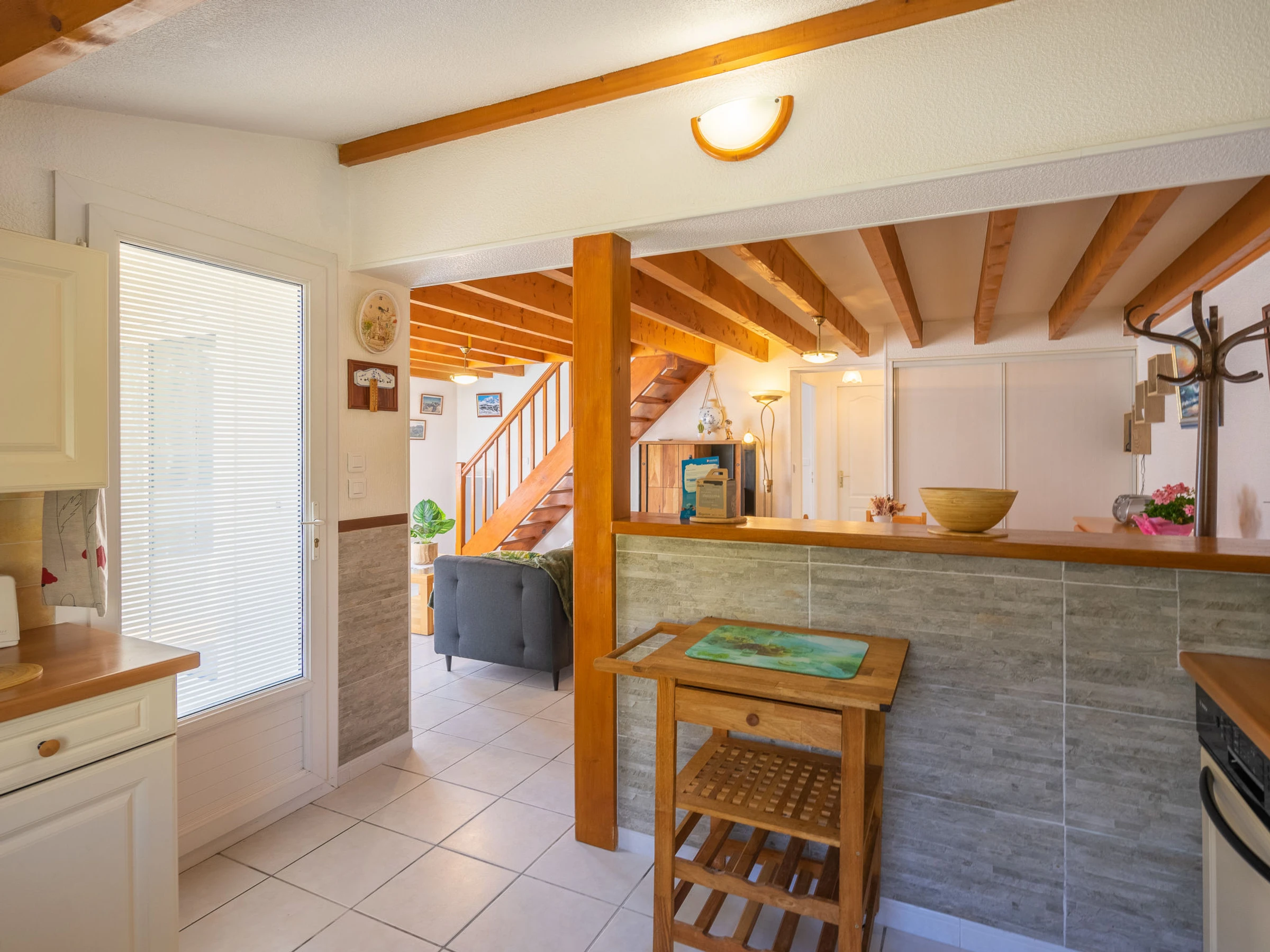 4-Zimmer-Haus 70 m2 auf 2 Stockwerken. Komfortabel eingerichtet: Wohn-/Esszimmer mit TV (Flachbildschirm). Ausgang zur Terrasse. 1 Zimmer mit 1 franz. Bett (1 x 140 cm, Länge 190 cm). Offene Küche (Backofen, Geschirrspüler, 4 Glaskeramikplatten, Mikrowelle, elektrische Kaffeemaschine). Bad, sep. WC. E-Heizung. Obergeschoss: 2 Zimmer, jedes Zimmer mit 1 franz. Bett (1 x 140 cm, Länge 190 cm). Terrassenmöbel. Zur Verfügung: Waschmaschine, Bügeleisen. Internet (Wireless LAN, gratis). Parkplatz (2 Autos). Bitte beachten: Rauchmelder.