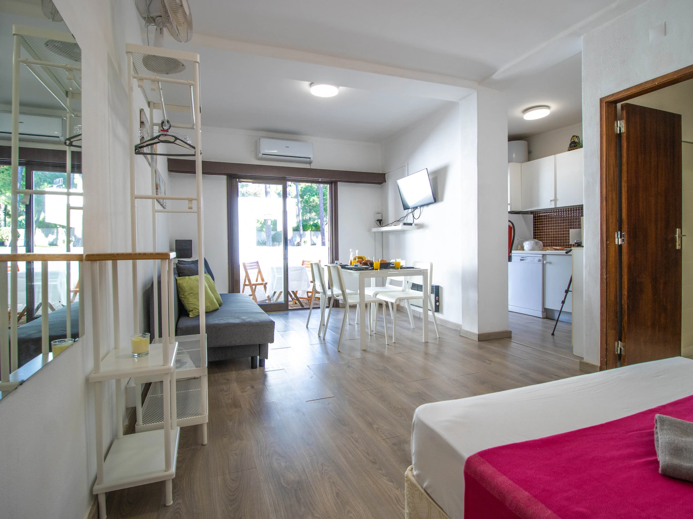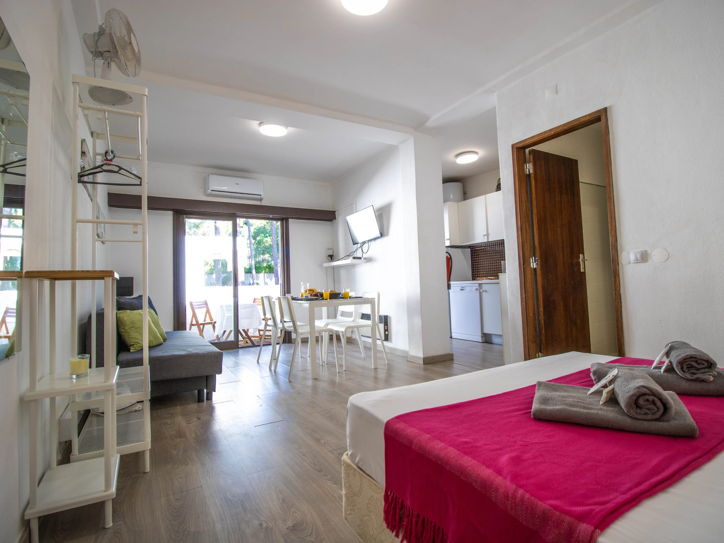 Diese gemütliche 1-Zimmer-Unterkunft ist der perfekte Zufluchtsort für einen entspannten und intimen Aufenthalt. Das Zimmer, hell und mit modernem, komfortablem Stil eingerichtet, bietet die ideale Umgebung zum Ausruhen nach einem Tag voller Erkundungen. Der Wohnbereich ist charmant und funktional, mit einer kompakten, voll ausgestatteten Küche für Ihre Bedürfnisse. Der absolute Höhepunkt ist der private Balkon, ein perfekter Freiraum zum Entspannen, um die Brise zu genießen oder ein Getränk zu trinken. Der Pool, in einer ruhigen Umgebung gelegen, bietet den perfekten Ort zum Abkühlen und Genießen sonniger Tage. Diese Unterkunft ist ideal für Paare oder Einzelreisende, die Privatsphäre, Komfort und Ruhe suchen.