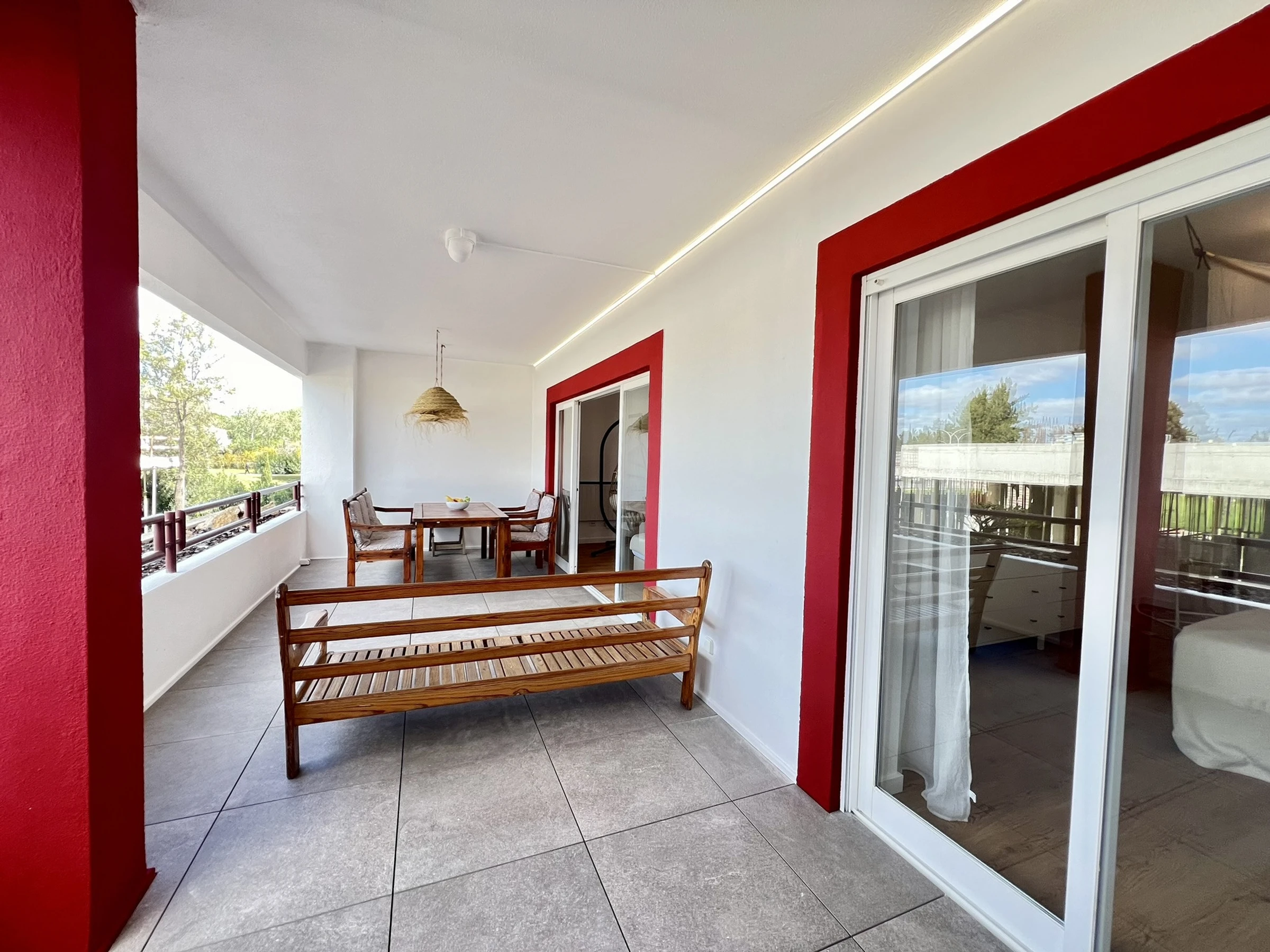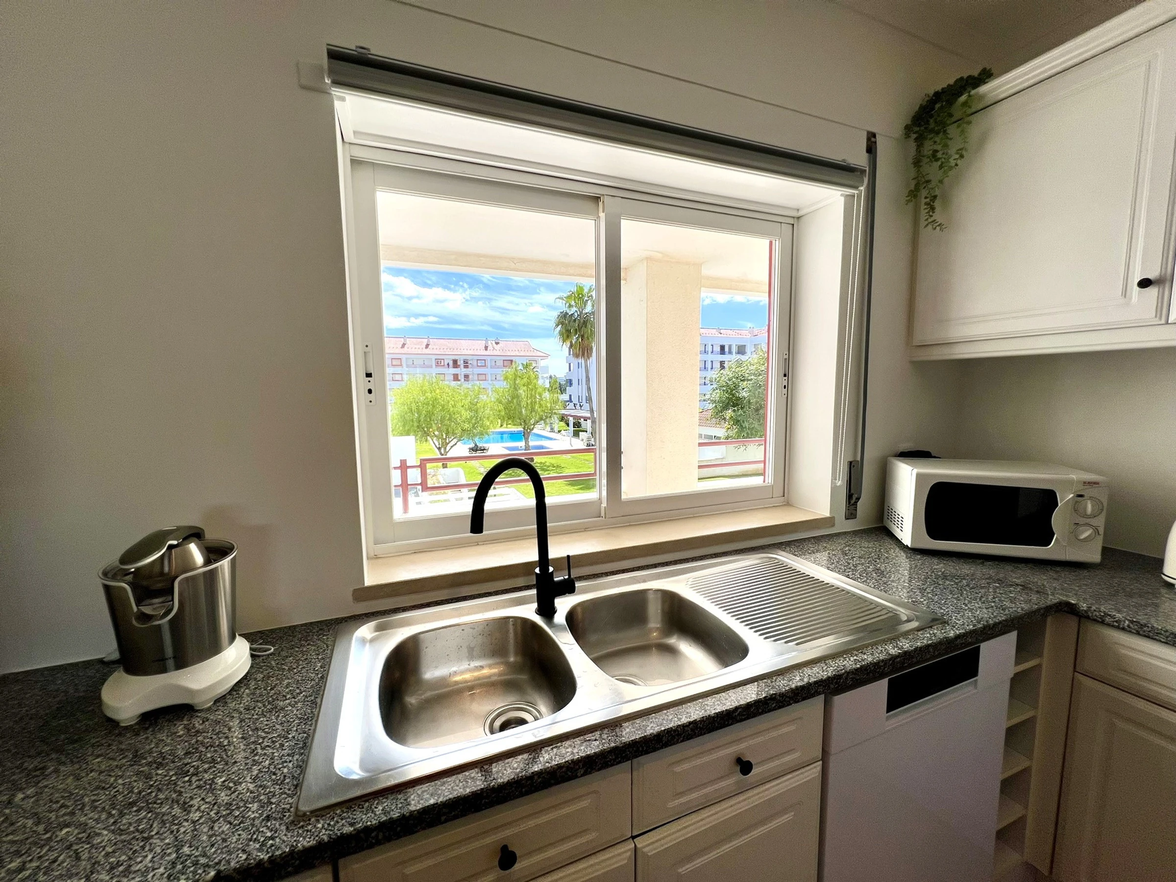 Diese charmante 1-Zimmer-Unterkunft bietet eine perfekte Zuflucht für alle, die Komfort und Entspannung suchen. Das Zimmer ist hell und geschmackvoll eingerichtet und schafft eine gemütliche und ruhige Atmosphäre zum Ausruhen. Der Wohnbereich ist modern und funktional, während die voll ausgestattete Küche die Bequemlichkeit bietet, eigene Mahlzeiten zuzubereiten. Das absolute Highlight dieser Unterkunft ist der private Balkon, ideal für Freizeitmomente im Freien, zum Trinken eines Getränks oder einfach zum Genießen der Aussicht. Der Pool, umgeben von einer ruhigen Umgebung, ist perfekt zum Abkühlen und Sonnenbaden. Mit einer Kombination aus Komfort, Privatsphäre und Ruhe ist diese Unterkunft die ideale Wahl für einen entspannten und angenehmen Aufenthalt.