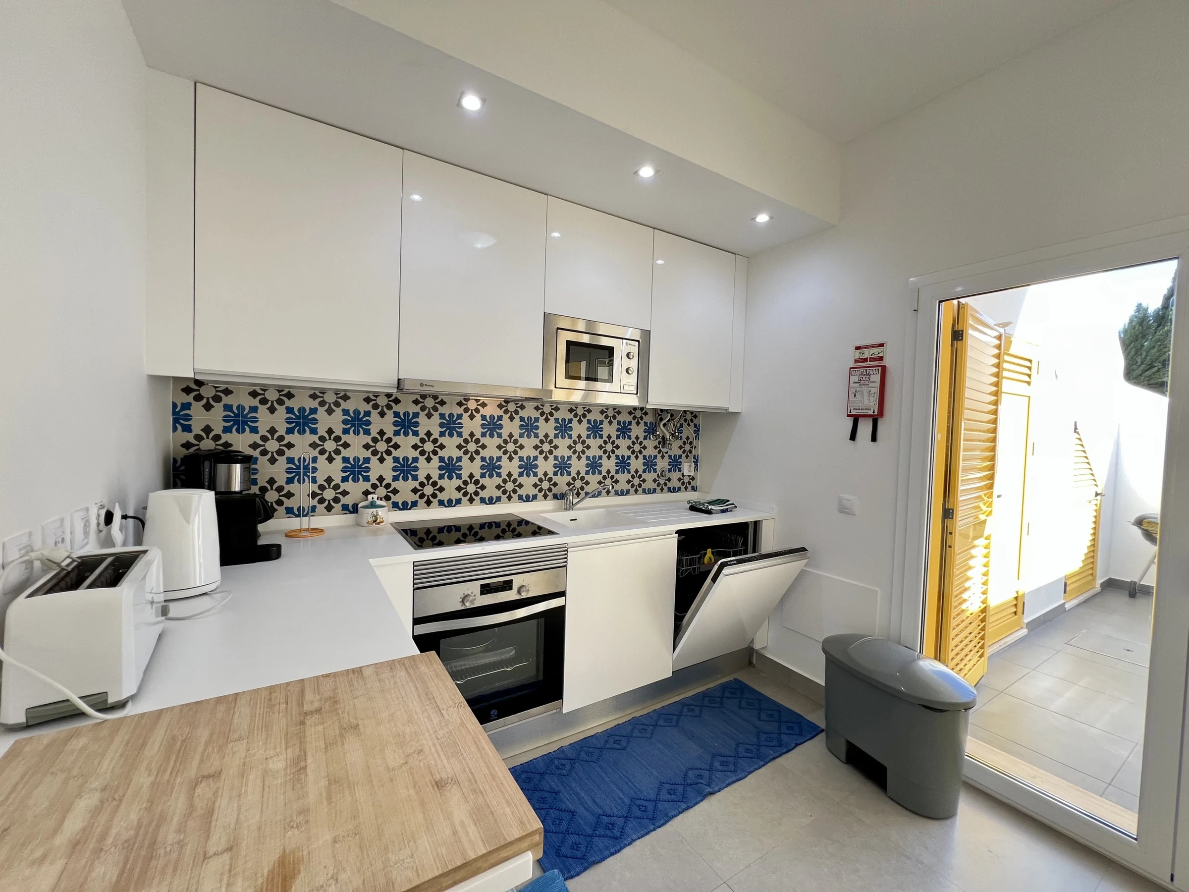 Dieses entzückende Reihenhaus, kürzlich renoviert, bietet eine perfekte Kombination aus modernem Komfort und gemütlichem Charme. Mit 2 geräumigen und hell beleuchteten Schlafzimmern bietet es eine ideale Umgebung zum Ausruhen und Entspannen. Der Wohnbereich ist geräumig und einladend, mit einer voll ausgestatteten Küche, ideal zum Zubereiten von Mahlzeiten. Das große Highlight ist die private Terrasse, ein perfekter Ort für Freizeitmomente im Freien, Mahlzeiten oder einfach zum Genießen der Ruhe. Der Swimmingpool im Außenbereich bietet den idealen Ort zum Abkühlen und Sonnenbaden. Mit hochwertigen Ausstattungsdetails und ruhiger Lage bietet dieses Reihenhaus die perfekte Balance zwischen Stil und Komfort für einen unvergesslichen Aufenthalt.