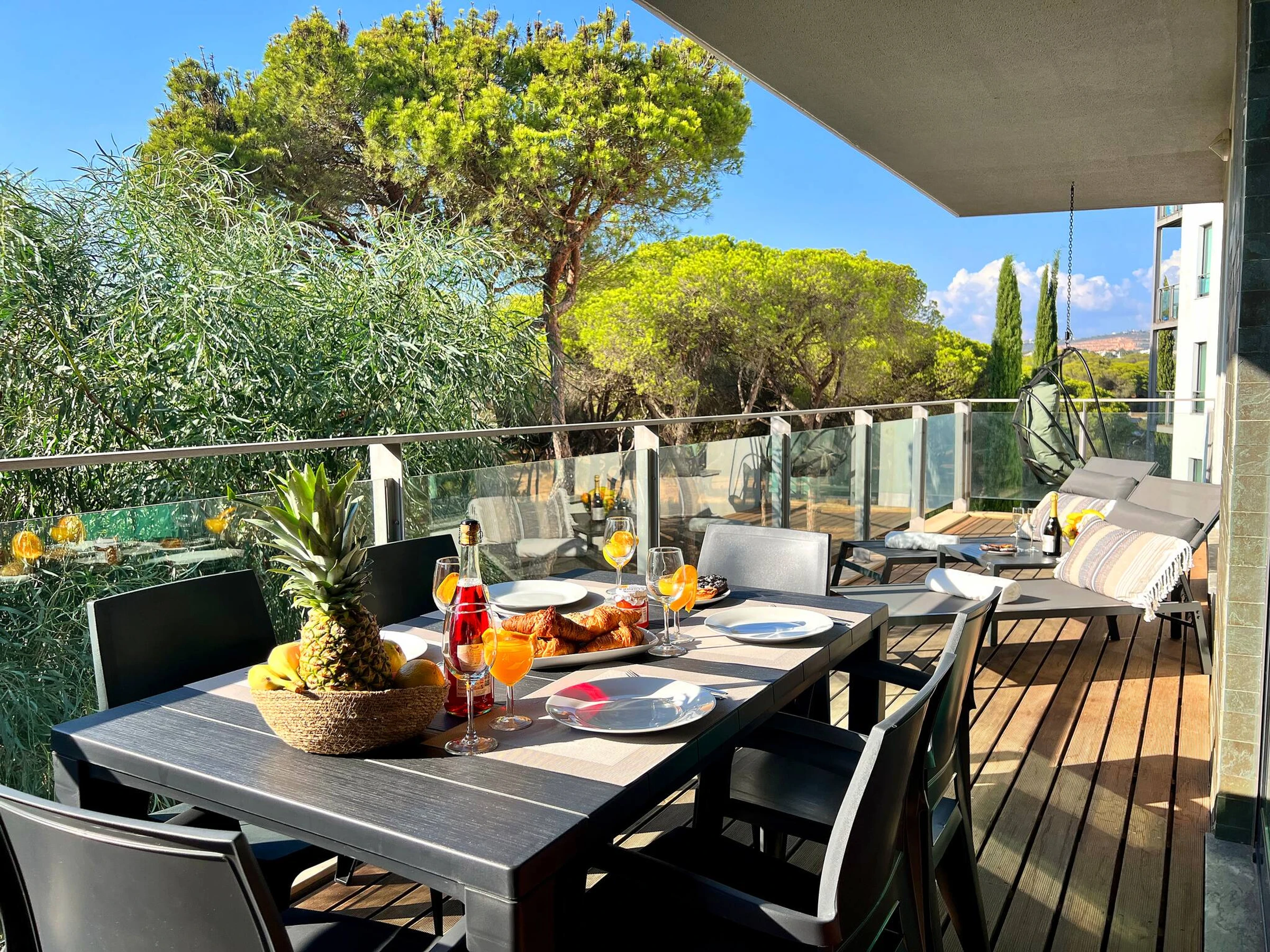 Die Immobilie verfügt über eine nach Norden ausgerichtete Terrasse, Klimaanlage, Kabel-TV, tragbares Internet und grundlegende Versorgungseinrichtungen. Der Hafen von Vilamoura und die nächstgelegenen Strände sind nur 7-10 Minuten Autofahrt entfernt. Genießen Sie die ruhige Umgebung mit Blick auf den Wald und atemberaubende Sonnenuntergänge - eine ideale Umgebung für einen erholsamen Aufenthalt.