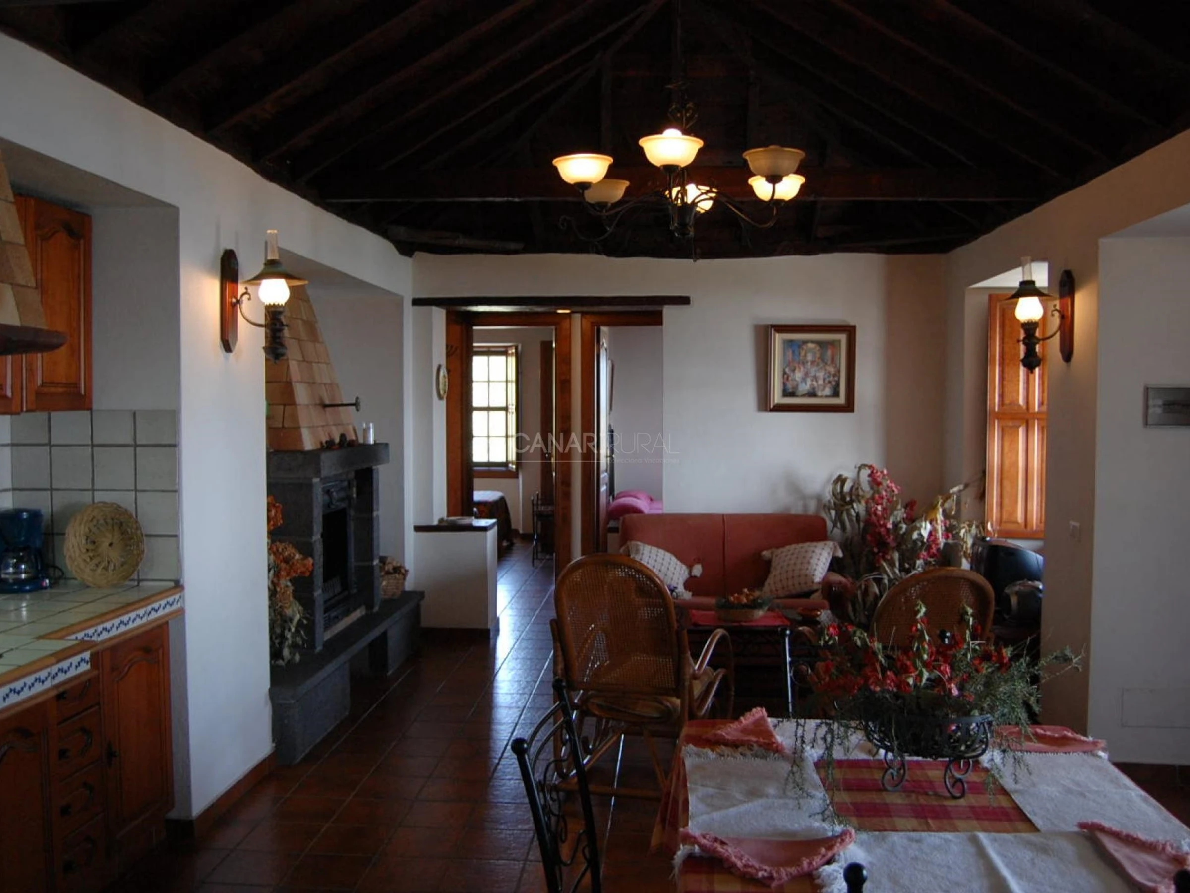 - Wohnzimmer - Küche - Esszimmer mit Kamin