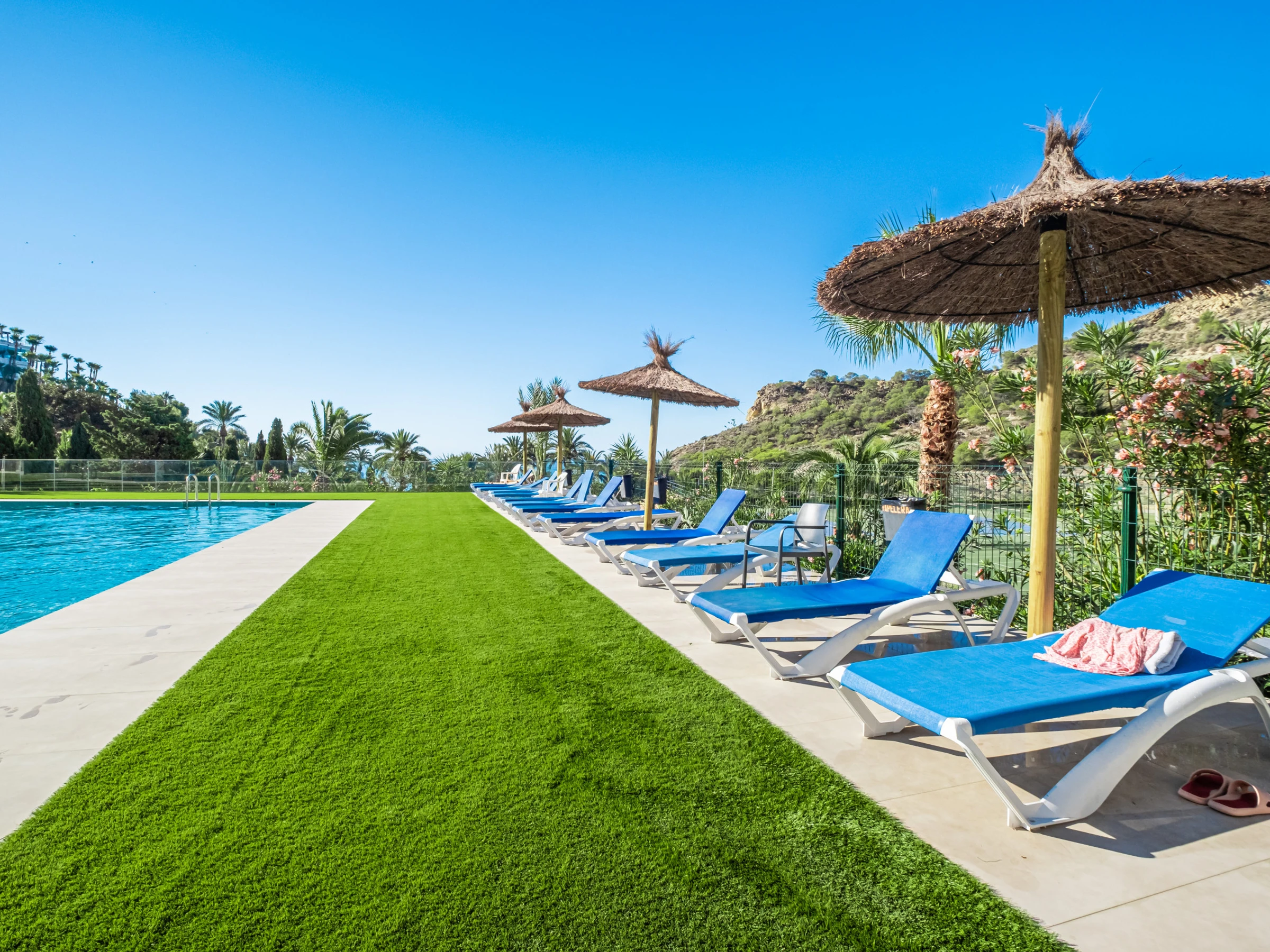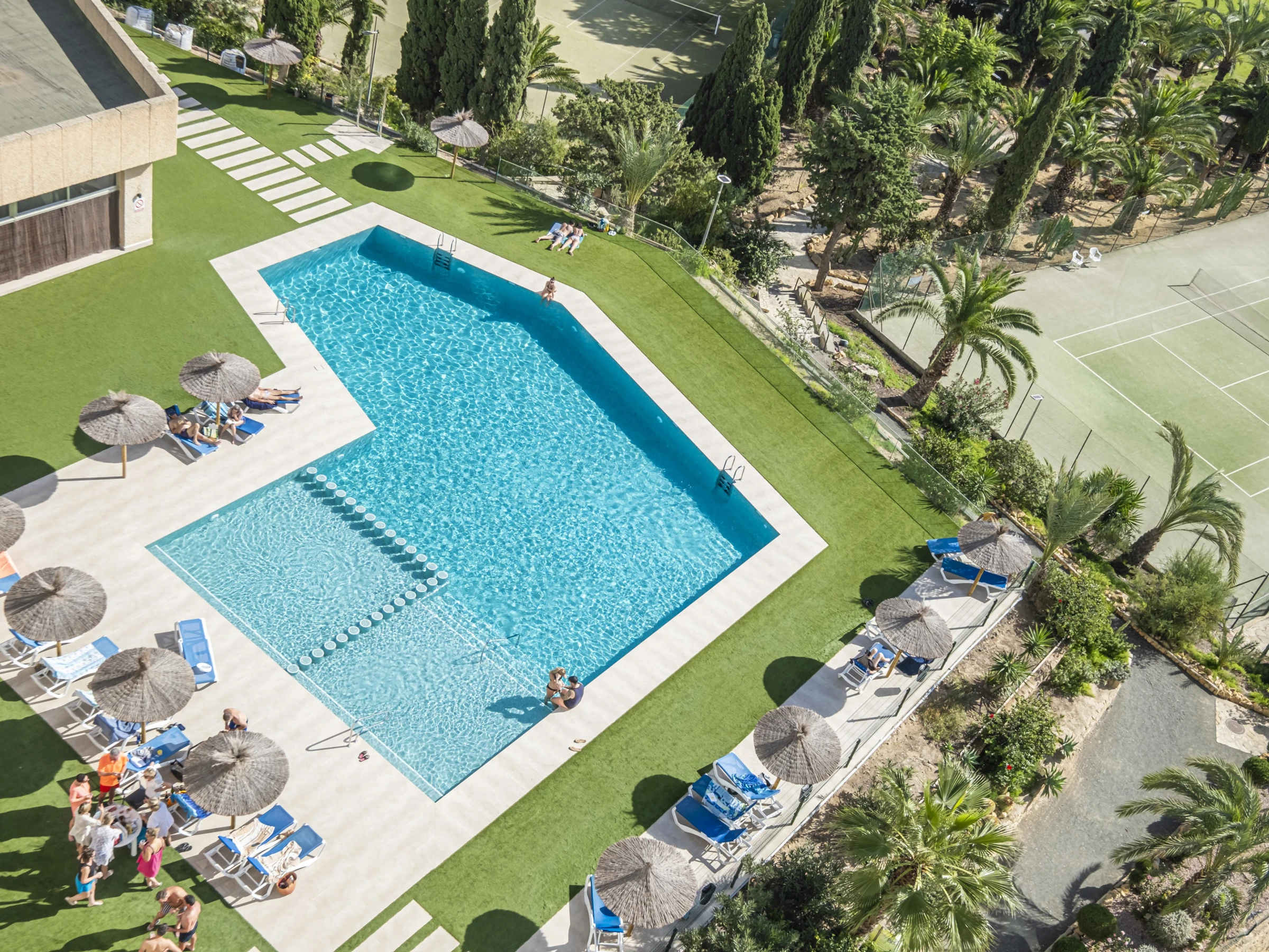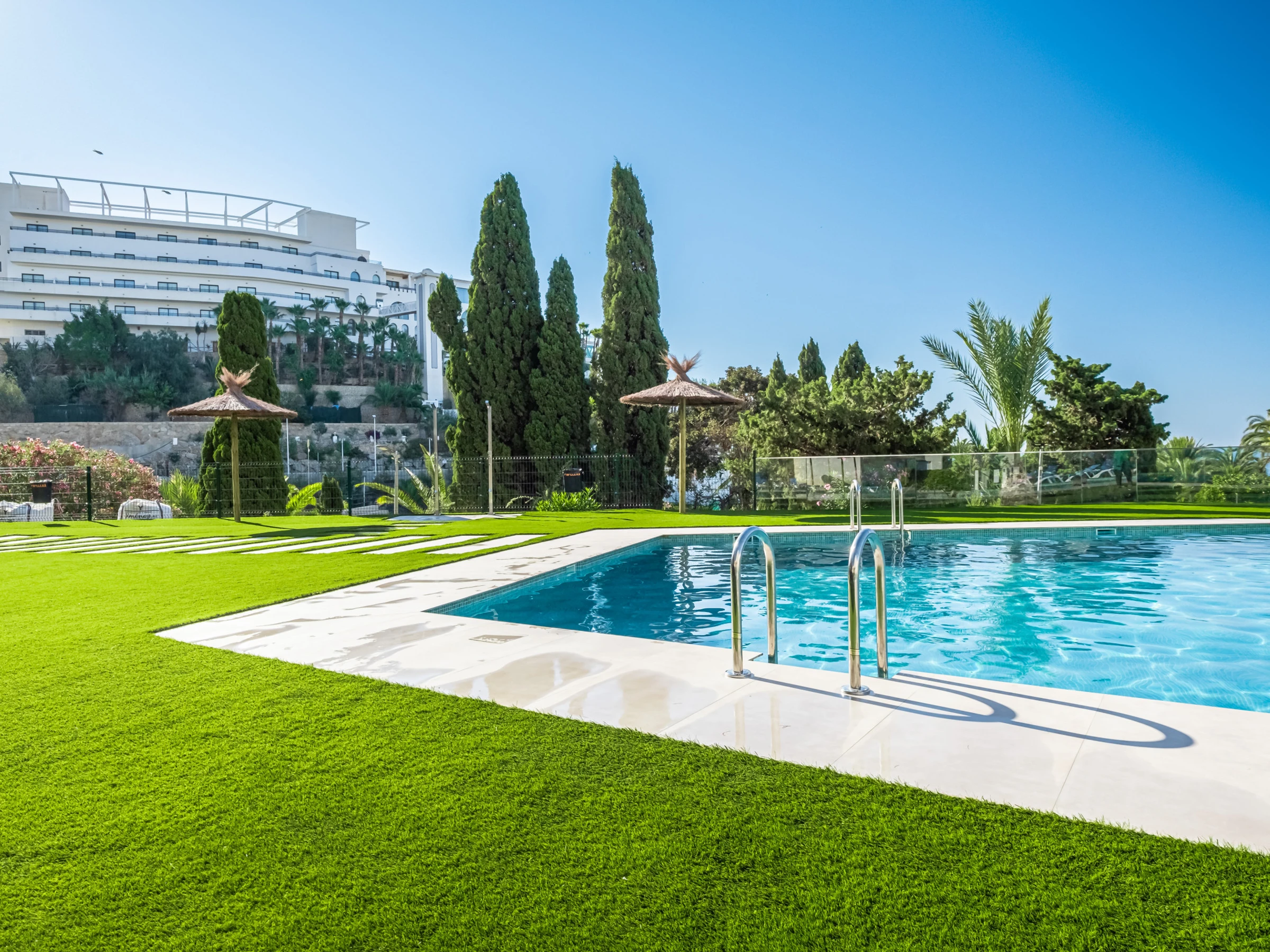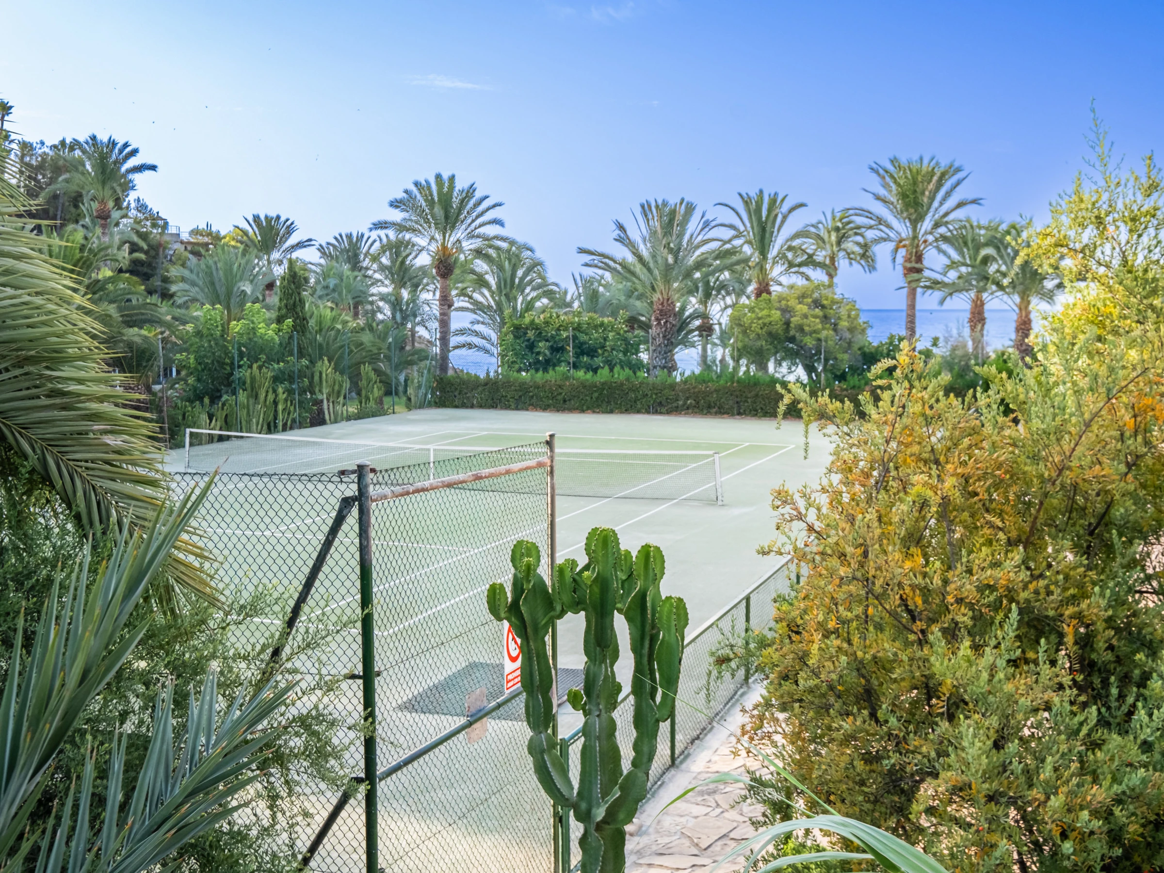 Die Unterkunft verfügt über aufzug, garten, gartenmöbel, umzäuntes grundstück, 6 m² terrasse, waschmaschine, bügeleisen/-brett, internet (WLAN), haartrockner, kinderbereich, tennisplatz, heizung, klimaanlage, swimming-pool gemeinschaftlicher swimming pool + kinderbecken, parkplatz im freien in auf dem grundstück, 1 ventilator, 2 Fernsehgeräte.