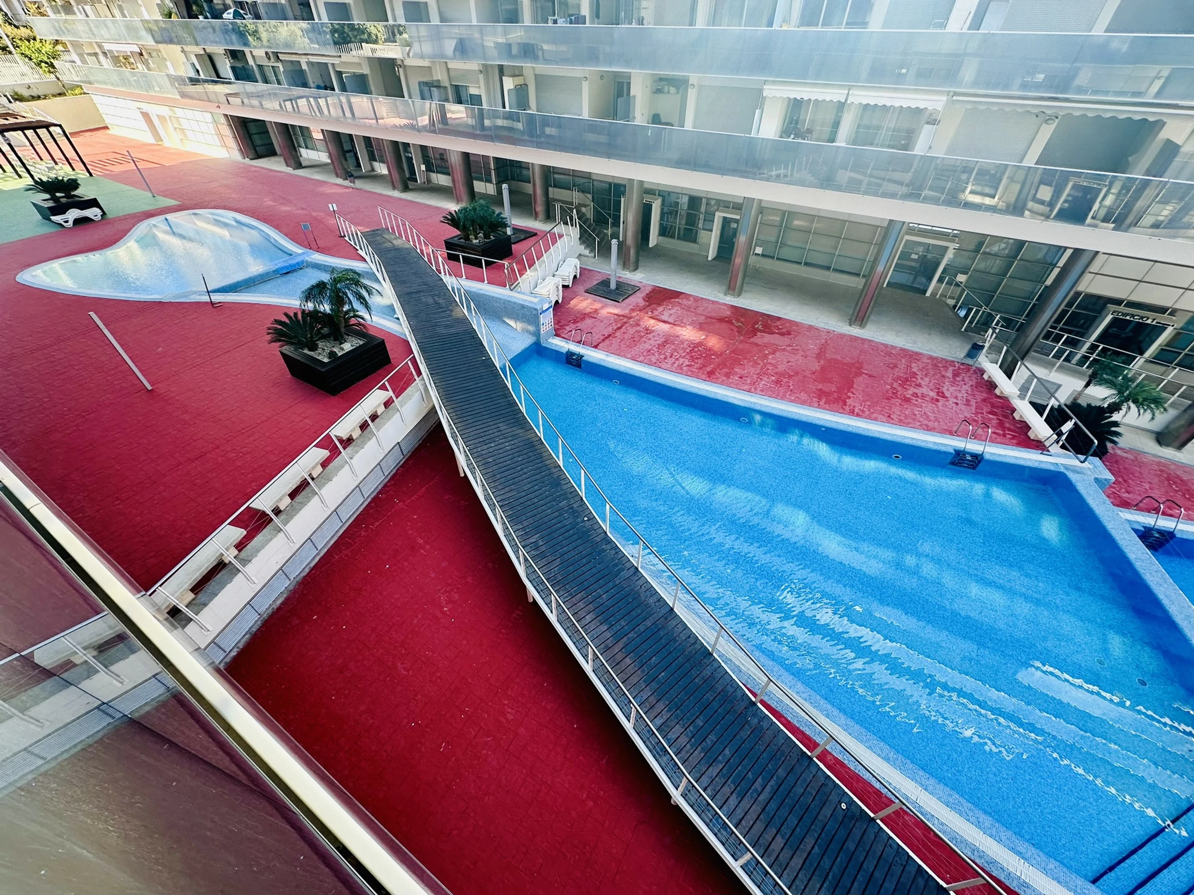 Die Unterkunft verfügt über aufzug, terrasse, waschmaschine, bügeleisen/-brett, internet (WLAN), kinderbereich, fitnessraum, heizung, klimaanlage nur im esszimmer, swimming-pool gemeinschaftlicher swimming pool + kinderbecken, garage in auf dem grundstück, 1 ventilator, 1 Fernseher.