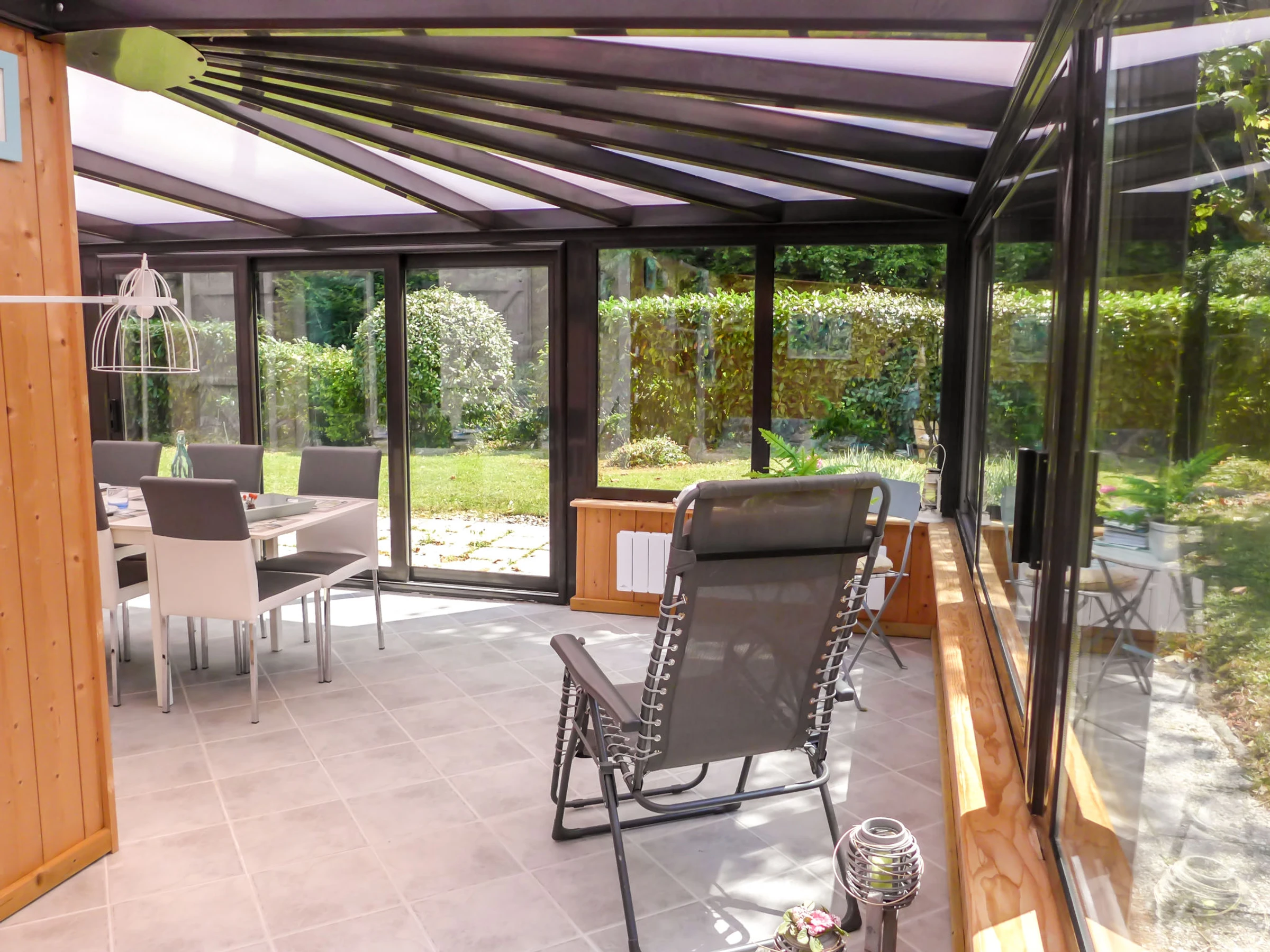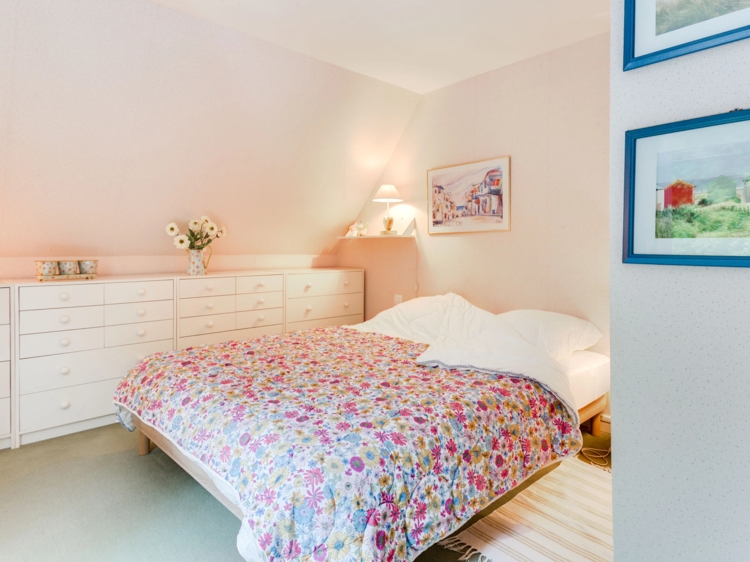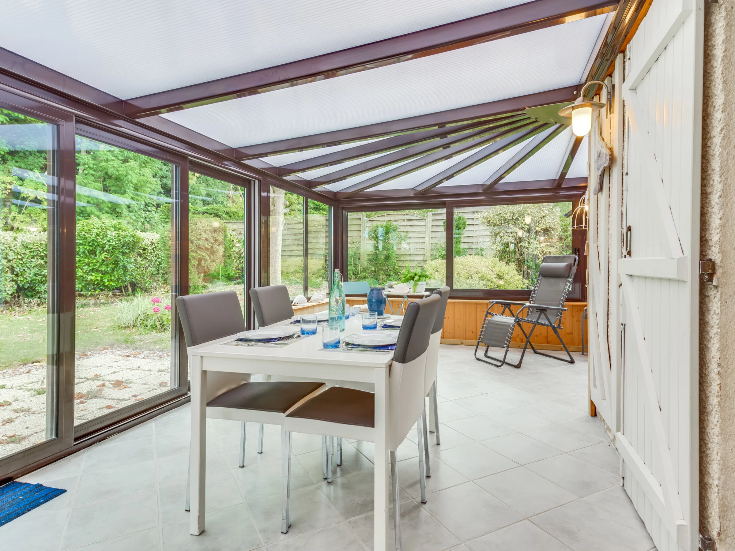 3-Zimmer-Reihenhaus 77 m2 auf 2 Stockwerken, Nordostlage. Wohn-/Esszimmer mit DVD. Ausgang zur Veranda. Offene Küche (Backofen, Geschirrspüler, 3 Glaskeramikplatten, Toaster, Wasserkocher, Mikrowelle, elektrische Kaffeemaschine). Dusche/WC. E-Heizung. Obergeschoss: 1 Zimmer mit 1 franz. Bett (160 cm, Länge 200 cm). 1 Zimmer mit 1 x 2 Etagenbetten (90 cm, Länge 190 cm). Garten 300 m2. Terrassenmöbel, Liegestühle (2). Zur Verfügung: Bügeleisen, Kinderhochstuhl. Internet (WLAN, extra). Parkplatz Nr. 117. Bitte beachten: Rauchmelder. [hidden]
