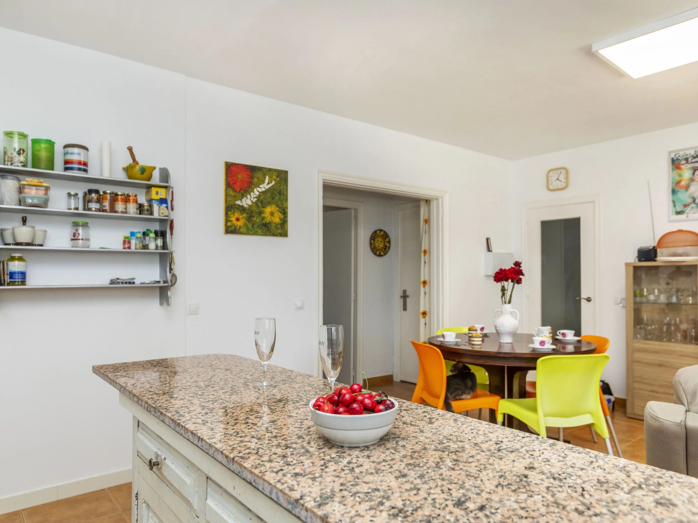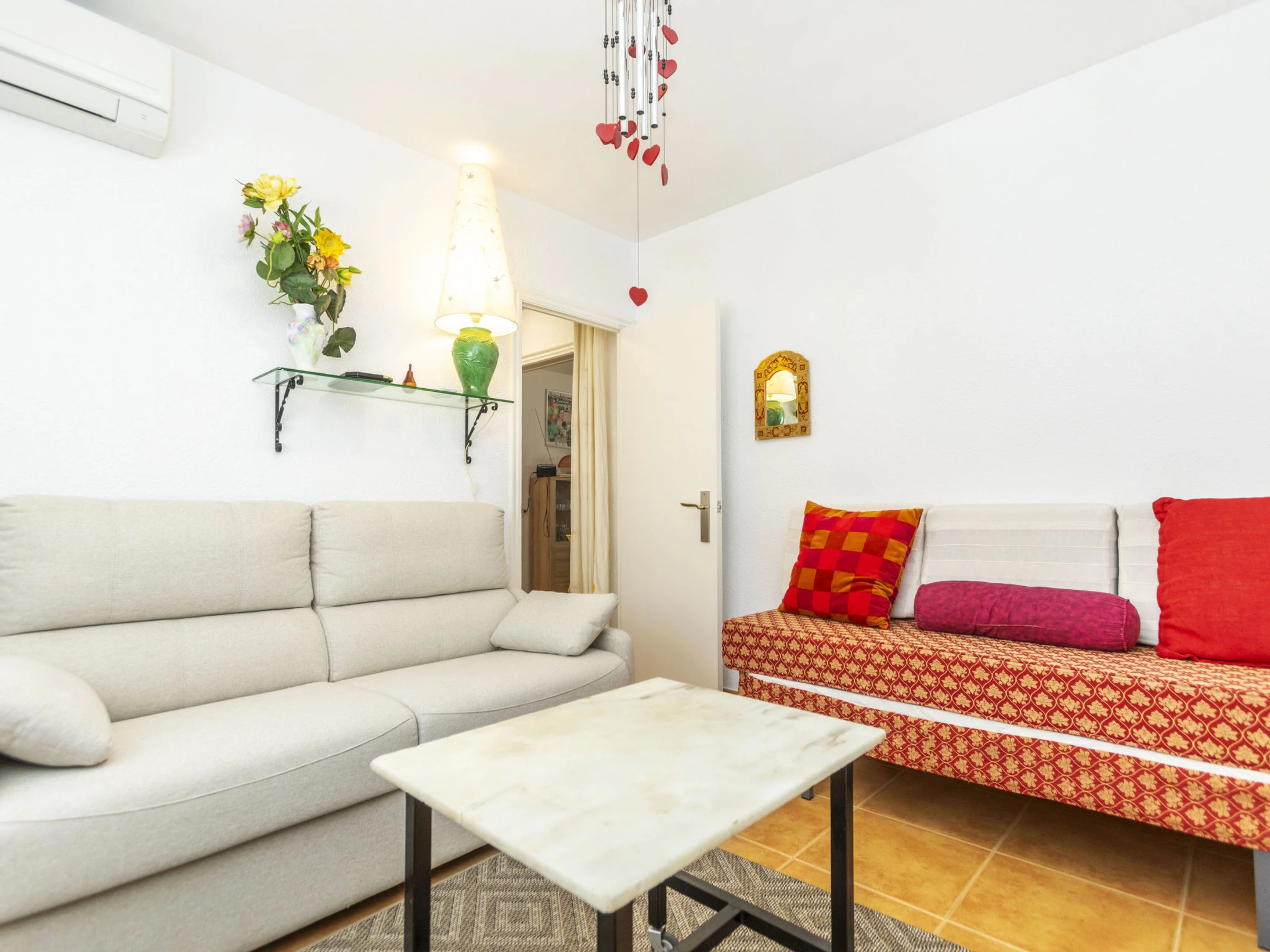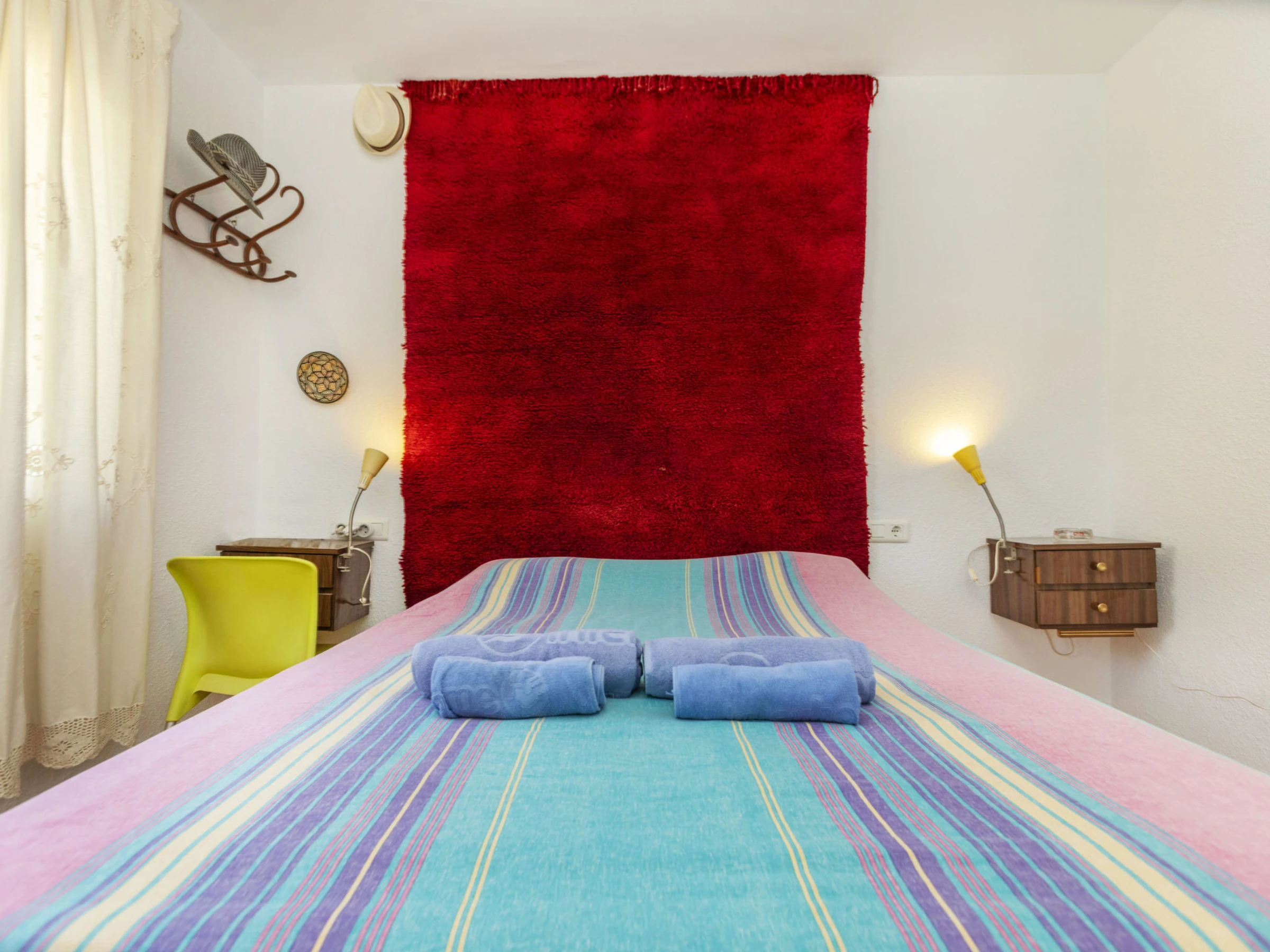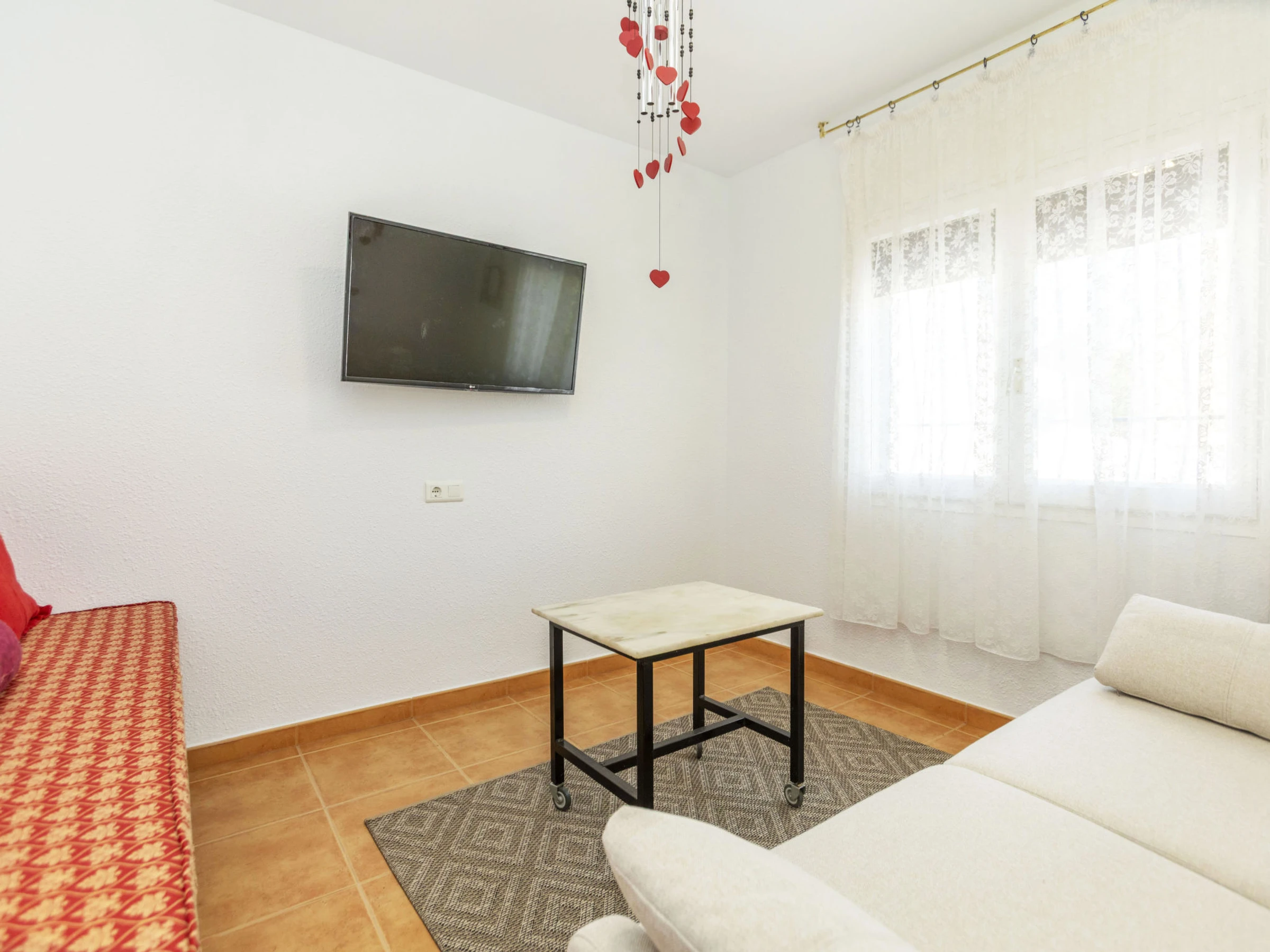 "Matilde", 4-Zimmer-Haus 90 m2. Komfortabel und gemütlich eingerichtet: Wohn-/Esszimmer mit Digital-TV und Klimaanlage. 1 Zimmer mit 1 Doppelbett (2 x 70 cm, Länge 190 cm), Klimaanlage und Ventilator. 1 Kinderzimmer mit 1 Wandklappbett (70 cm, Länge 190 cm), TV. 1 Zimmer mit 1 franz. Bett (1 x 150 cm, Länge 190 cm), Klimaanlage und Ventilator. Offene Küche (Backofen, Geschirrspüler, 3 Glaskeramikplatten, Toaster, Wasserkocher, Mikrowelle, elektrische Kaffeemaschine) mit Esstisch. Dusche/Bidet/WC. Garten. Terrassenmöbel, Liegestühle (4), Sitzplatz. Sicht auf das Schwimmbad und den Garten. Zur Verfügung: Waschmaschine, Bügeleisen, Fliegengitter, Kinderhochstuhl, Babybett, Haartrockner. Internet (WLAN, gratis). Parkplatz (eingezäunt, 2 Autos). Bitte beachten: Nichtraucher-Haus. Maximal 1 kleines Haustier/Hund erlaubt. TV nur ES, FR. Kein Fahrstuhl. Der ausgeschriebene Pool ist zur alleinigen Nutzung. [hidden]