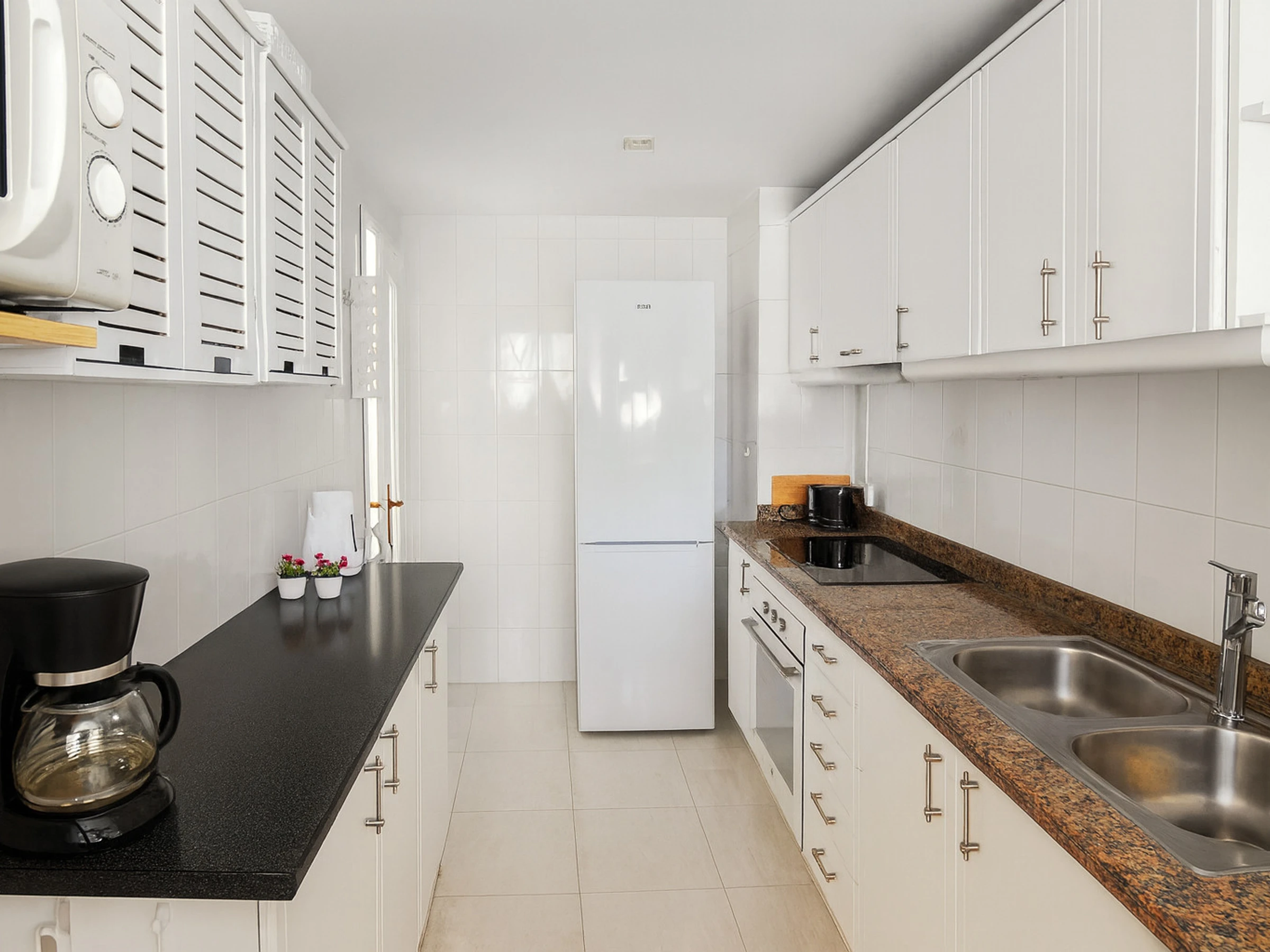 Gelegen im 4. Stock (mit Aufzug) des Wohnkomplexes Galicia, bietet diese moderne und lichtdurchflutete Wohnung Klimaanlage, kostenloses WLAN, einen Gemeinschaftspool und eine unschlagbare Lage, nur 180 Meter vom Meer entfernt.