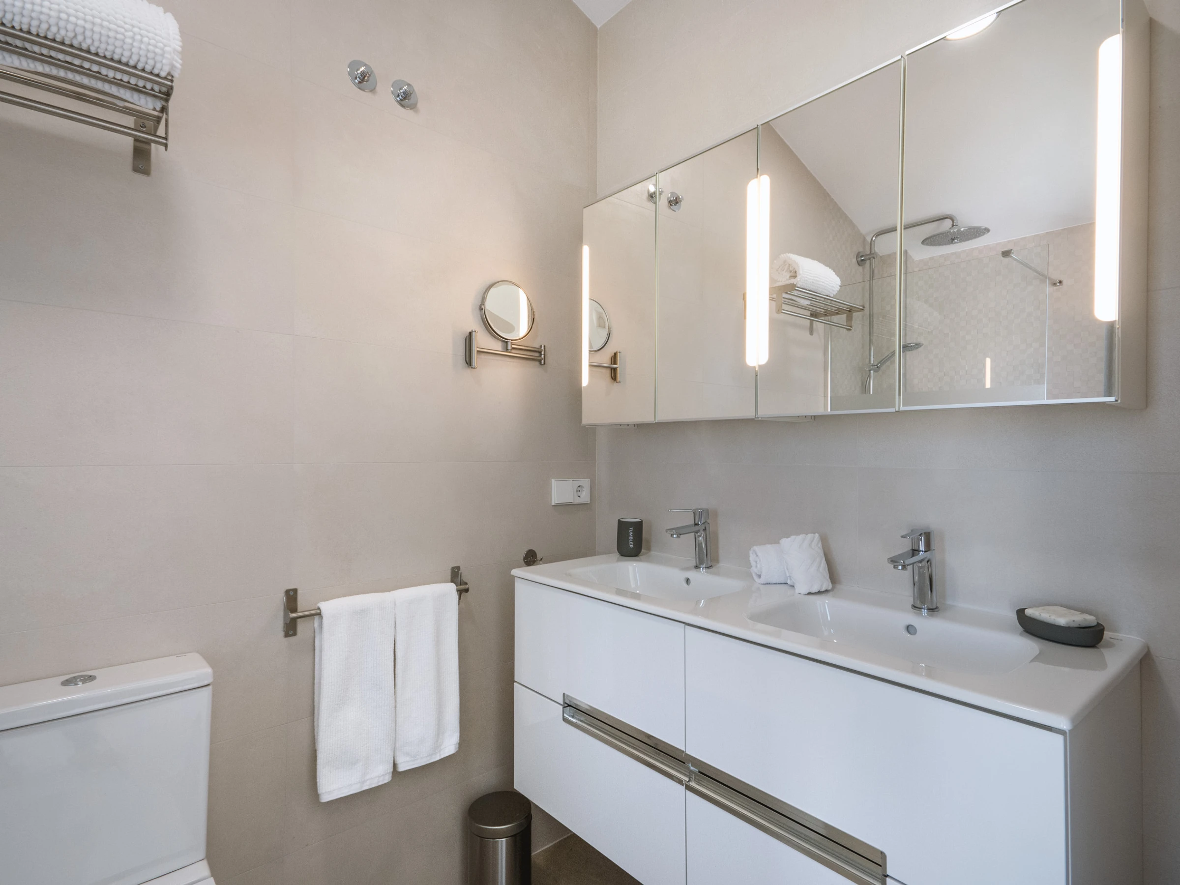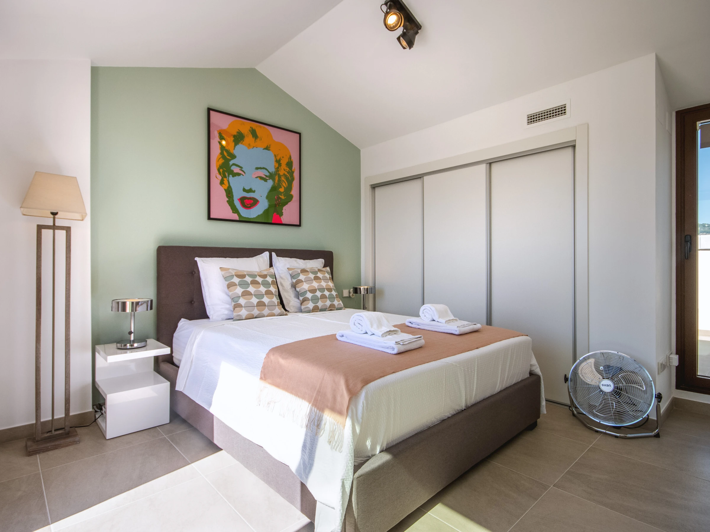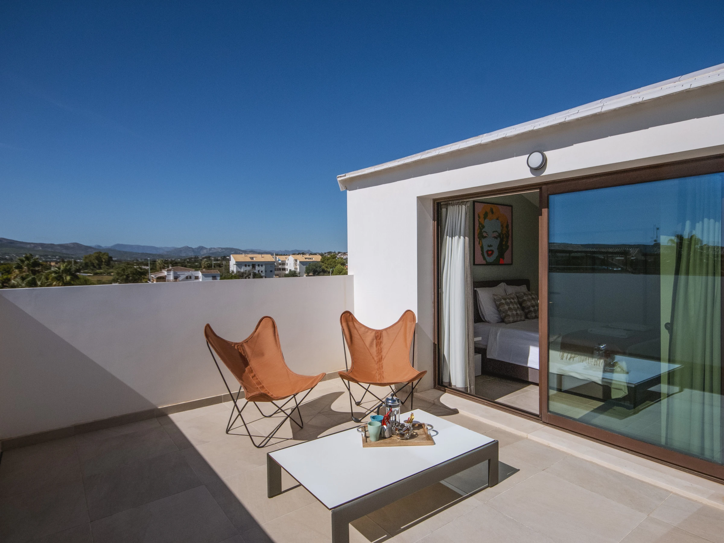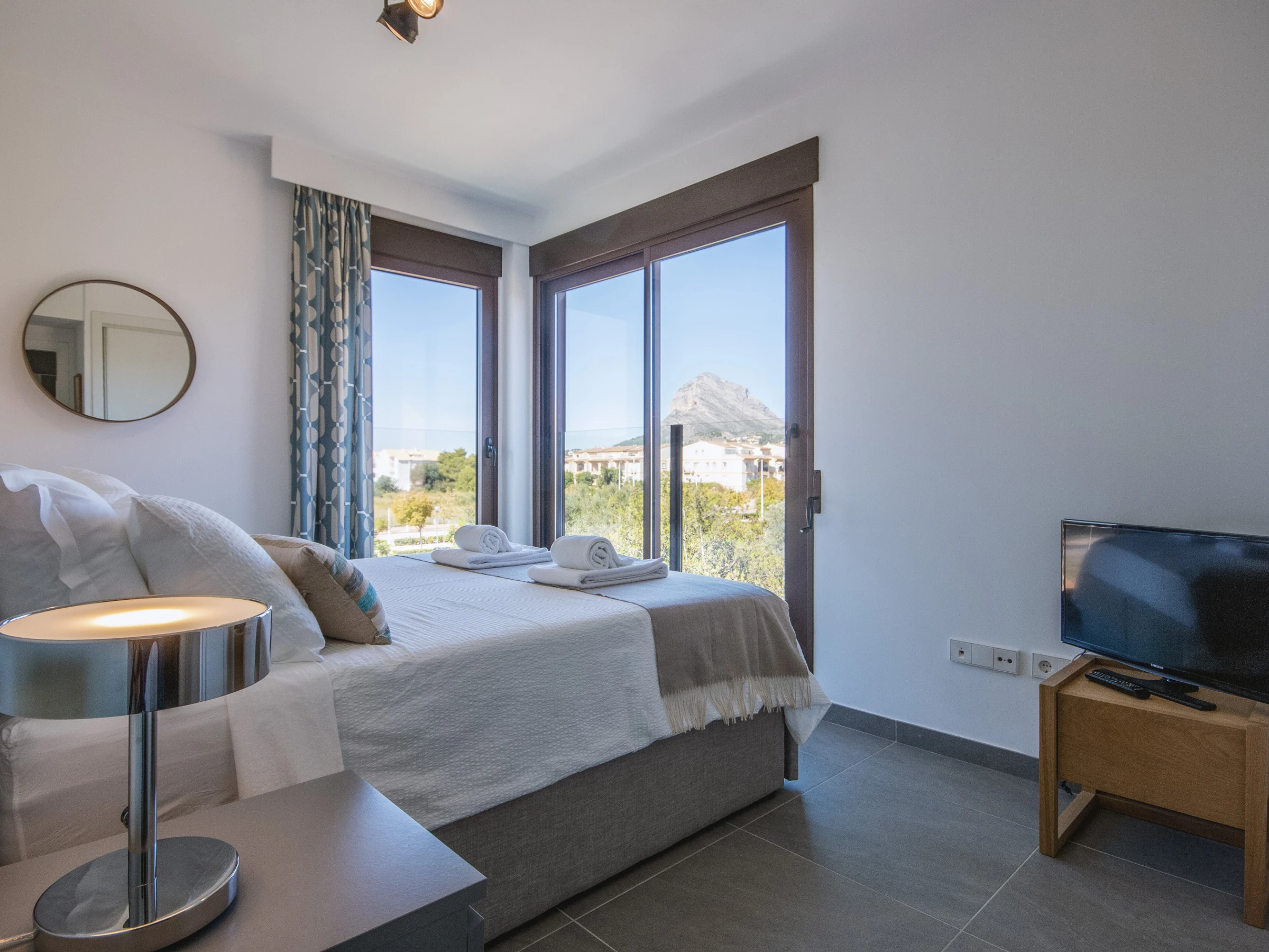 Lichtdurchflutete Schlafzimmer mit fabelhaften Ausblicken auf den Montgo und die umliegende Landschaft bieten entspannende, private Räume. Und alle drei Badezimmer (zwei davon en-suite) bieten Gästen große Duschen zum Hineinspazieren, wandhängende Waschtische und stilvolle Spiegel mit integrierter Beleuchtung. Das Schlafzimmer im Obergeschoss verfügt über nicht weniger als zwei Außenterrassen, perfekt für eine Leseeinheit bei Tag oder Sternegucken unter dem Nachthimmel!