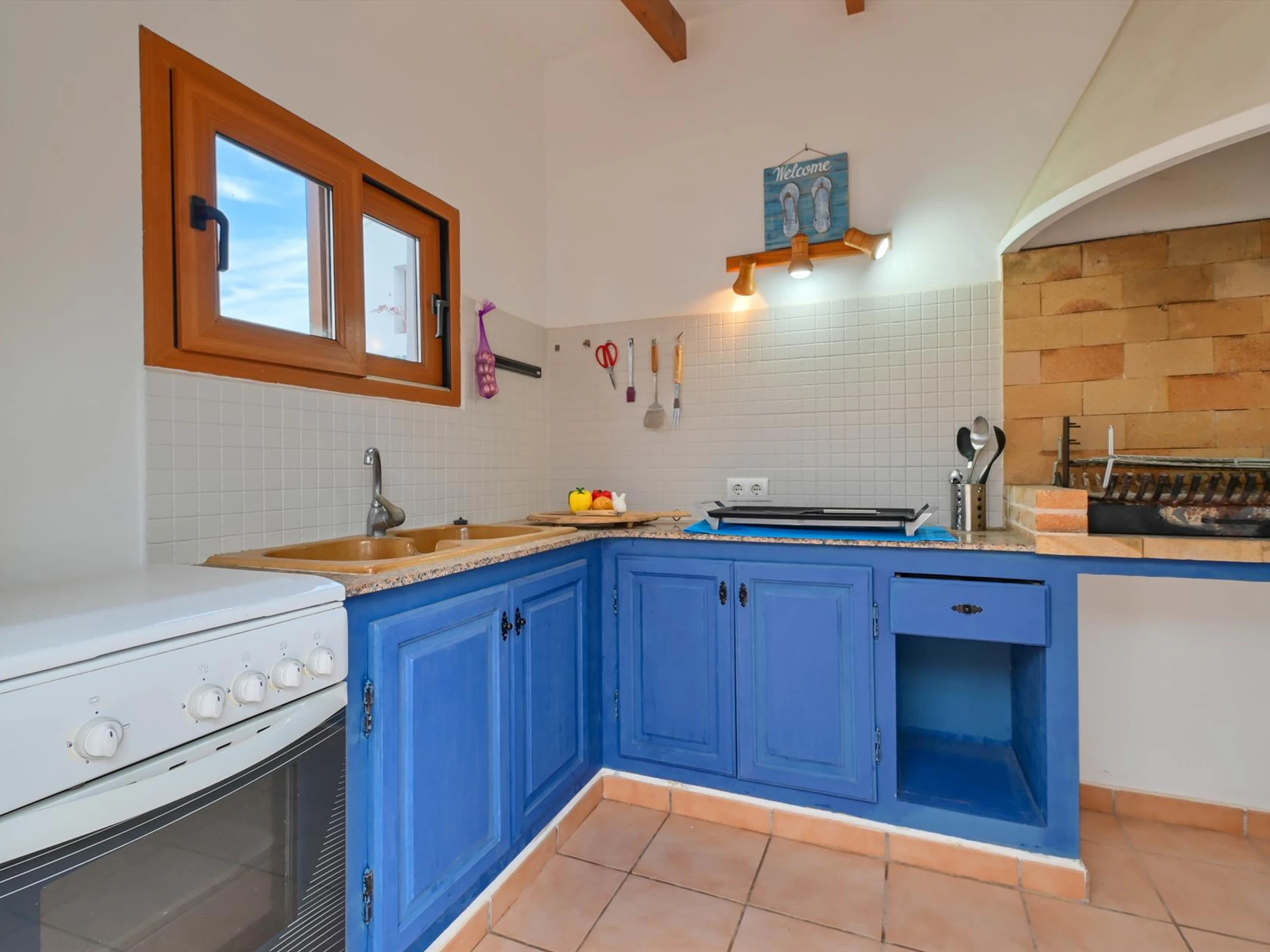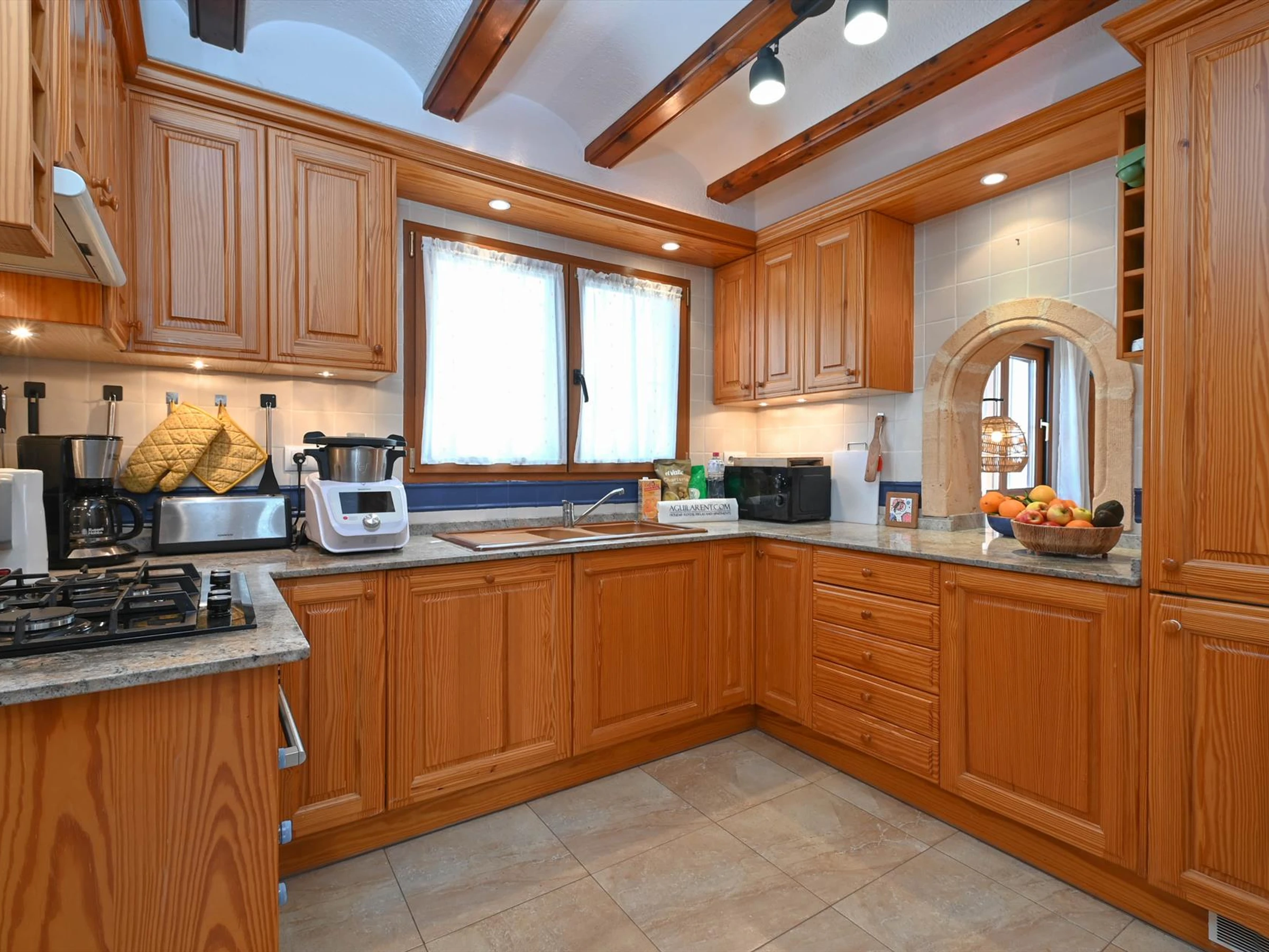 Dieses küche, ist ausgestattet in backofen, gefrierschrank, spülmaschine, kaffeemaschine und toaster.