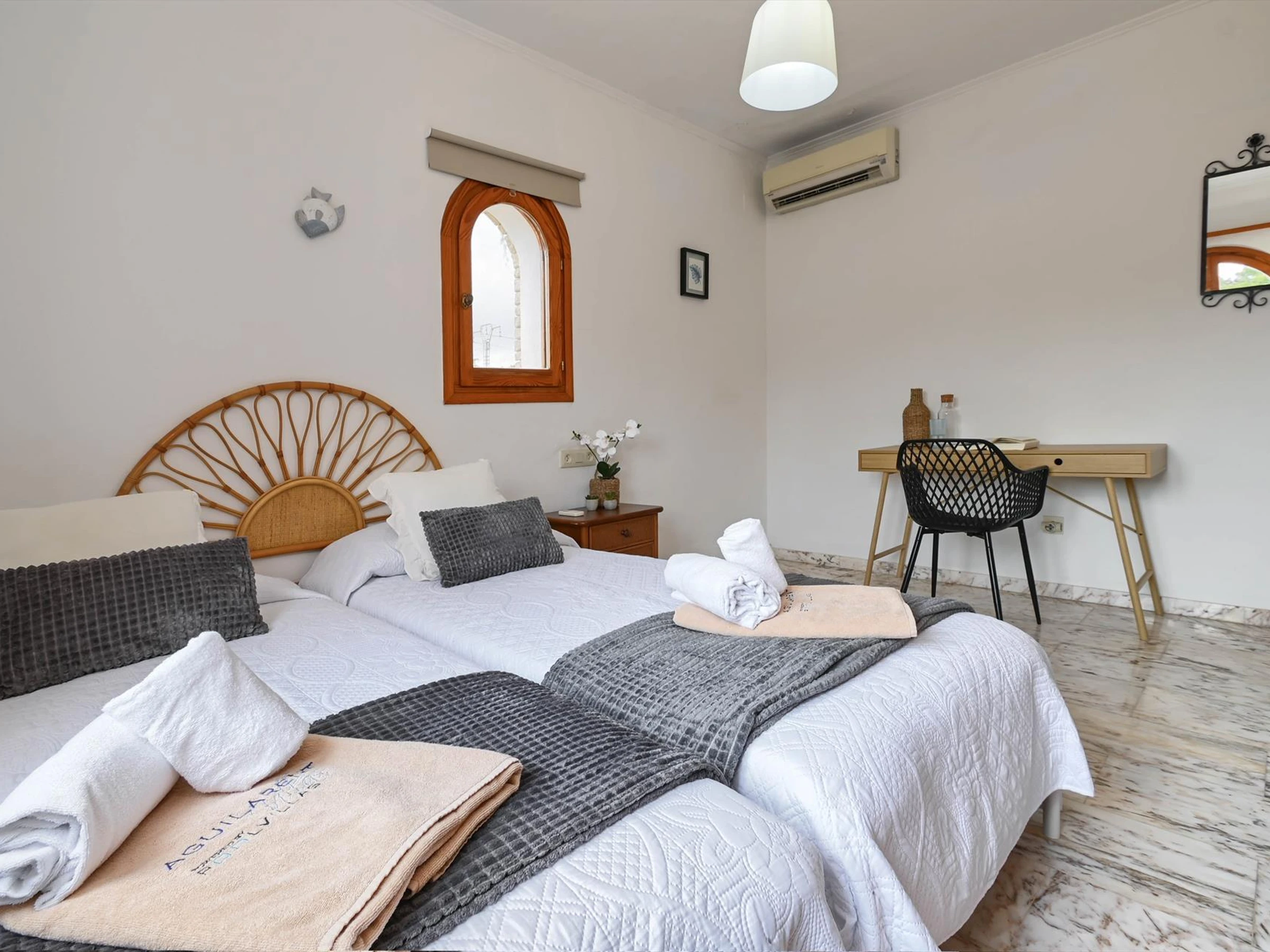 * Schlafzimmer mit Klimaanlage, 2 Einzelbetten (Maße 190 x 90 cm) und