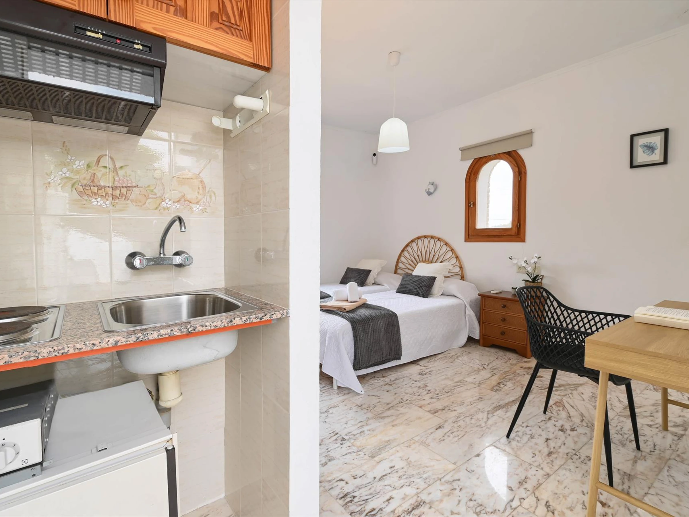 * Küche mit Kühlschrank Schlafzimmer und Badezimmer