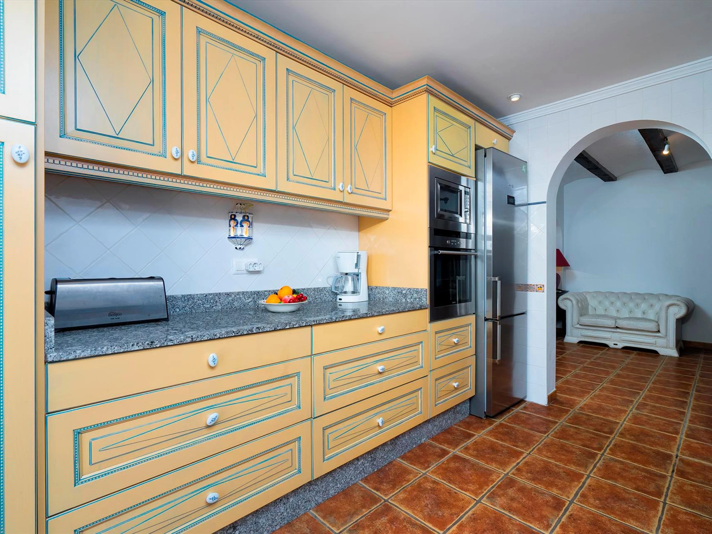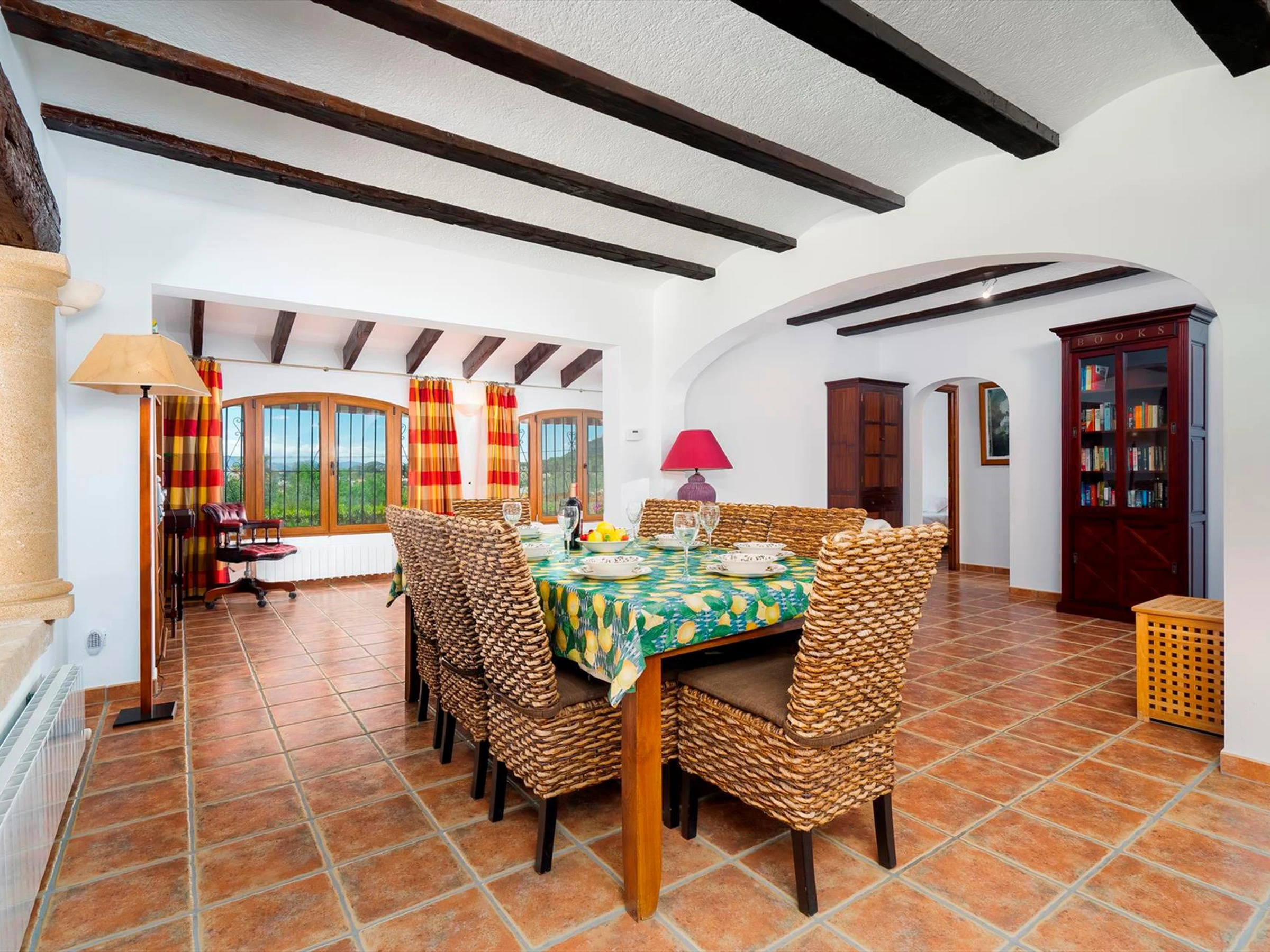 * Essbereich und extra Sofas mit Ausblick auf den Berg Montgo