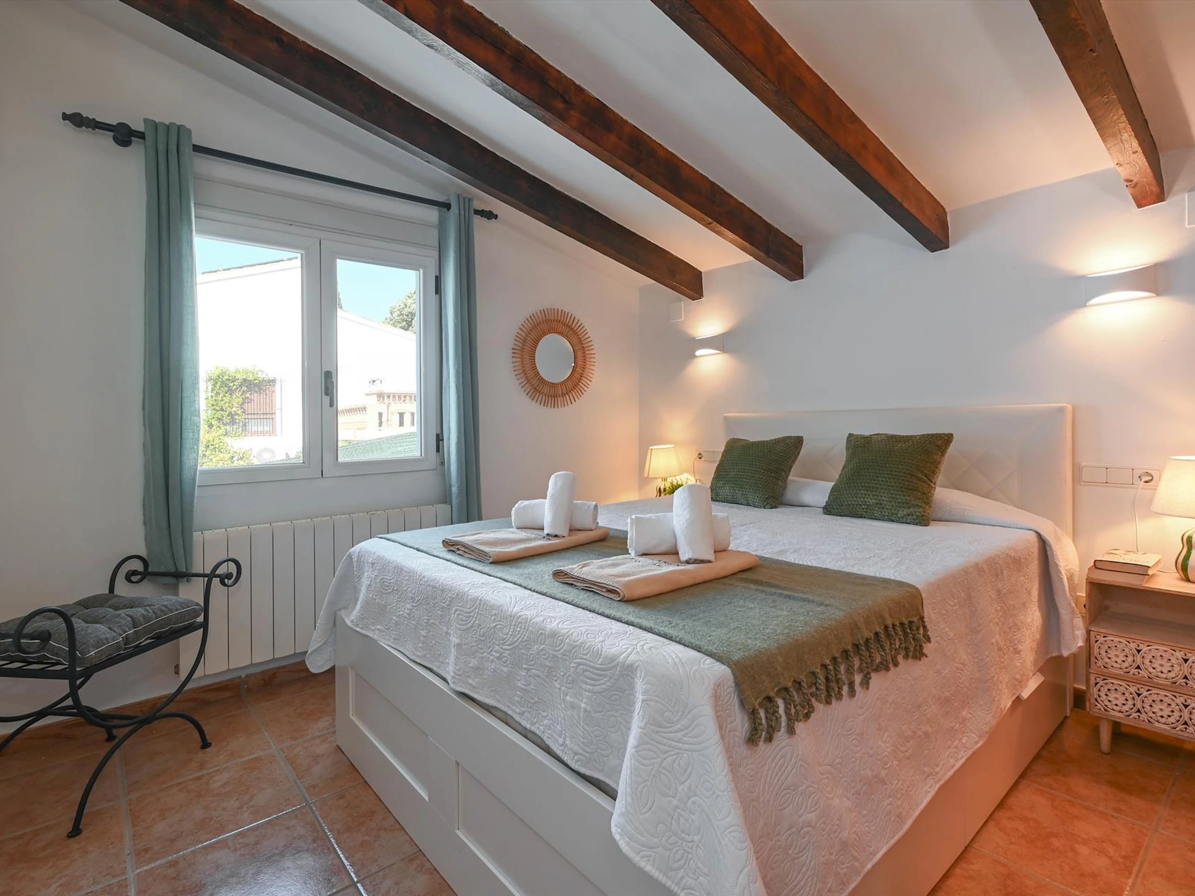 * Schlafzimmer mit Doppelbett und en-suite Badezimmer