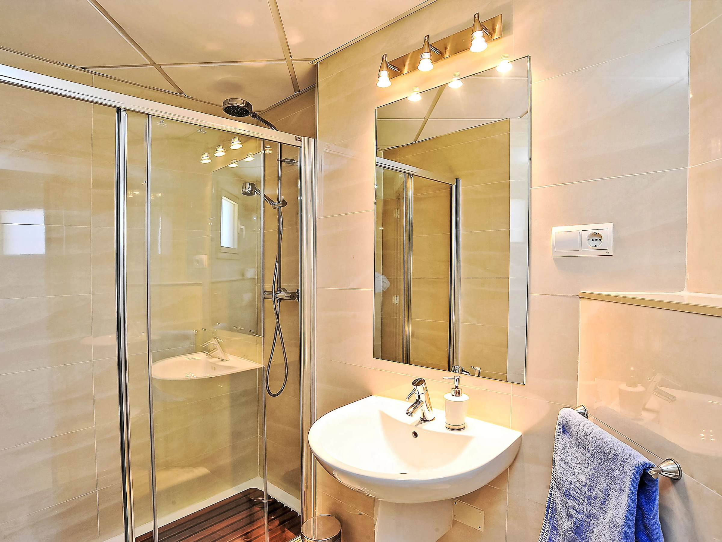 "Marmara", 3-Zimmer-Wohnung 82 m2 im 1. Stock. Komfortabel und schön eingerichtet: Wohn-/Esszimmer mit Sat-TV und Digital-TV (Flachbildschirm), Stereoanlage und elektrischem Rollladen. Ausgang zum Balkon. 1 Zimmer mit 1 franz. Bett (2 x 90 cm, Länge 200 cm), Bad/Bidet/WC und Doppelwaschbecken. Ausgang zum Balkon. 1 Zimmer mit 2 Betten. Küche (Backofen, Geschirrspüler, 4 Glaskeramikplatten, Toaster, Wasserkocher, Mikrowelle, Tiefkühler, elektrische Kaffeemaschine). Dusche/Bidet/WC. Klimaanlage, Warmluftheizung. Balkon 13 m2. Terrassenmöbel, Liegestühle (2). Sicht auf das Schwimmbad. Zur Verfügung: Waschmaschine. Internet (WLAN, gratis). Garage Nr. 66. Bitte beachten: Nichtraucher-Unterkunft. Rauchmelder. [hidden] ESFCTU[hidden][hidden][hidden][hidden]4