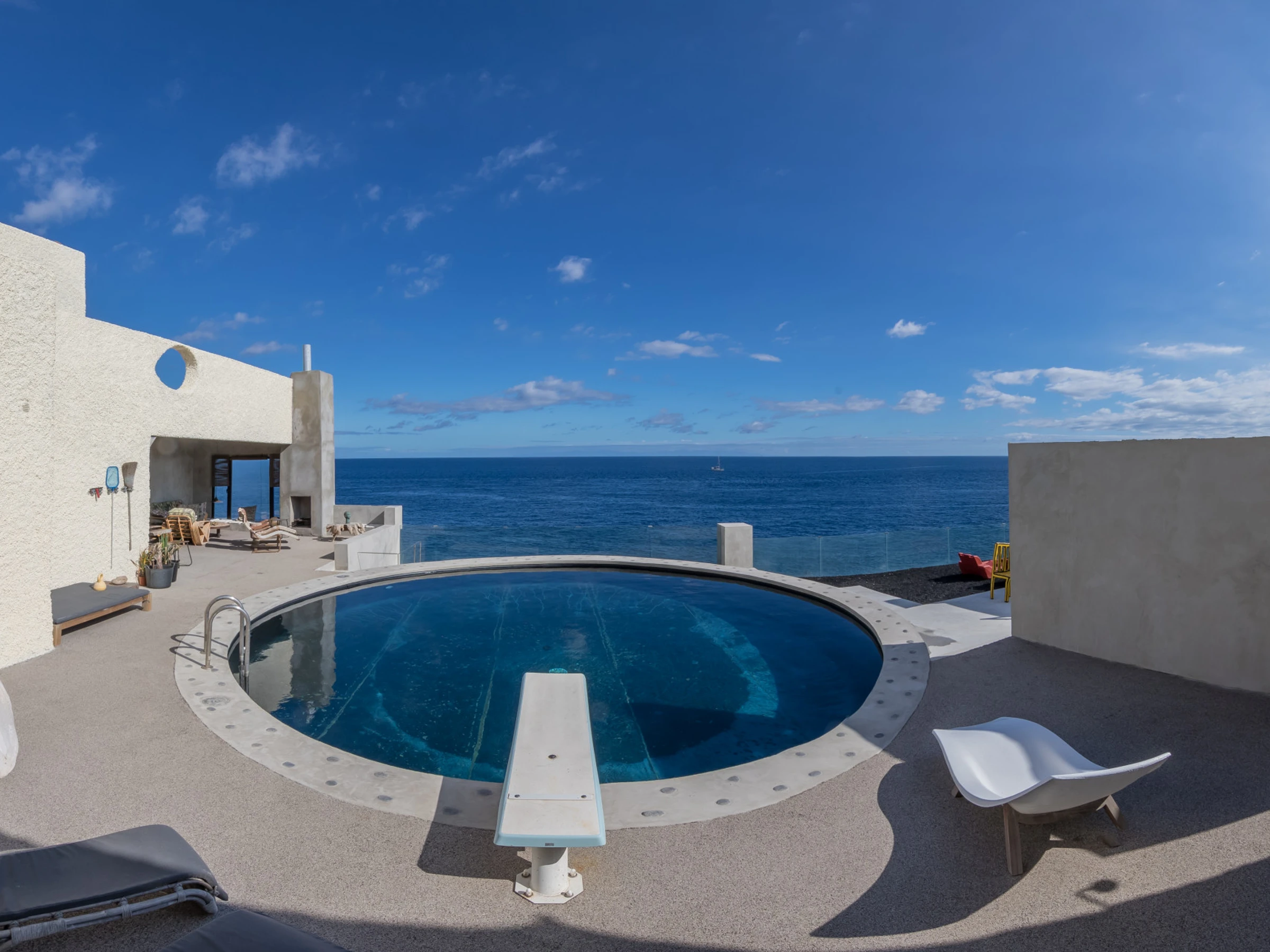 The property is distinguished by its impressive views of the Atlantic, visible from multiple spaces, including an infinity pool that seems to merge with the horizon. In addition, just below the villa, guests can enjoy a natural pool fed by seawater, providing a unique connection with the marine environment.