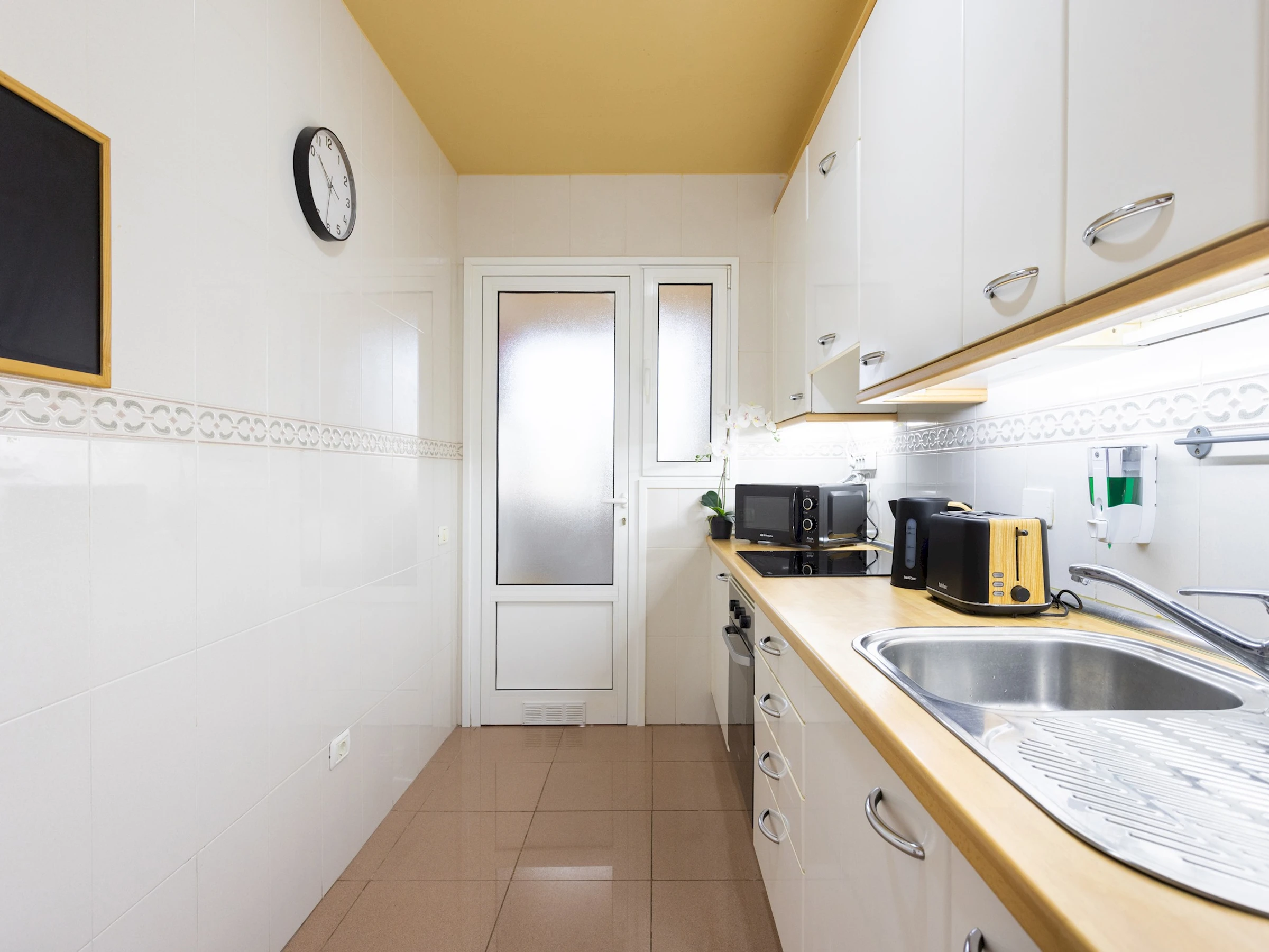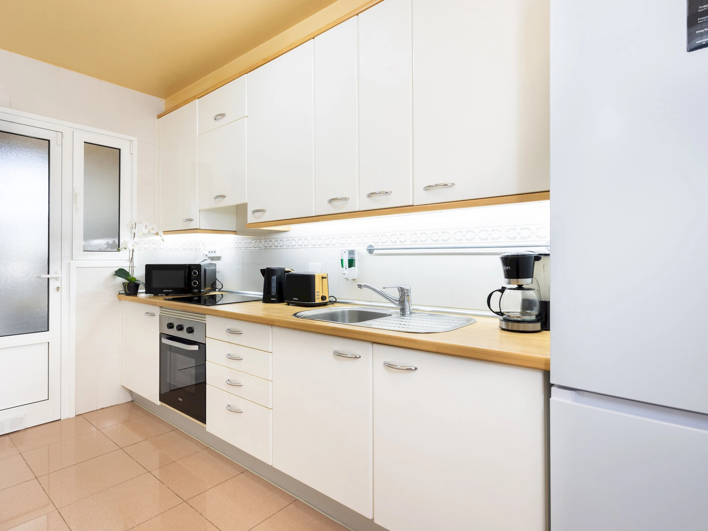 The apartment features a fully equipped kitchen with oven, microwave, and small appliances, designed for comfortable and worry-free stays. It also offers a washing machine, as well as an iron and ironing board, ideal for longer stays. The property provides 1 Gb fiber-optic WiFi and a 55-inch Smart TV. Both the living-dining area and the bedroom are fitted with ceiling fans for added comfort on warmer days. The quiet and well-maintained residential complex includes a communal swimming pool, perfect for cooling off while preserving the privacy and calm of the surroundings. For guests traveling with babies, a cot and high chair are available.