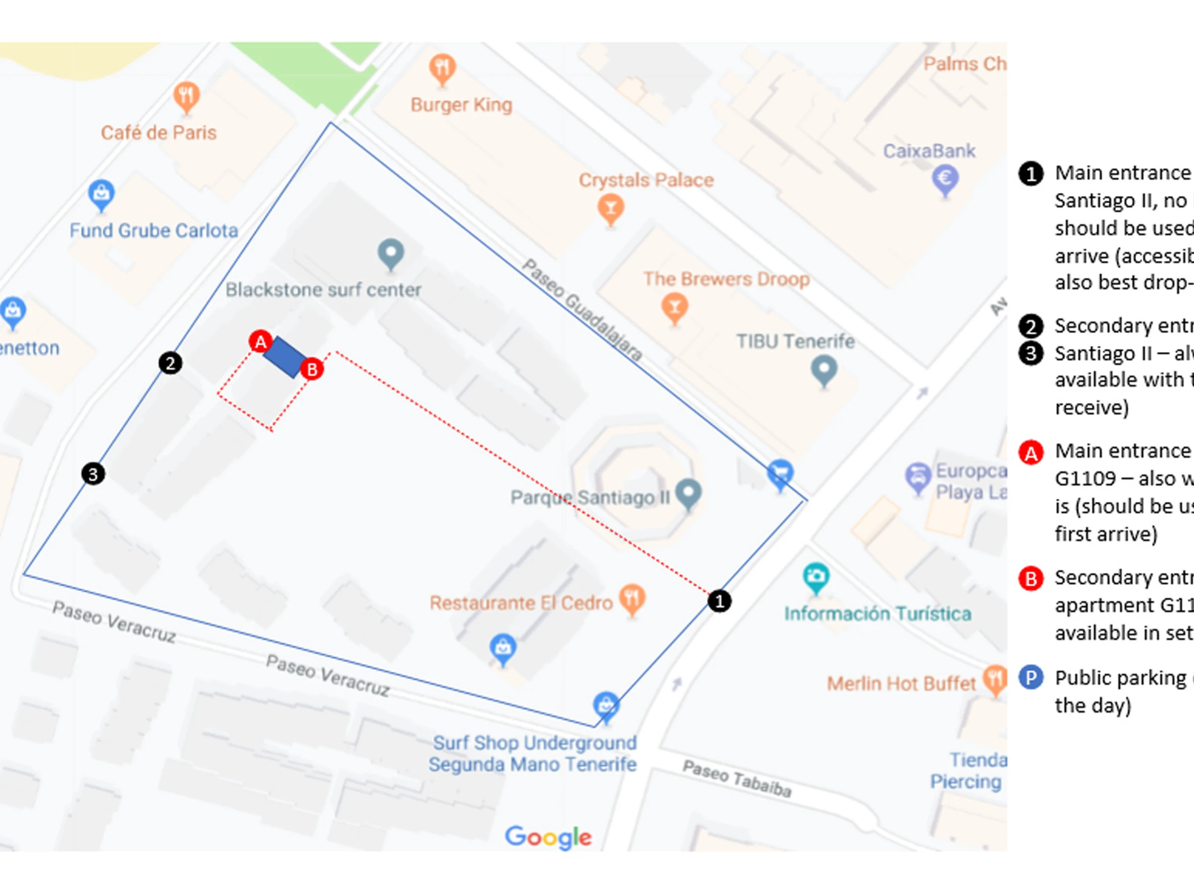 - The accommodation is located in a tourist complex in Playa Las Américas, it is a quiet and safe area