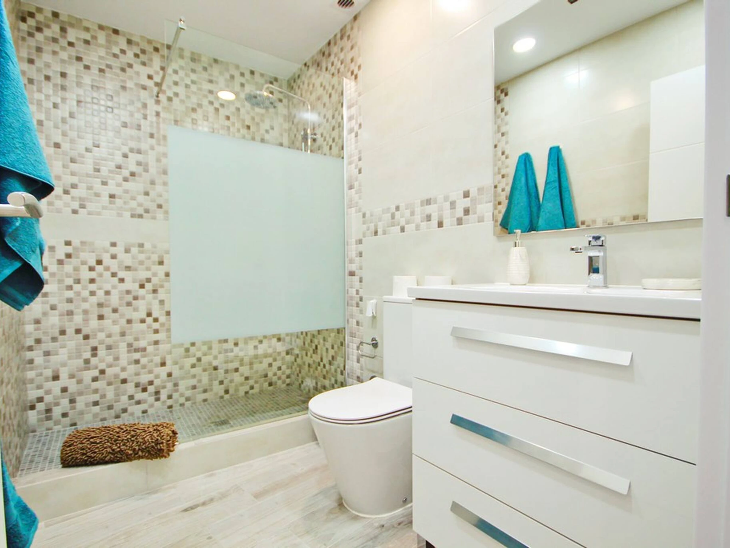 The apartment has a main bedroom with a double bed and an additional sofa bed, comfortably accommodating up to 4 people. It has a modern bathroom with a shower, ideal for refreshing after a day of adventures in Tenerife.