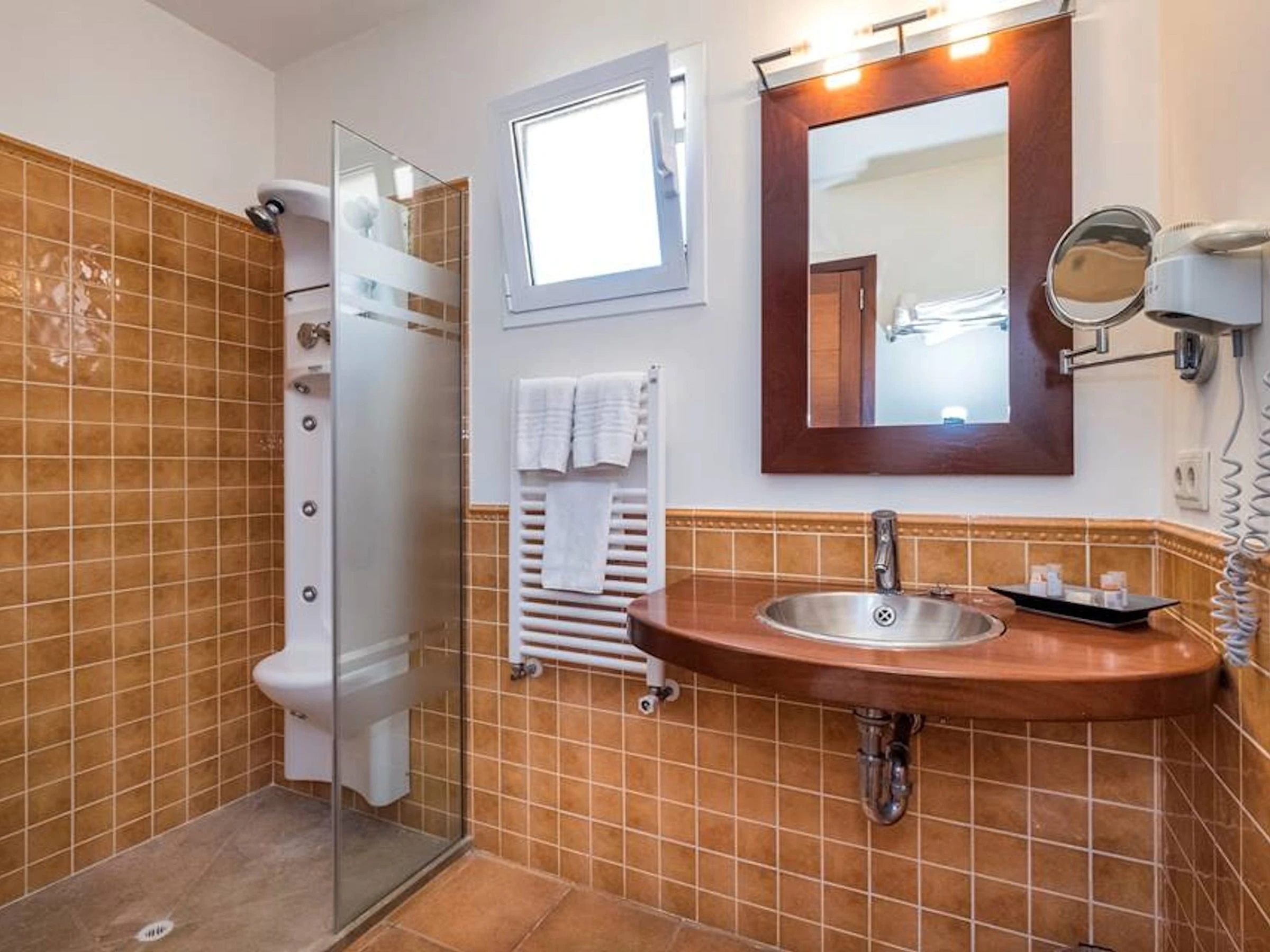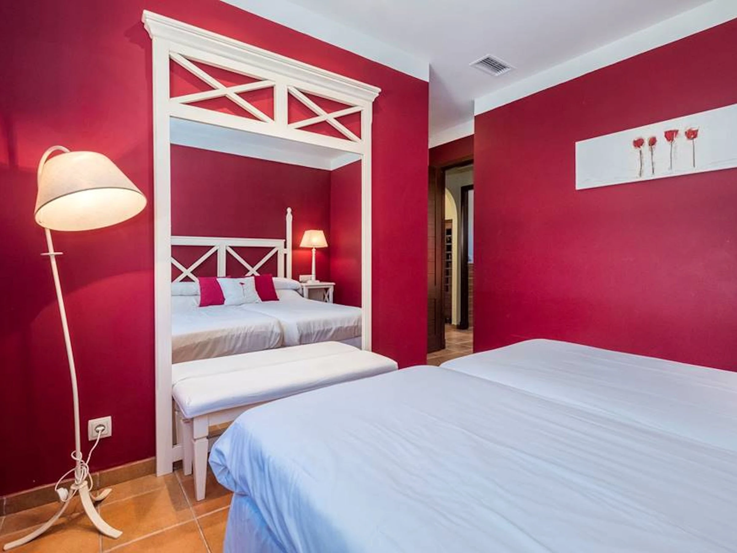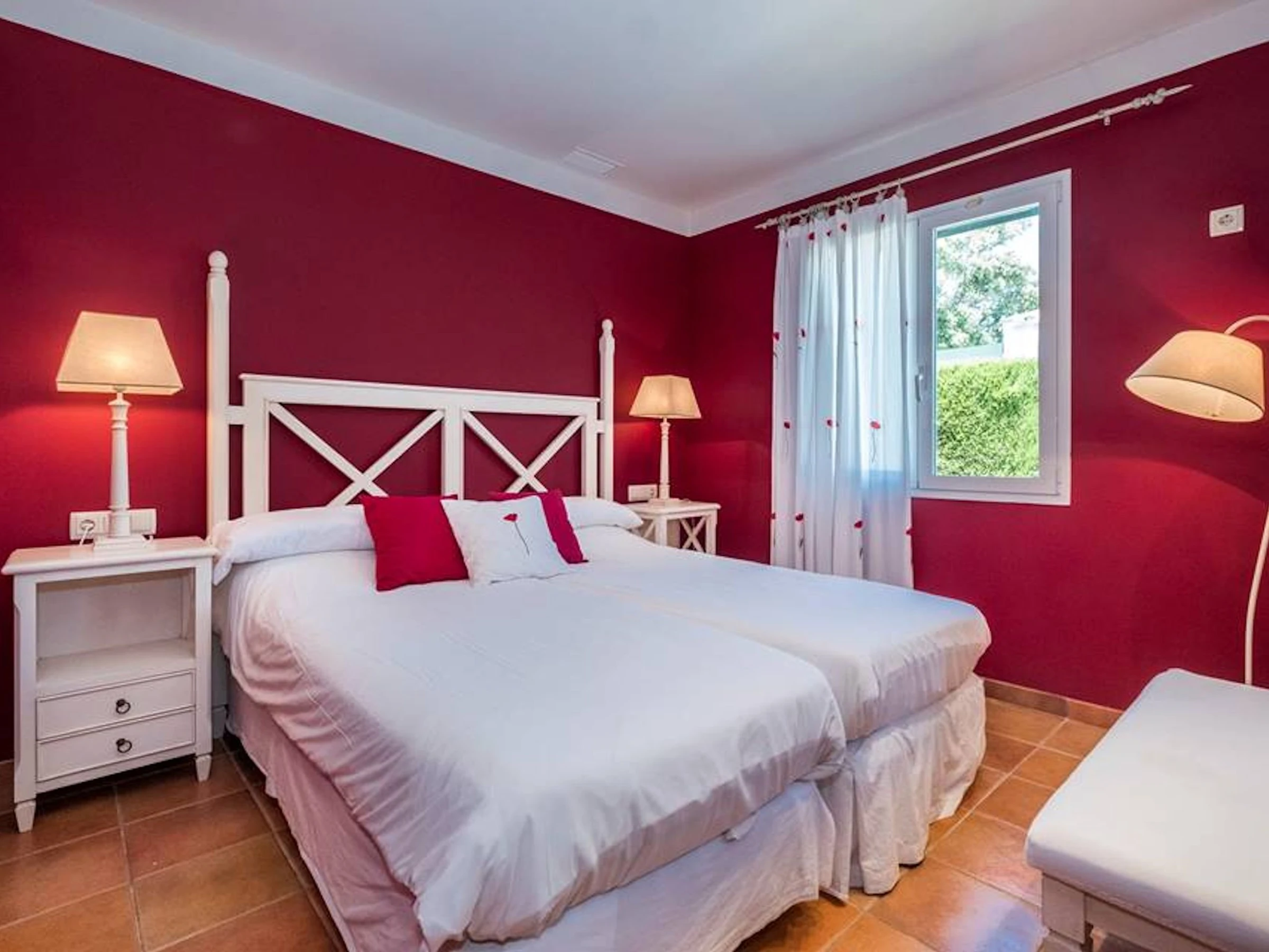 All are beautifully furnished to a high standard and with capacity for six guests. Each villa has a spacious lounge with cherry-wood furniture, comfortable sofa, armchairs and full TV equipment; satellite and DVD. The kitchen is fully equipped to a high standard. The dining room is delightfully simple with glass table and six modern chairs, a pleasure for dining. The master suite, decorated in blue and white, combines modern and classic design. A King-sized bed, dressing room and fully fitted ensuite with jacuzzi complete this majestic bedroom. The second bedroom decorated in deep red and white inspires energy and personality and has its own dressing room and bathroom complete with hydro-massage shower. The third bedroom, has sunny tones of orange and green, making it a sure favourite with the younger visitors. All bedrooms have television. The villa also has another bathroom, complete with hydro-massage shower.