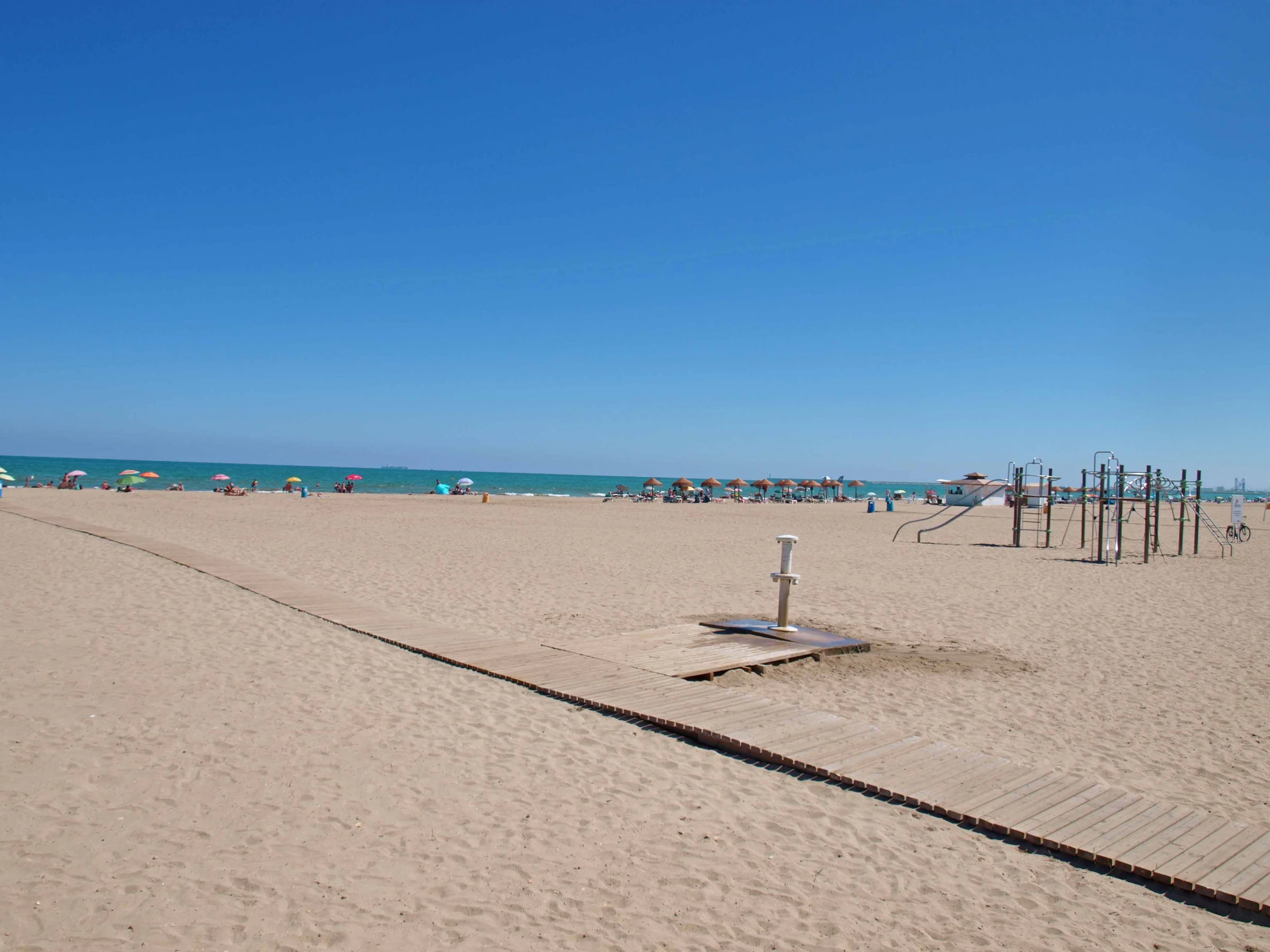 Cozy apartment ideal for families, is located on the seafront with beautiful views of the Valencian orchard. You will enjoy pleasant walks along its large promenade, beach bars on the beach, restaurants, cafes, supermarkets ... You will combine city and beach to perfection!