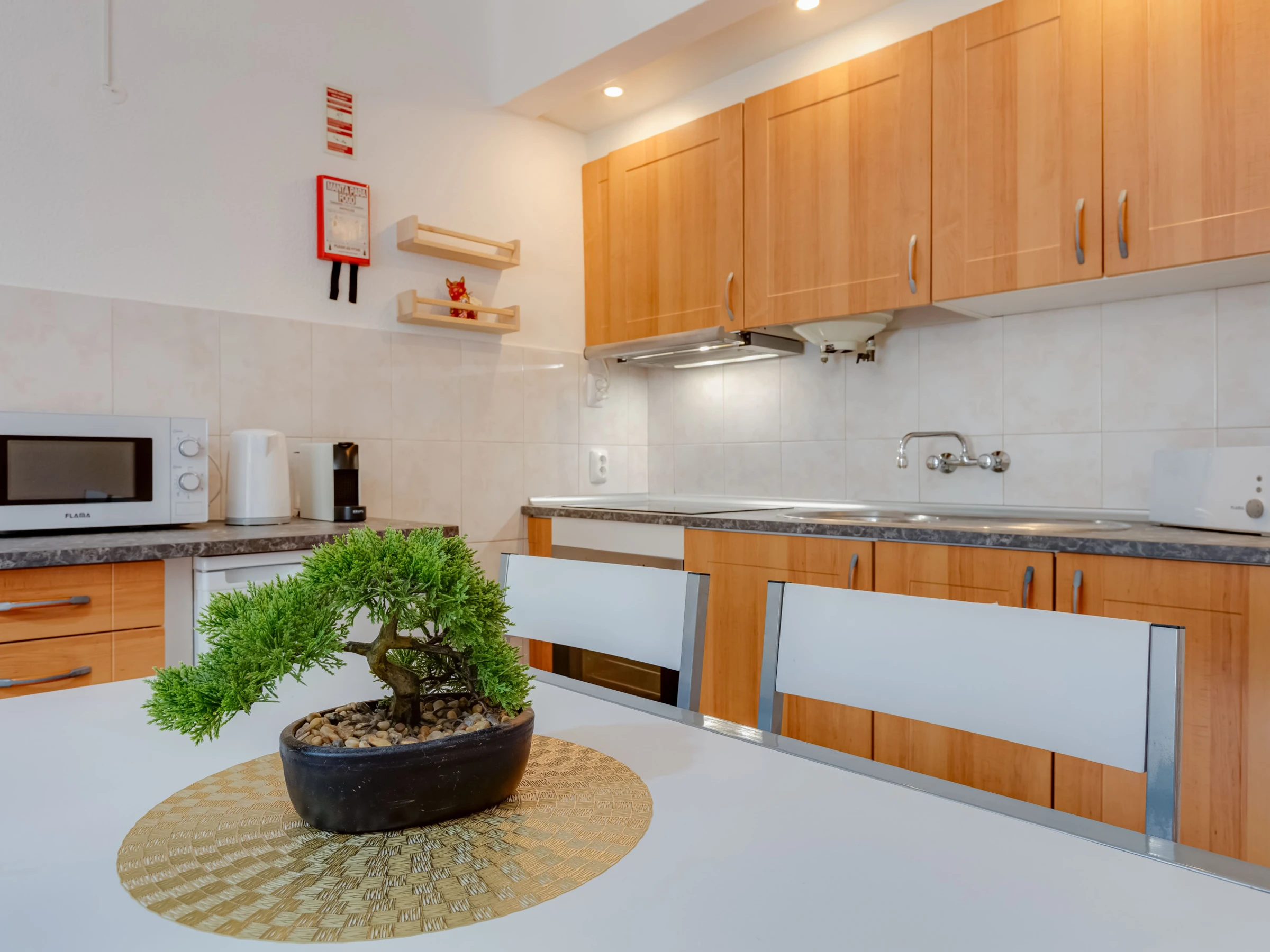 • Fully Equipped Kitchenette: Vitroceramic hob, fridge, microwave and Nespresso coffee machine.