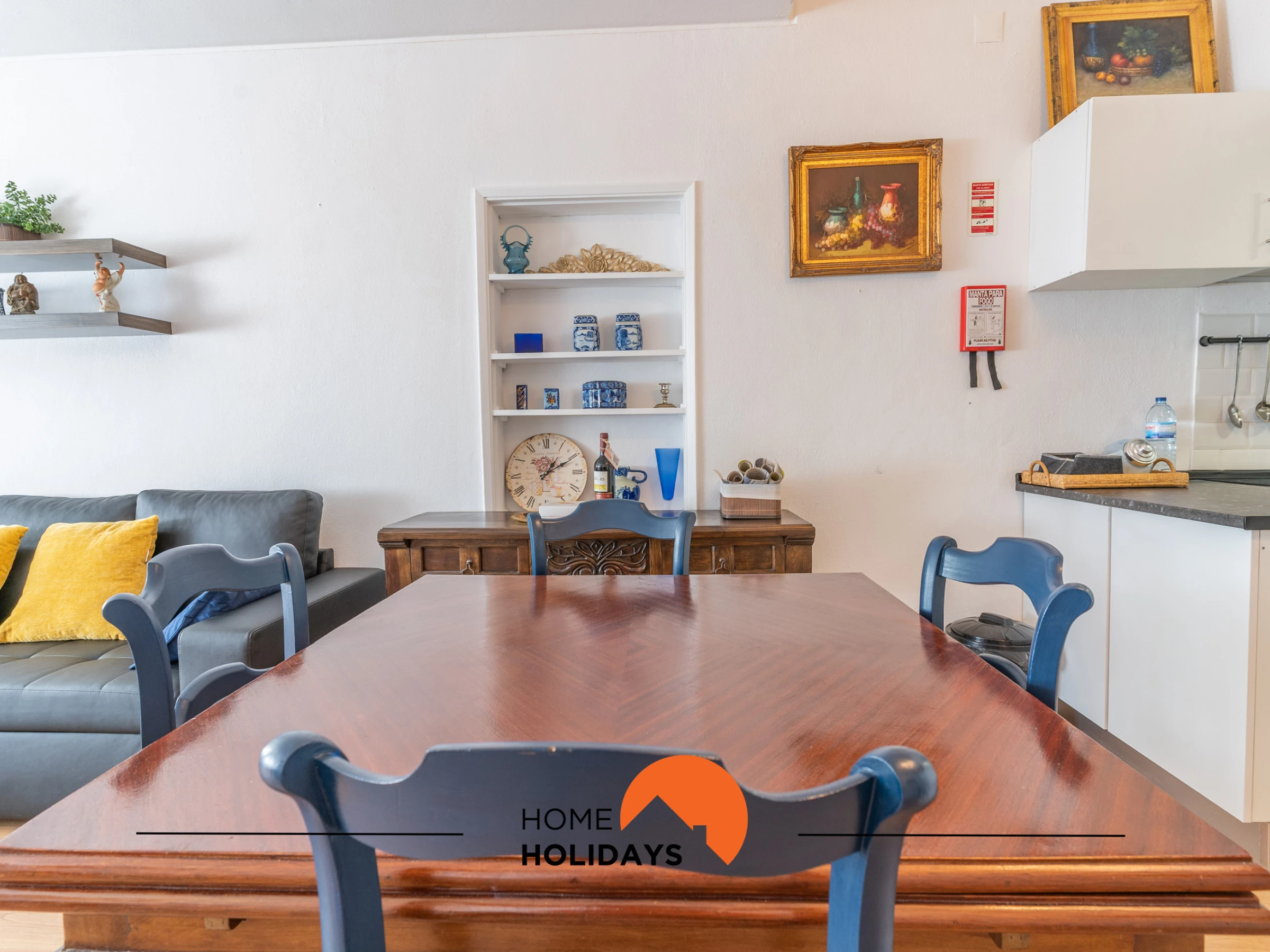 Flat in the quiet heart of Albufeira, on "Praceta dos Caliços", just 10 minutes walk from the beaches of Pescadores and Peneco. Its location is ideal, just a few metres from the city centre and the charming downtown of Albufeira. Fully equipped kitchen and a cosy living area are at disposal. The flat has 1 bedroom with a double bed and a sofa bed in the living room for 2 people, perfect for families and friends. Fully equipped for a comfortable stay, with free Wi-Fi. Its central location makes it easy to reach the main points of interest in Albufeira. All the necessary amenities for a pleasant stay are at your disposal.