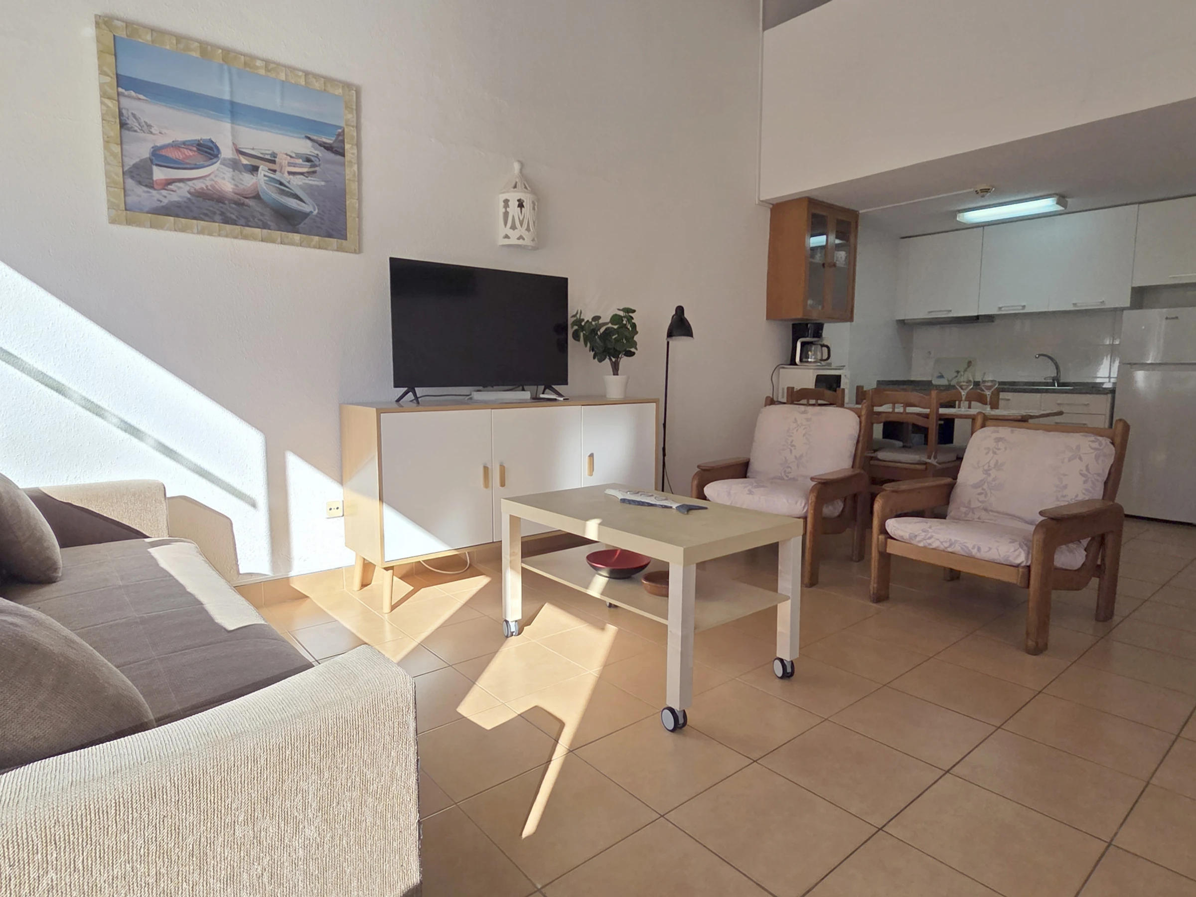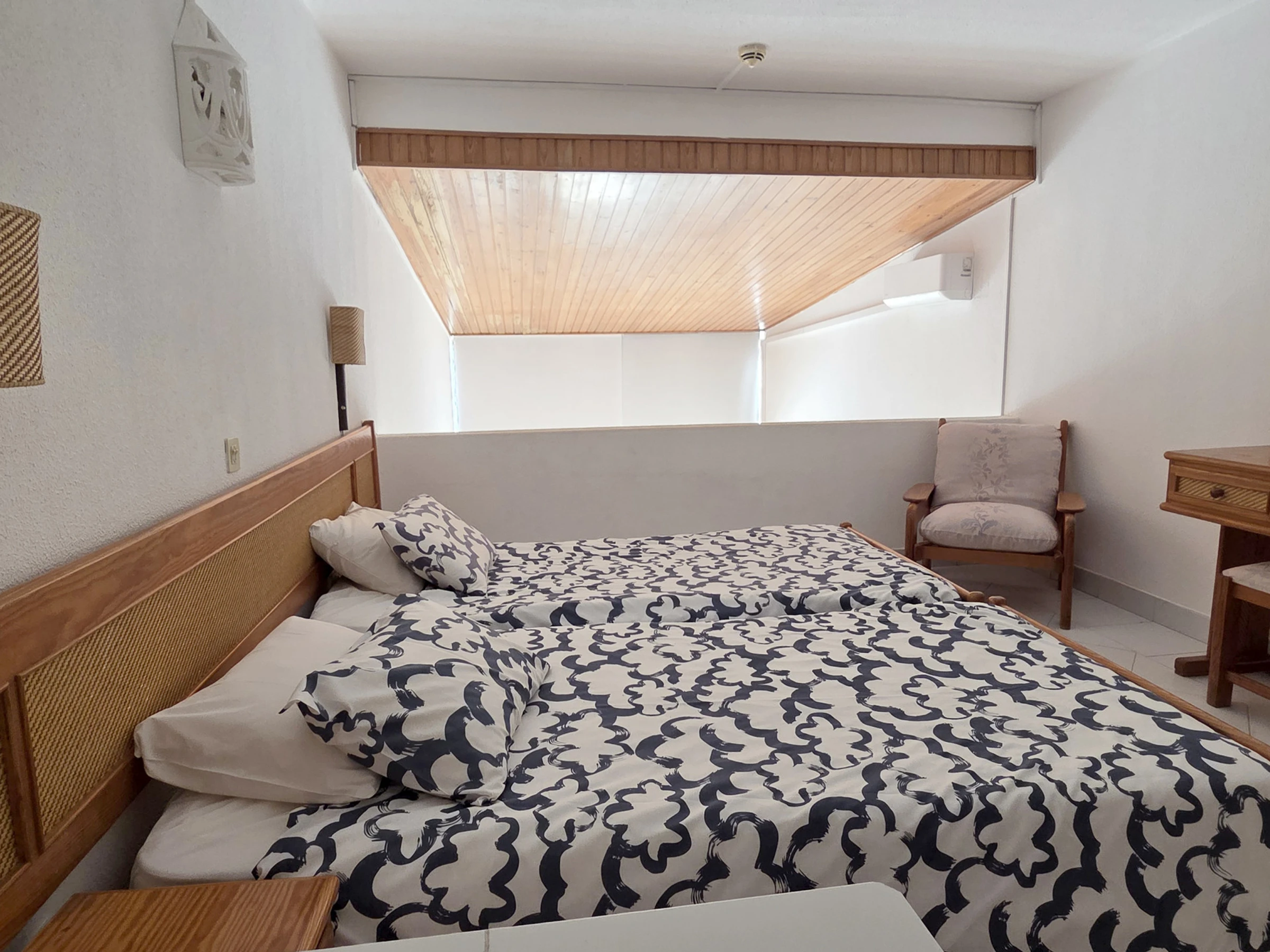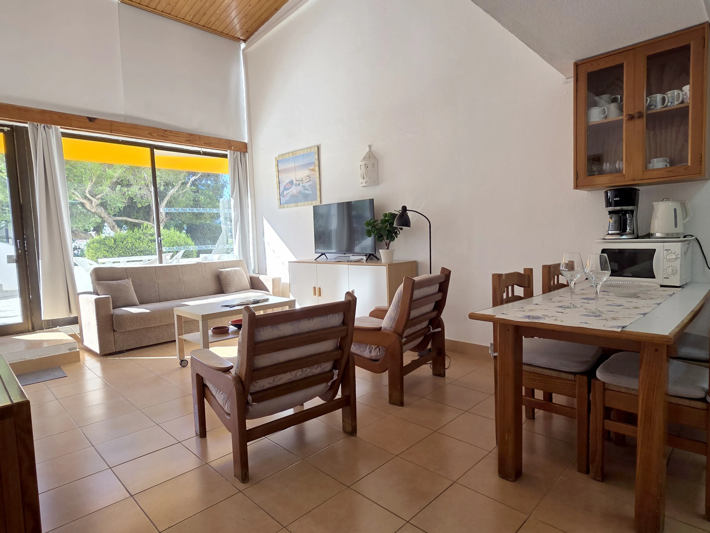 The apartment is a T1 Duplex that accommodates up to 4 people, ideal for families or small groups. It has a bedroom with two single beds and a sofa bed in the living room, ensuring comfort and flexibility during the stay.