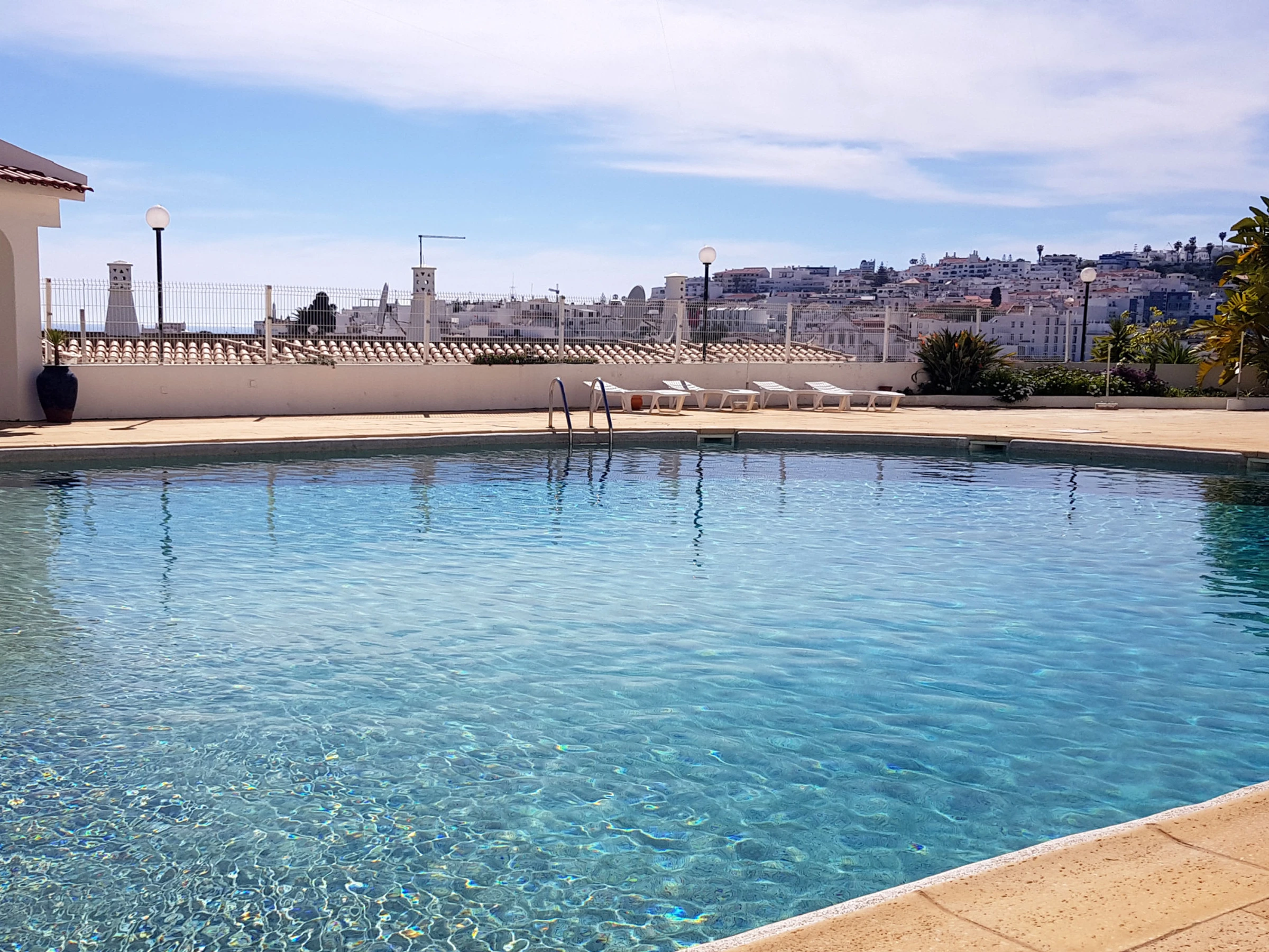 Located in a private complex with a magnificent swimming pool, the apartment is situated on a hill with a privileged view over the city. Facing south and with a spacious balcony, it offers one of the most beautiful and impressive views of the old town of Albufeira and the popular Fishermen's Beach, with the stunning Atlantic Ocean as a backdrop.