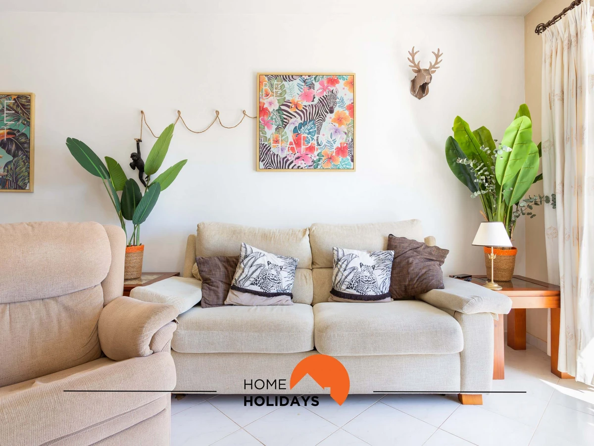 The interior of this apartment, located on the second floor, is bright and spacious, with decor designed for comfort. The bedroom features a double bed, while the living room offers a comfortable bunk bed and a sofa bed, accommodating up to 5 guests. The space also includes a television, a dining area and air conditioning in all the property. The compact kitchen is well equipped with a stove, oven, fridge, microwave, kettle, and toaster — perfect for preparing meals with ease.